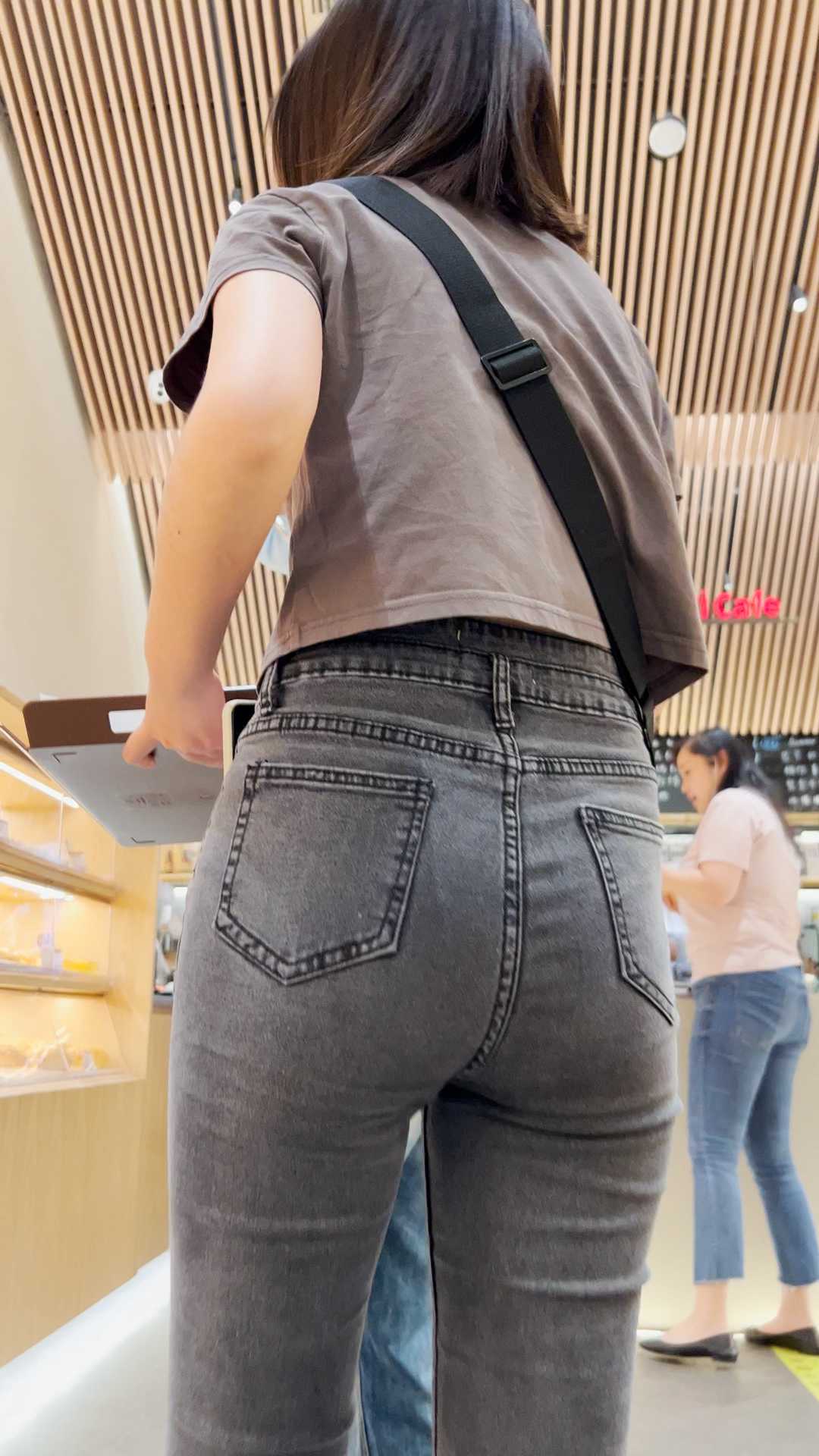 B1343超紧灰牛仔翘臀小姐姐