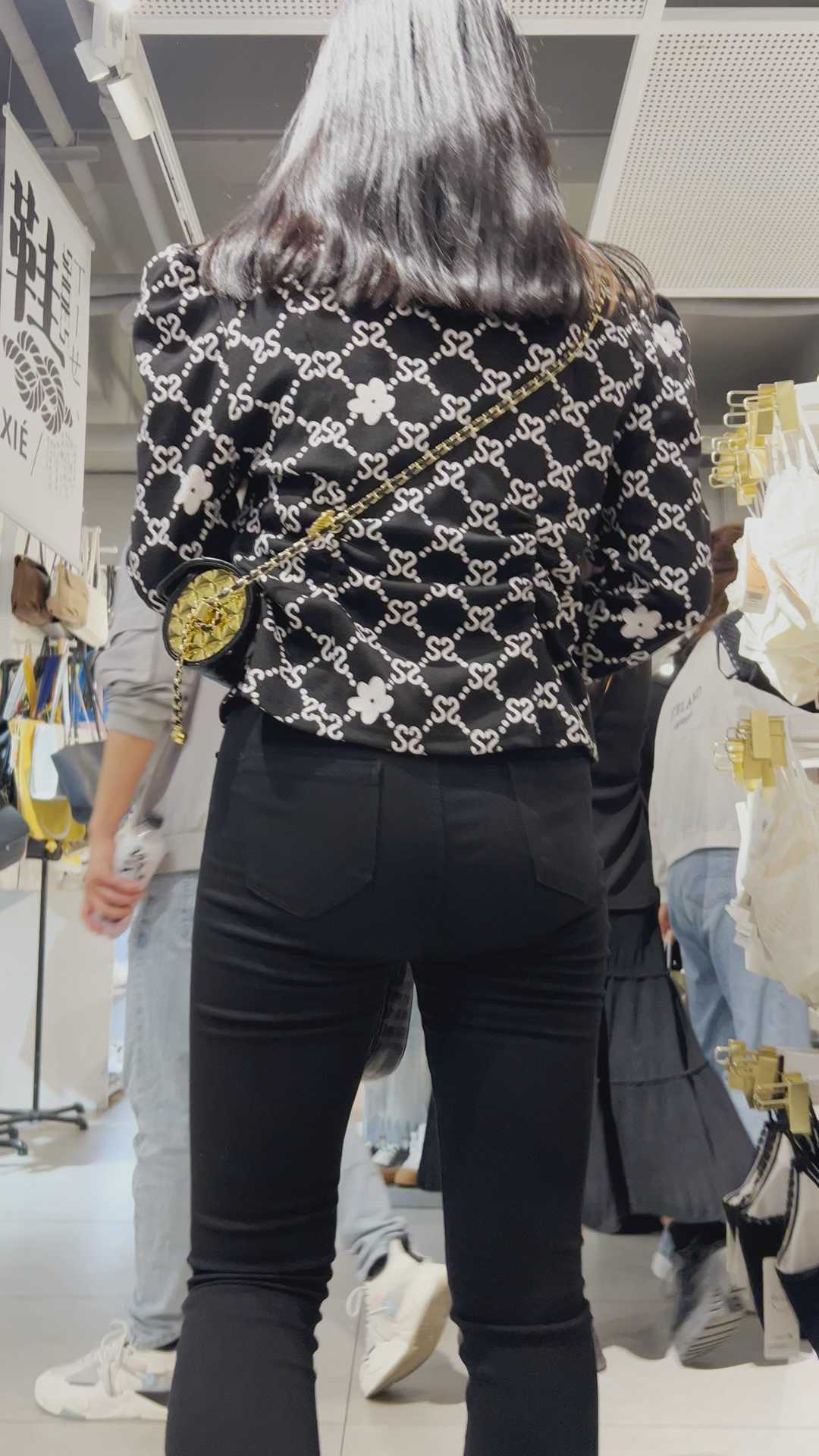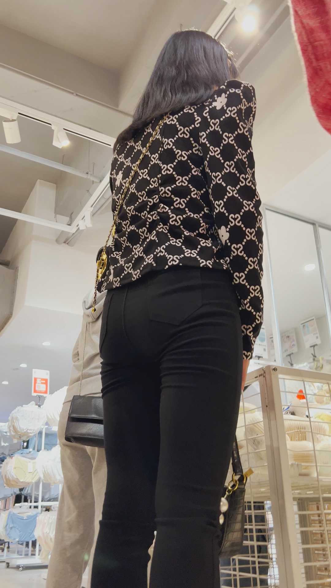 B1363超紧黑裤美女小姐姐身材严重变形