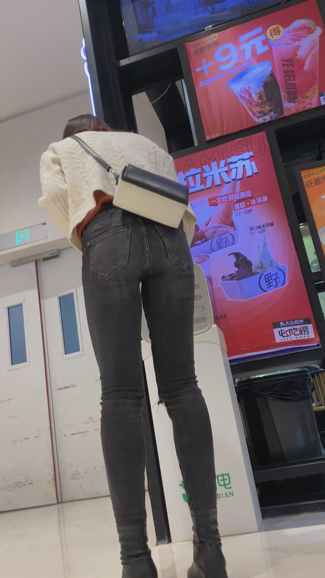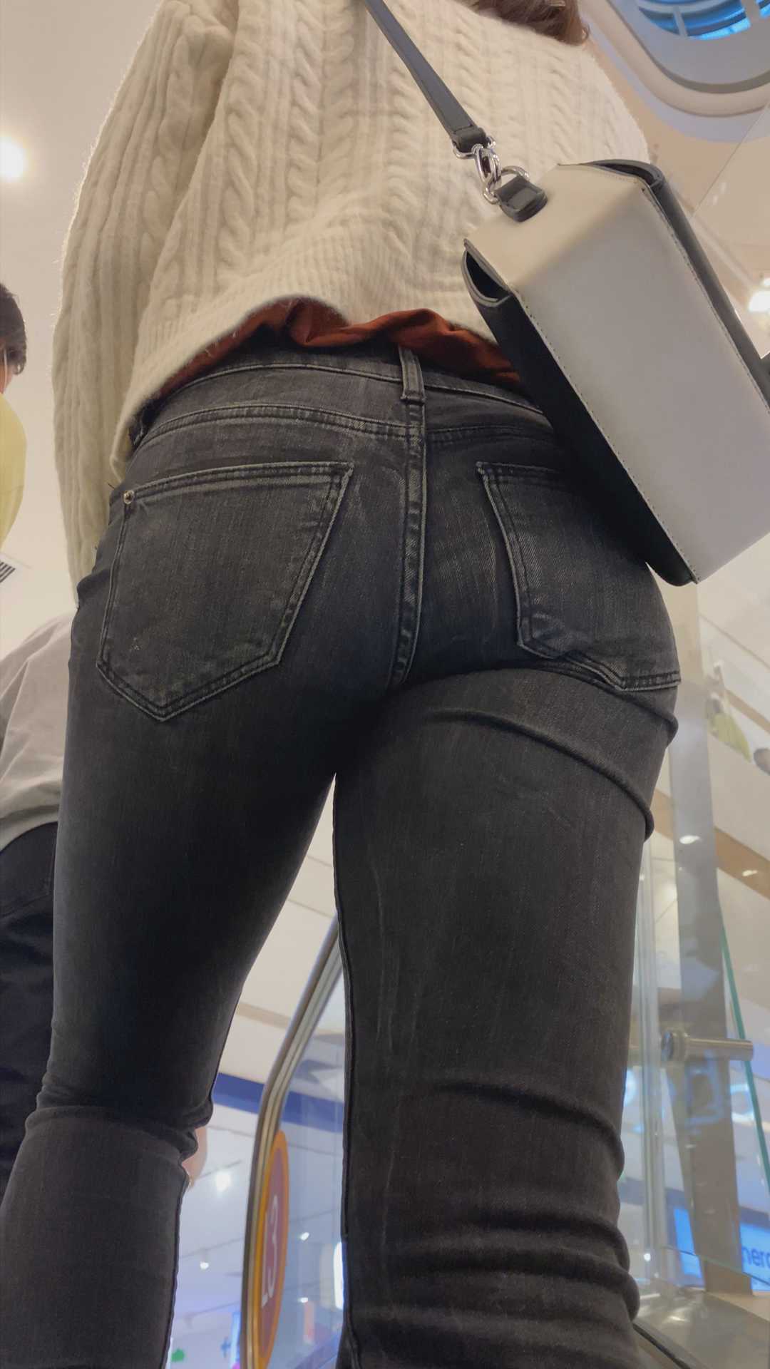 B1468黑牛仔深沟紧臀美女