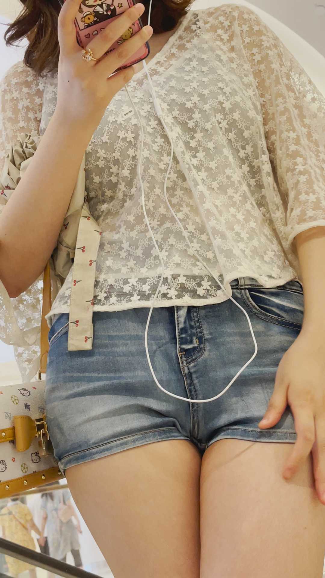 B3超短紧身裤眼镜妹等闺蜜一起喝茶