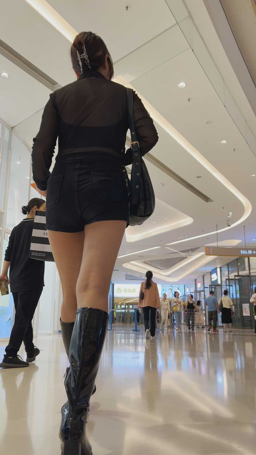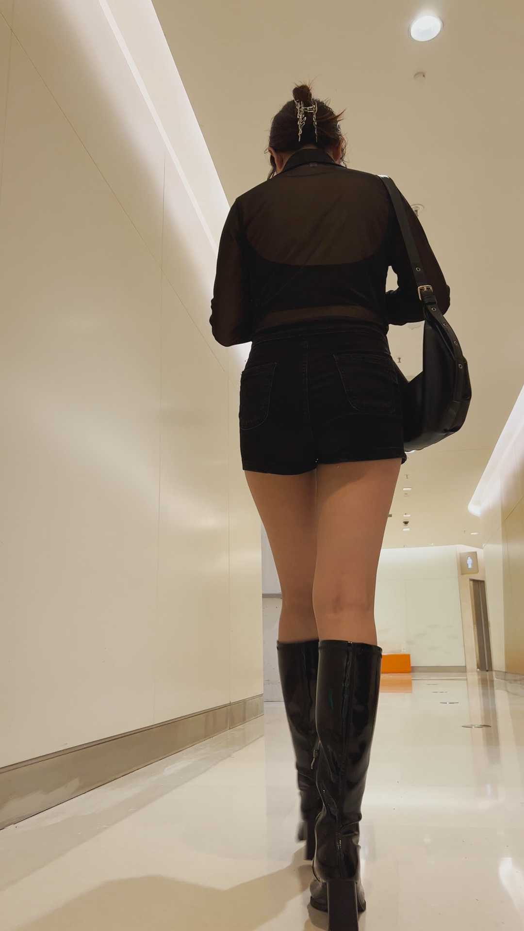 B51长腿短裤半透上衣美女