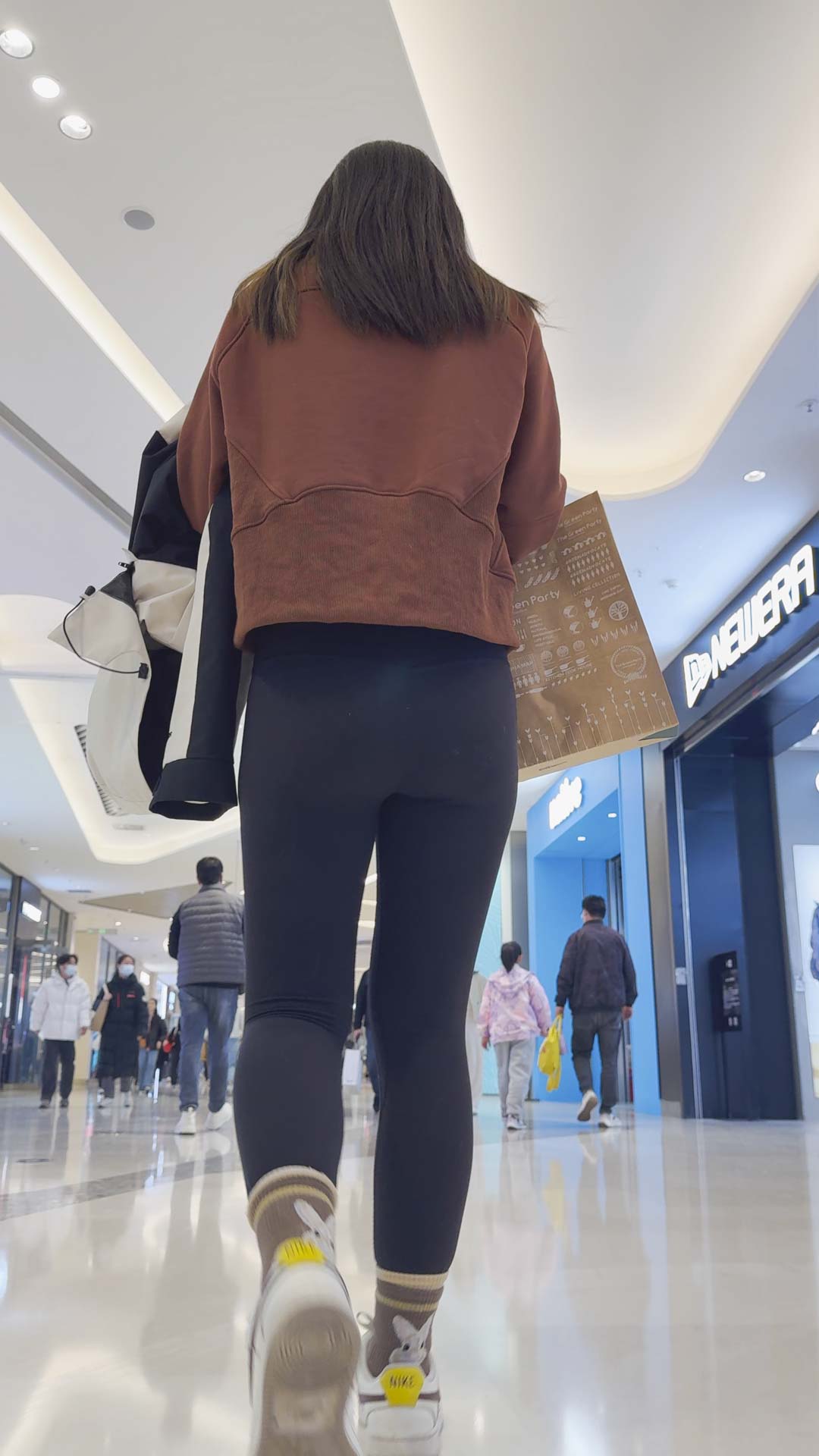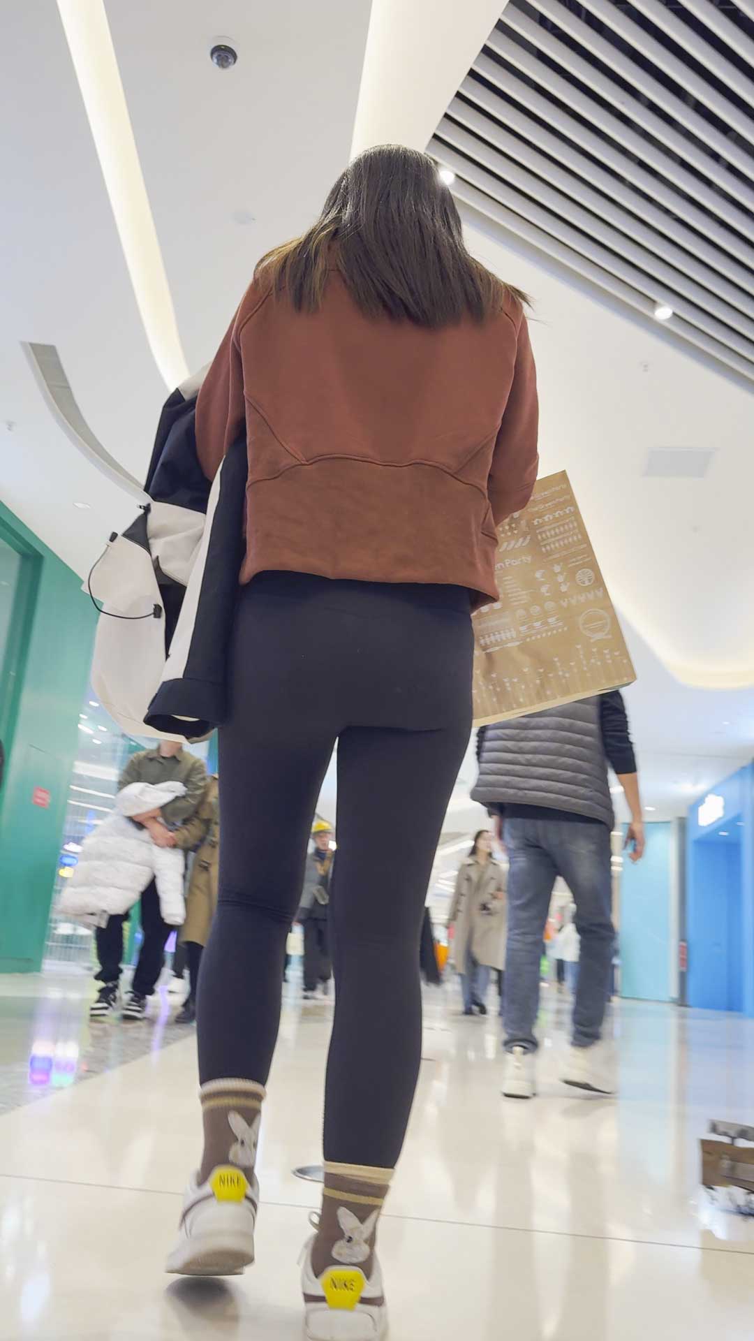 B57侧拍翘臀透内痕健身裤少妇