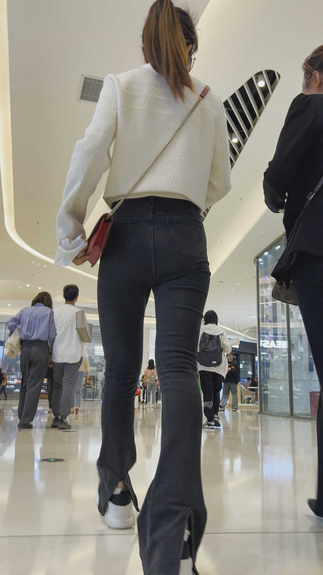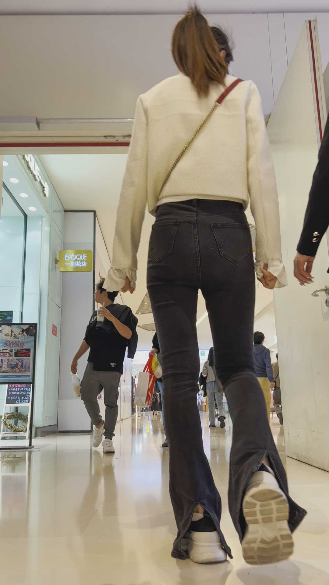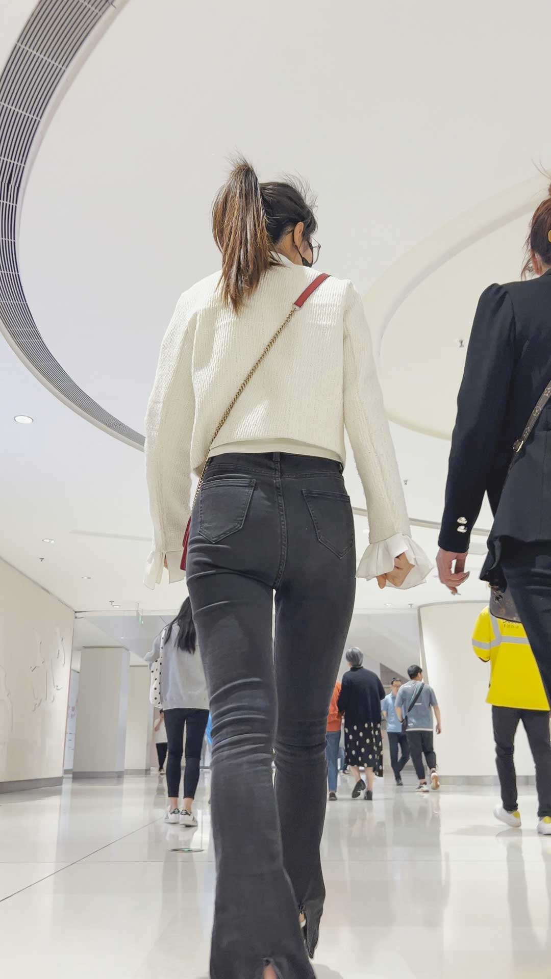 B150商场灰牛仔紧臀眼镜妹