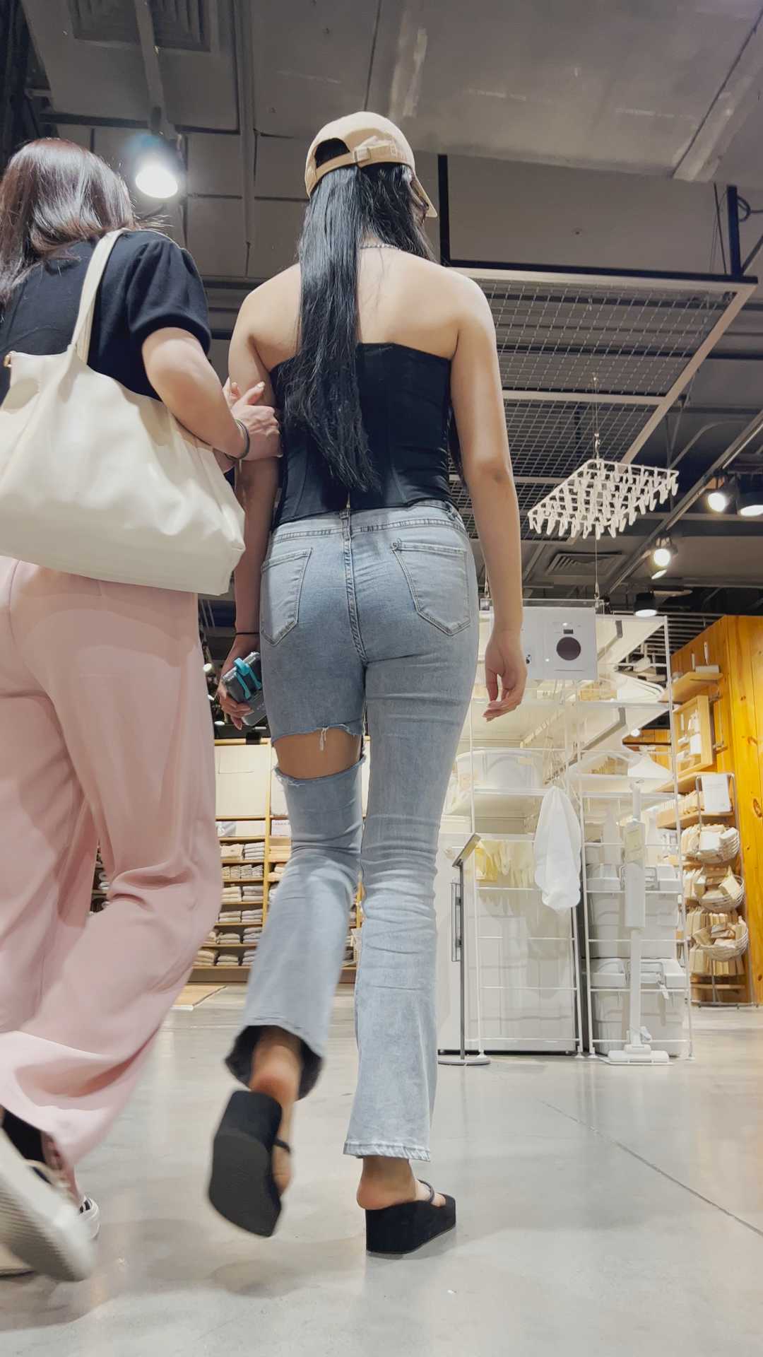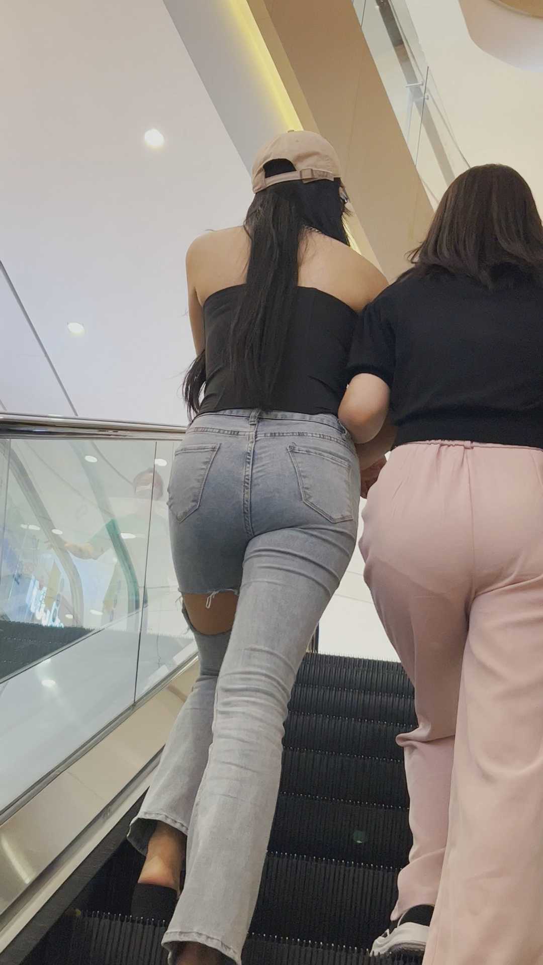 B323性感紧身牛仔露背妹子