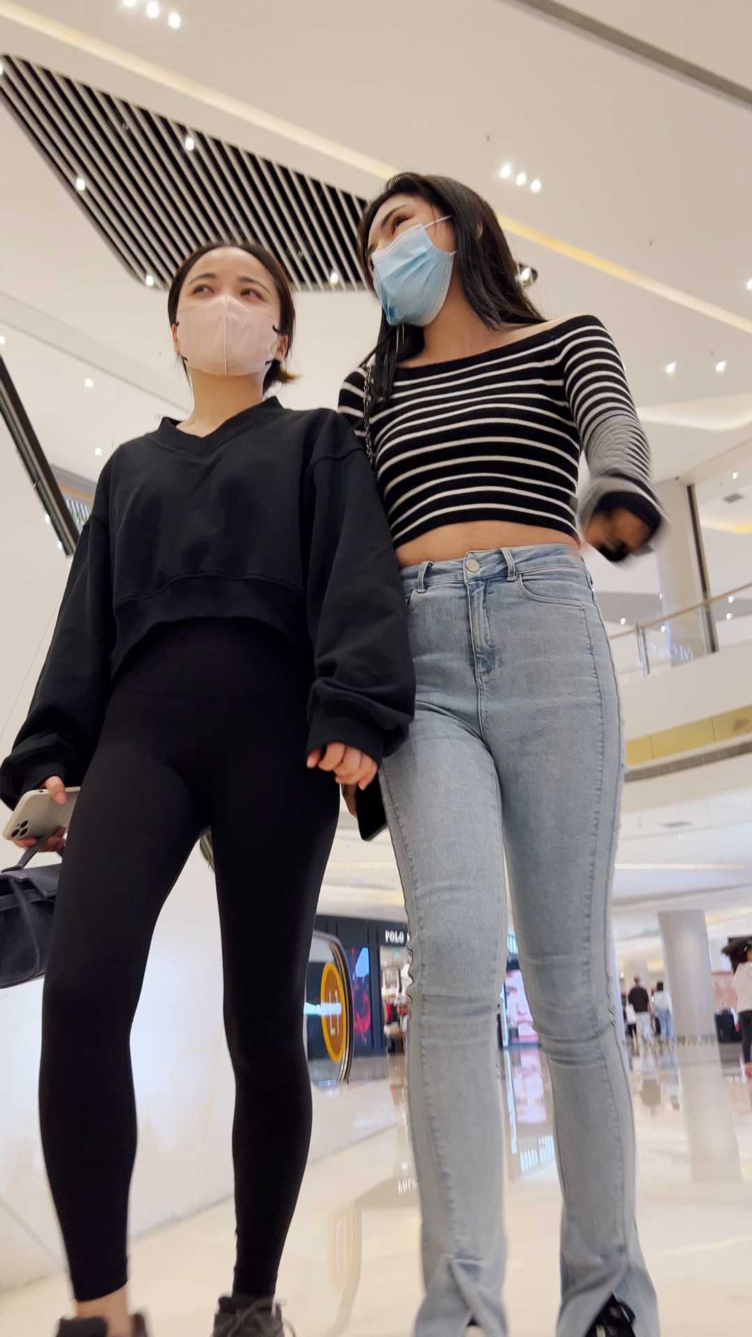B337性感翘臀鲨鱼裤牛仔两妹子