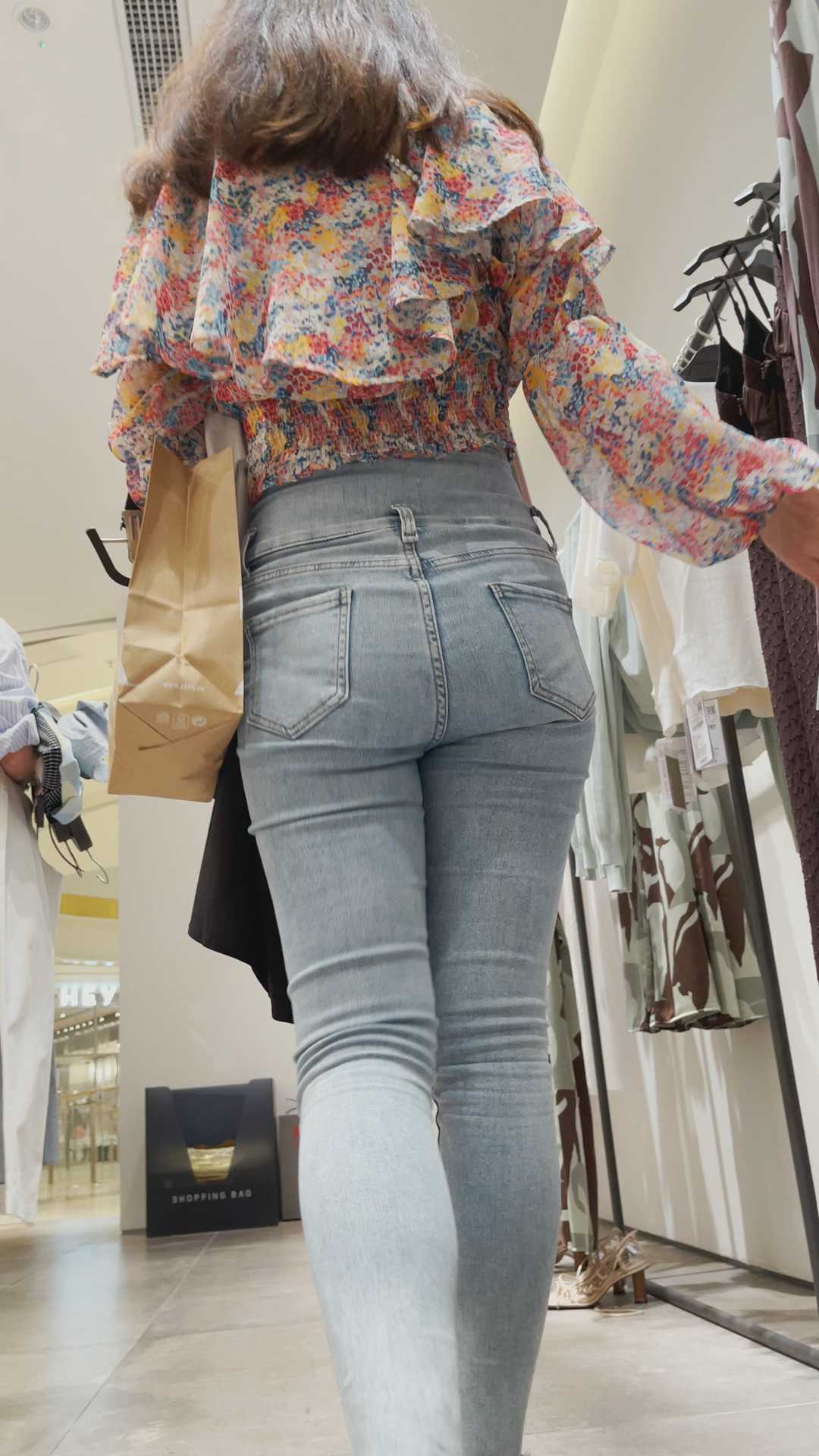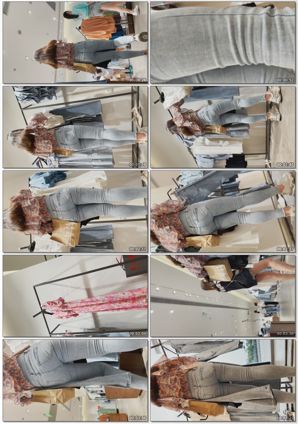 B433服装店紧身白牛仔妹子