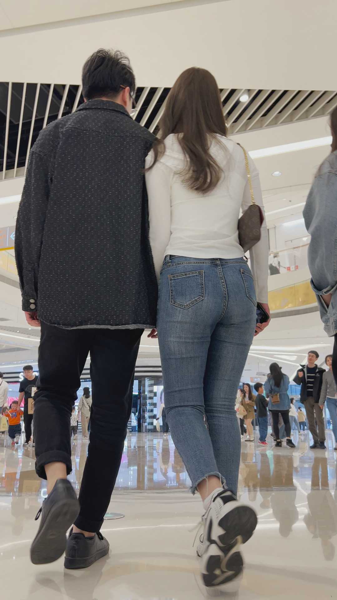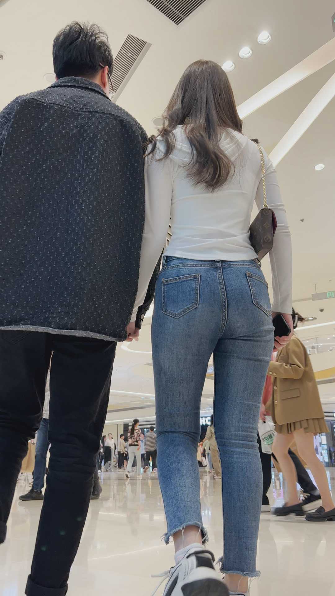 B574紧身牛仔丰臀长发美女