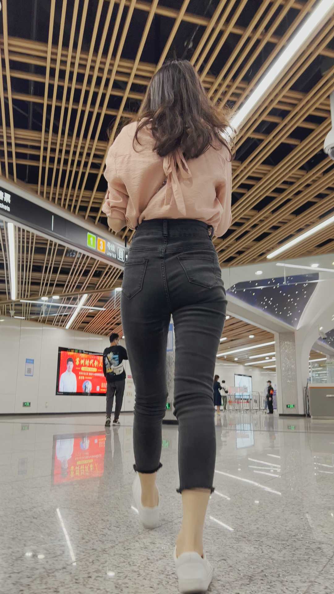 B663细腰紧臀灰牛仔小姐姐