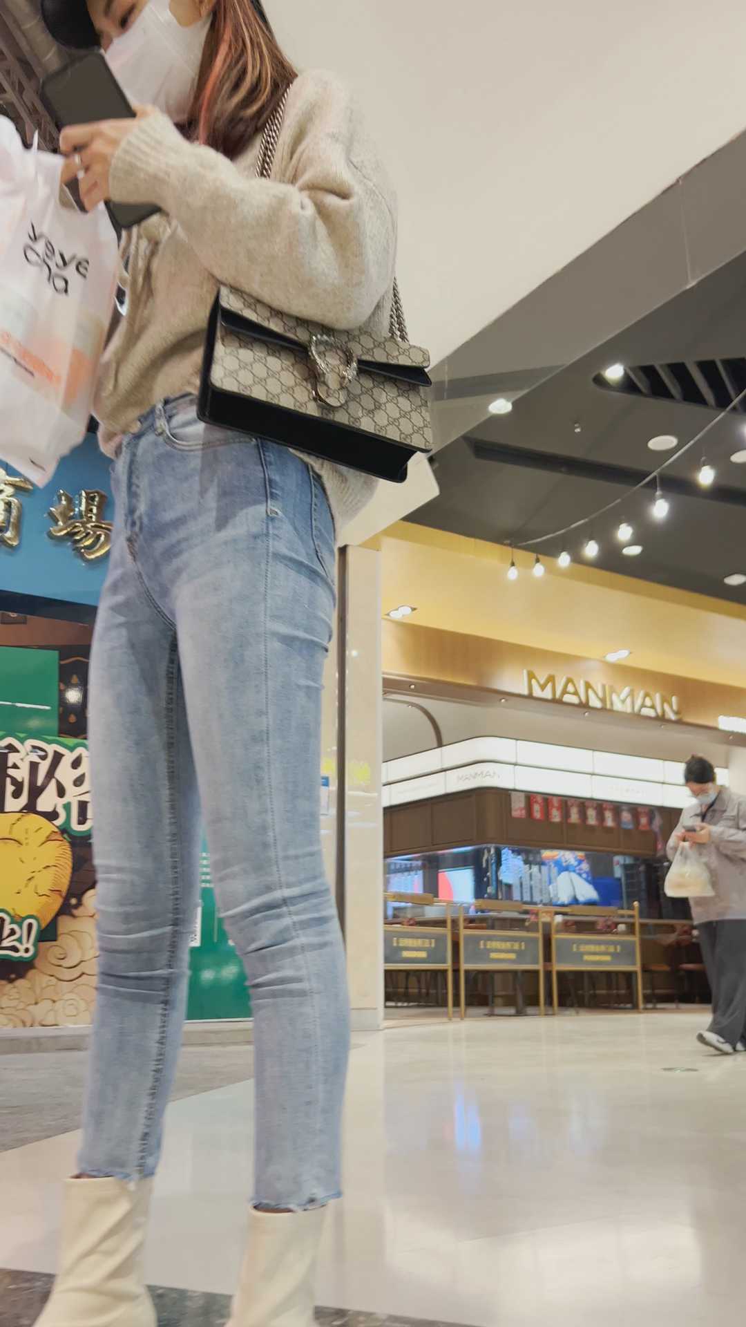 B717蓝牛紧臀小姐姐喝奶茶技术一流