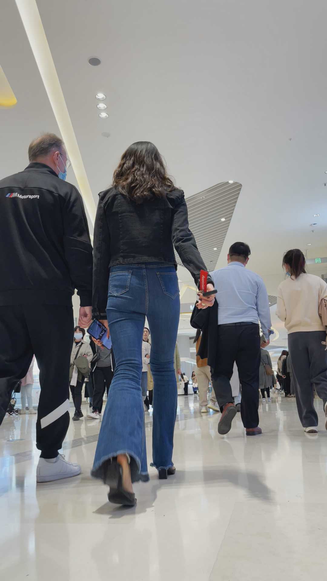 B851高挑牛仔喇叭裤少妇
