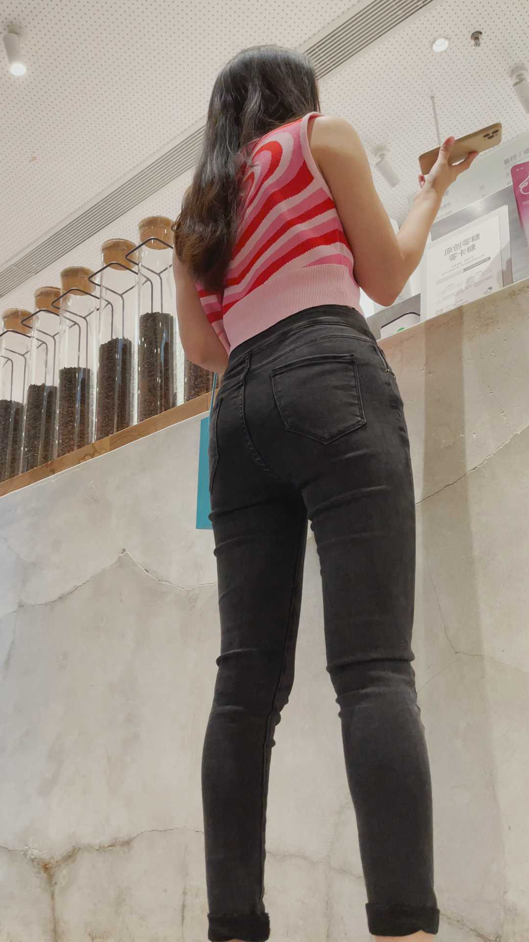 B868高跟黑牛仔翘臀身材好