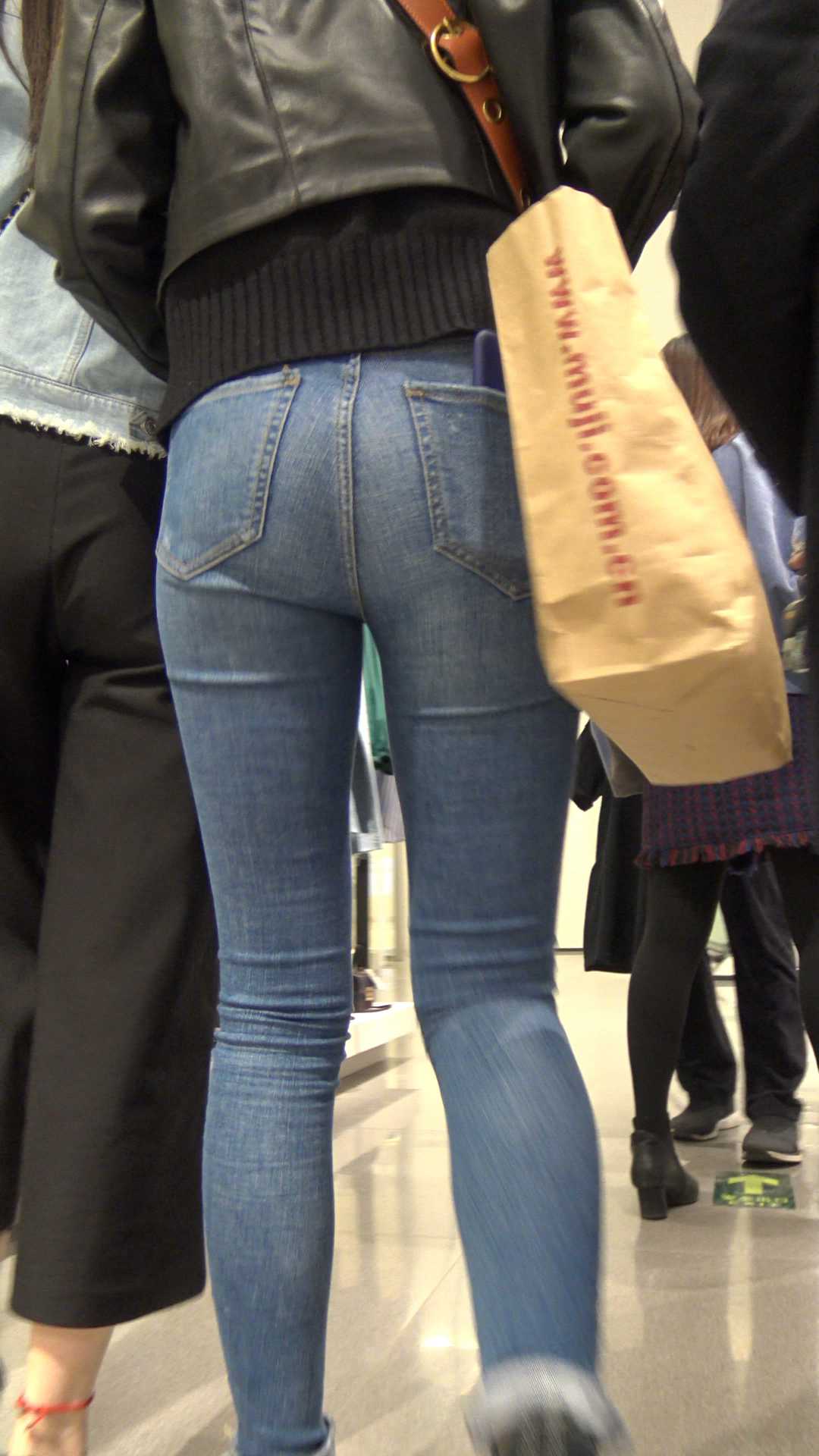 C377商场紧身包臀牛仔紧内痕美女第三季