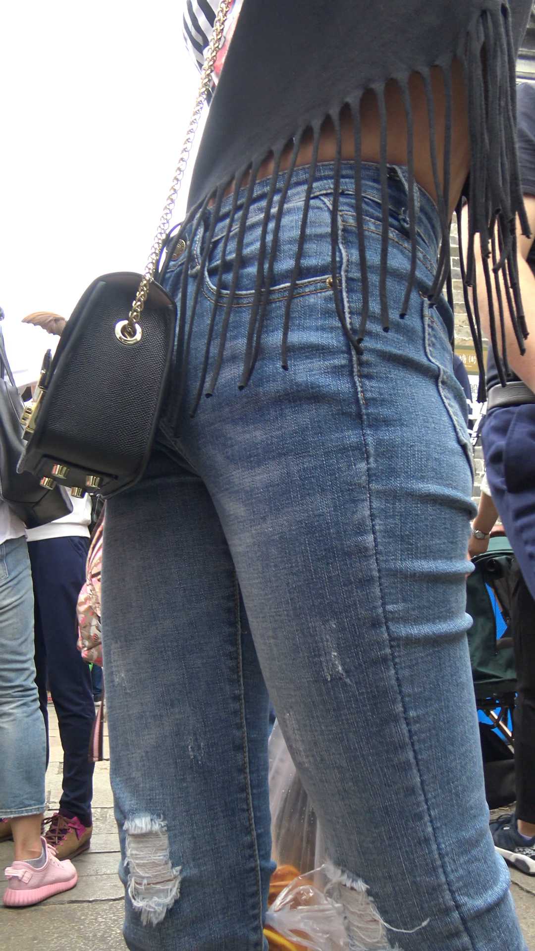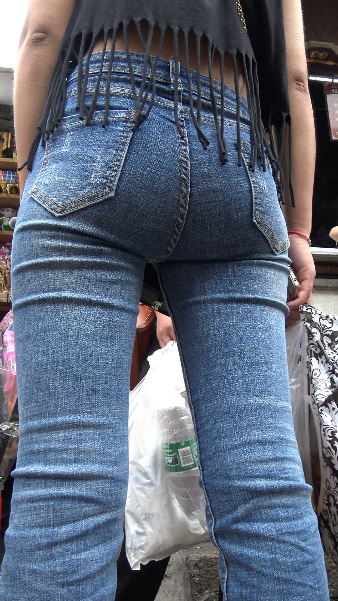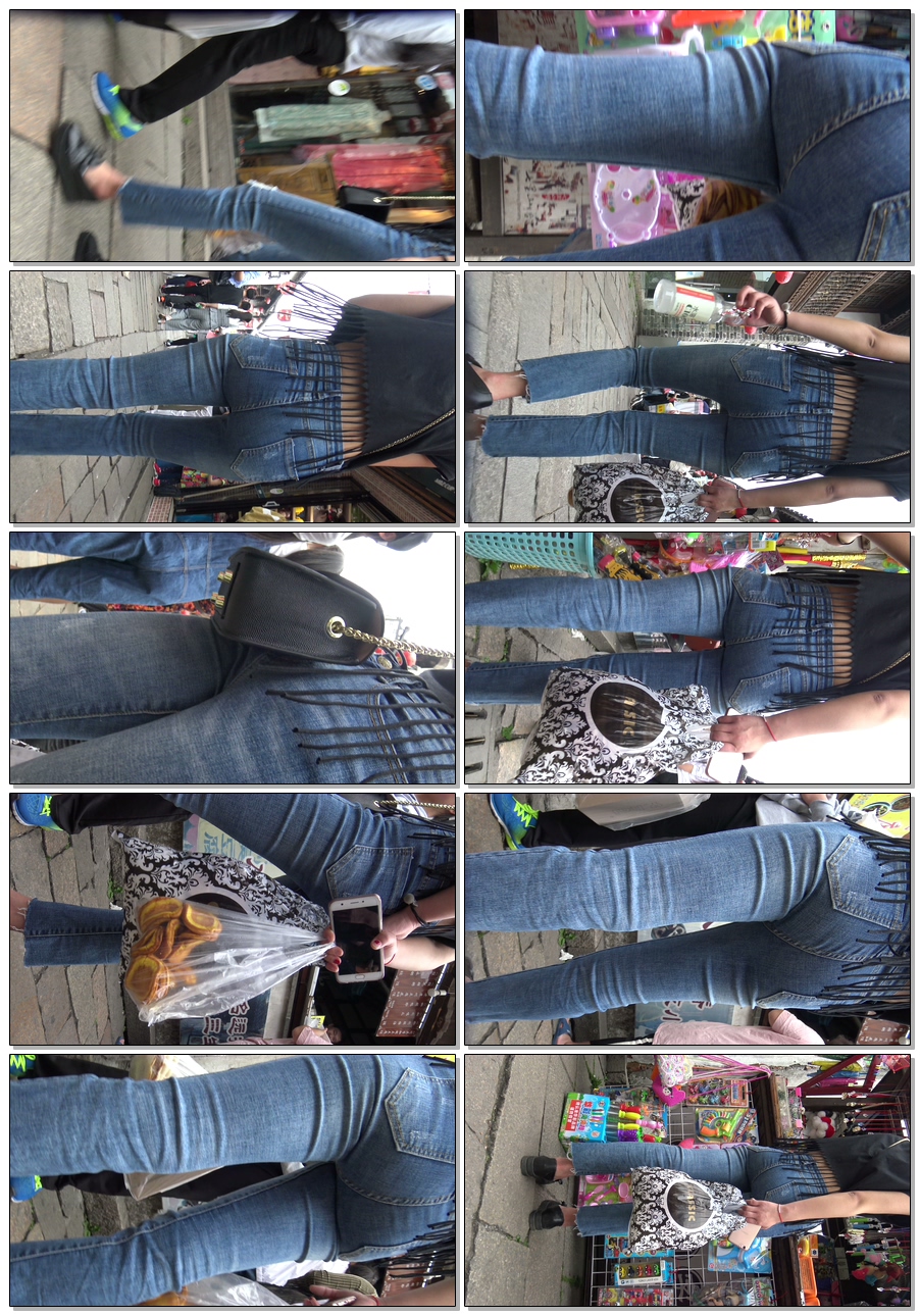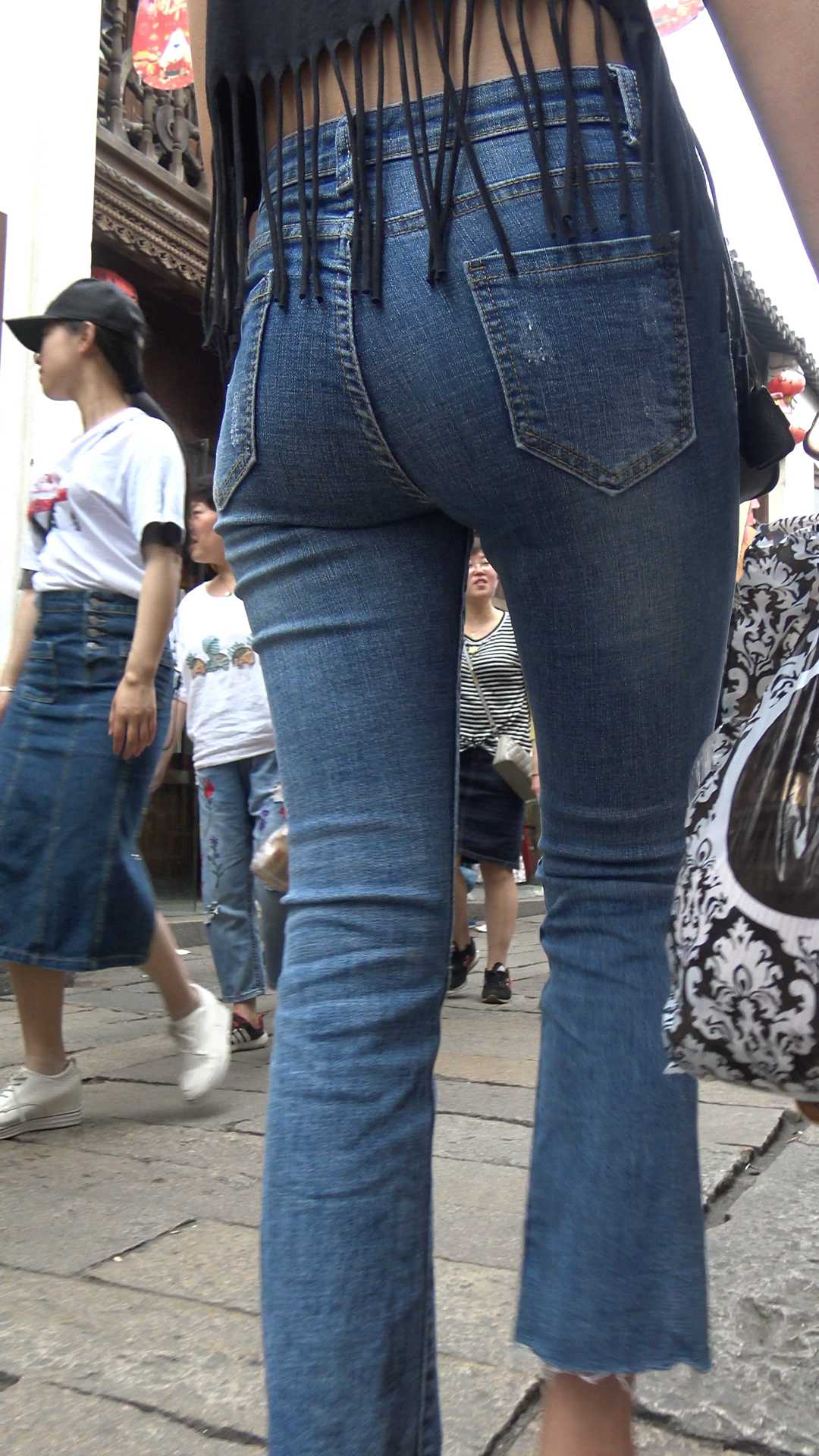 C378喇叭牛仔裤紧臀紧内痕美女
