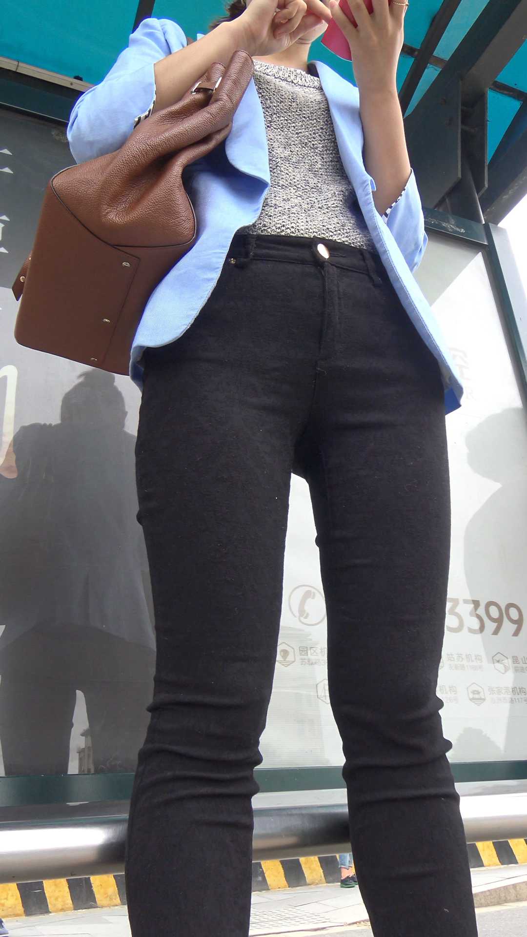 C406公交站黑裤少妇三角特写
