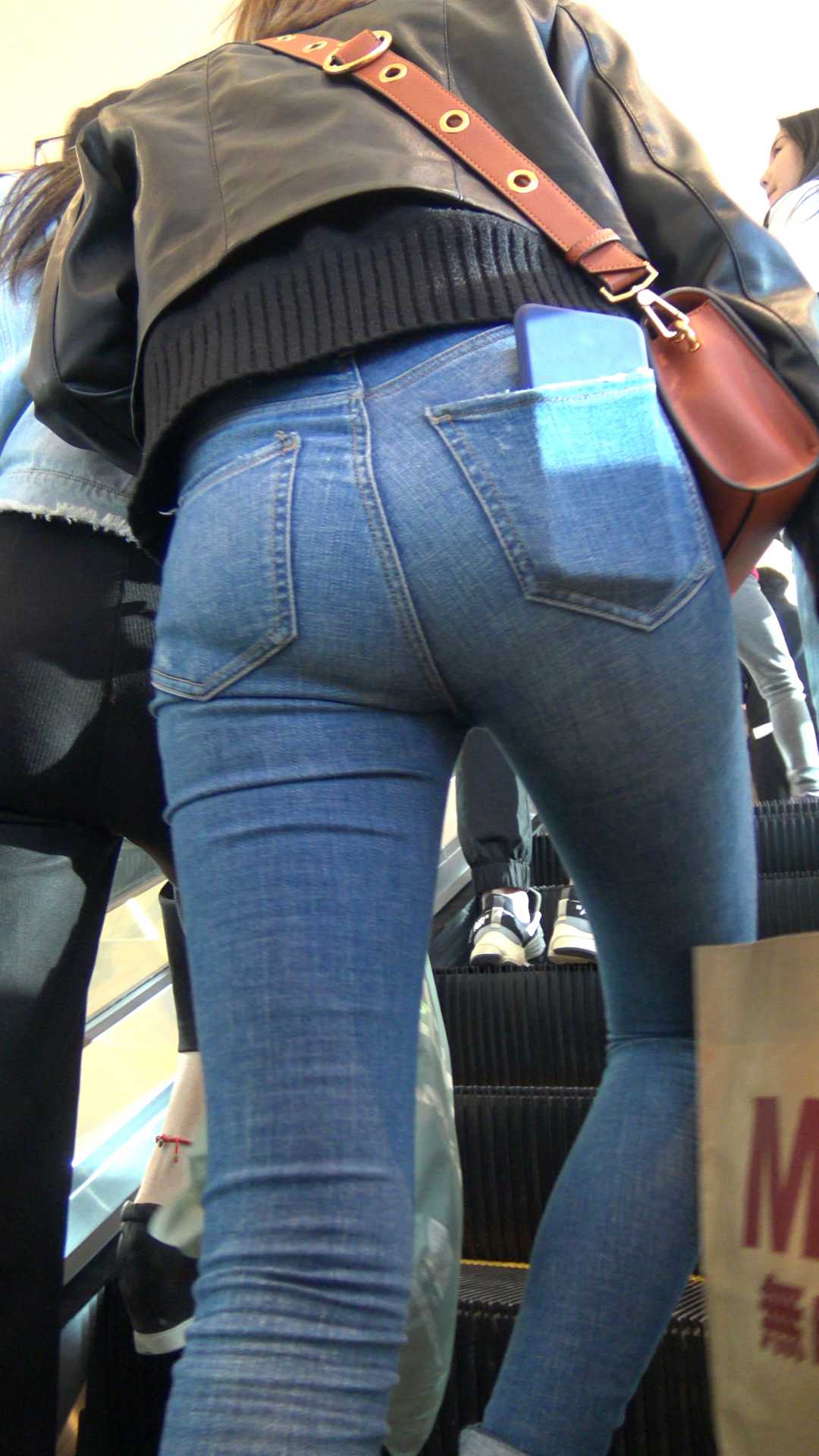 C493商场紧身包臀牛仔紧内痕美女第一季