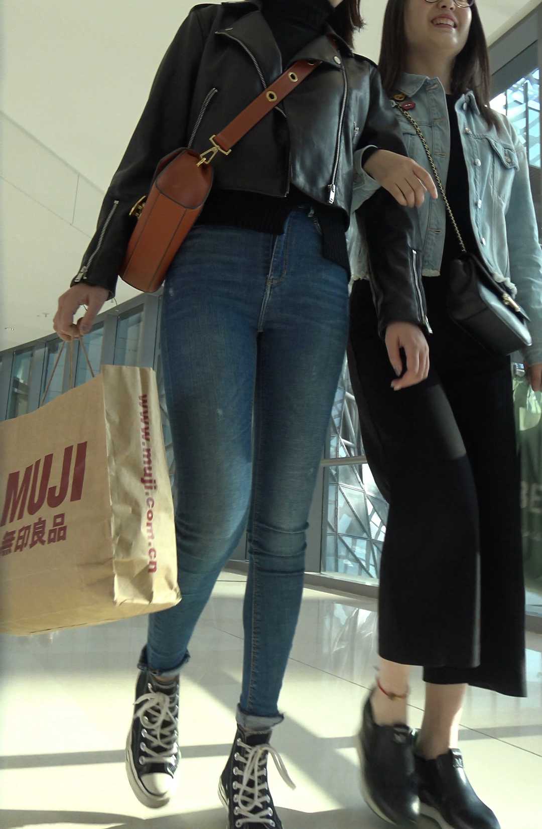 C494商场紧身包臀牛仔紧内痕美女第二季