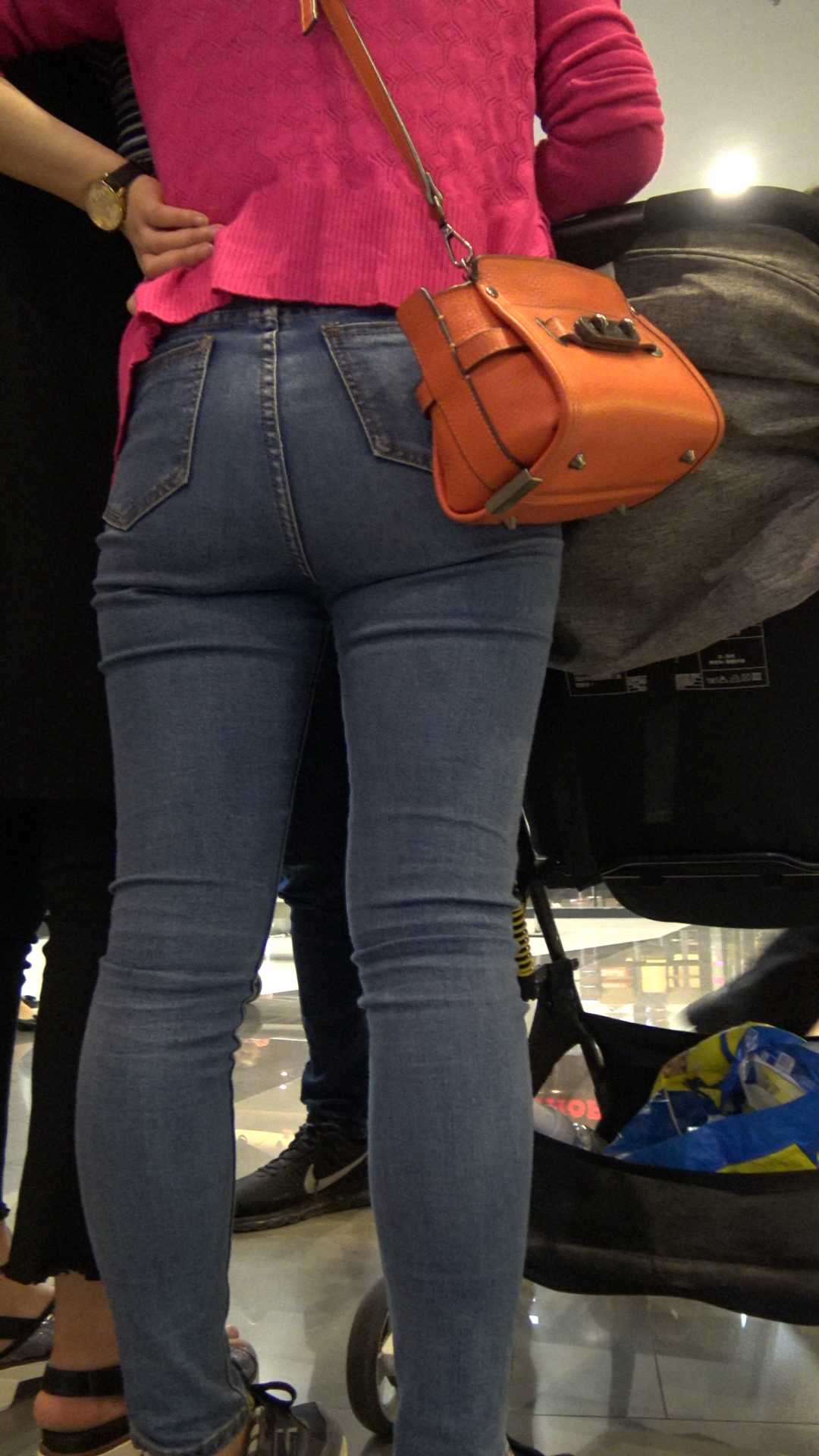 C517商场翘臀牛仔裤少妇