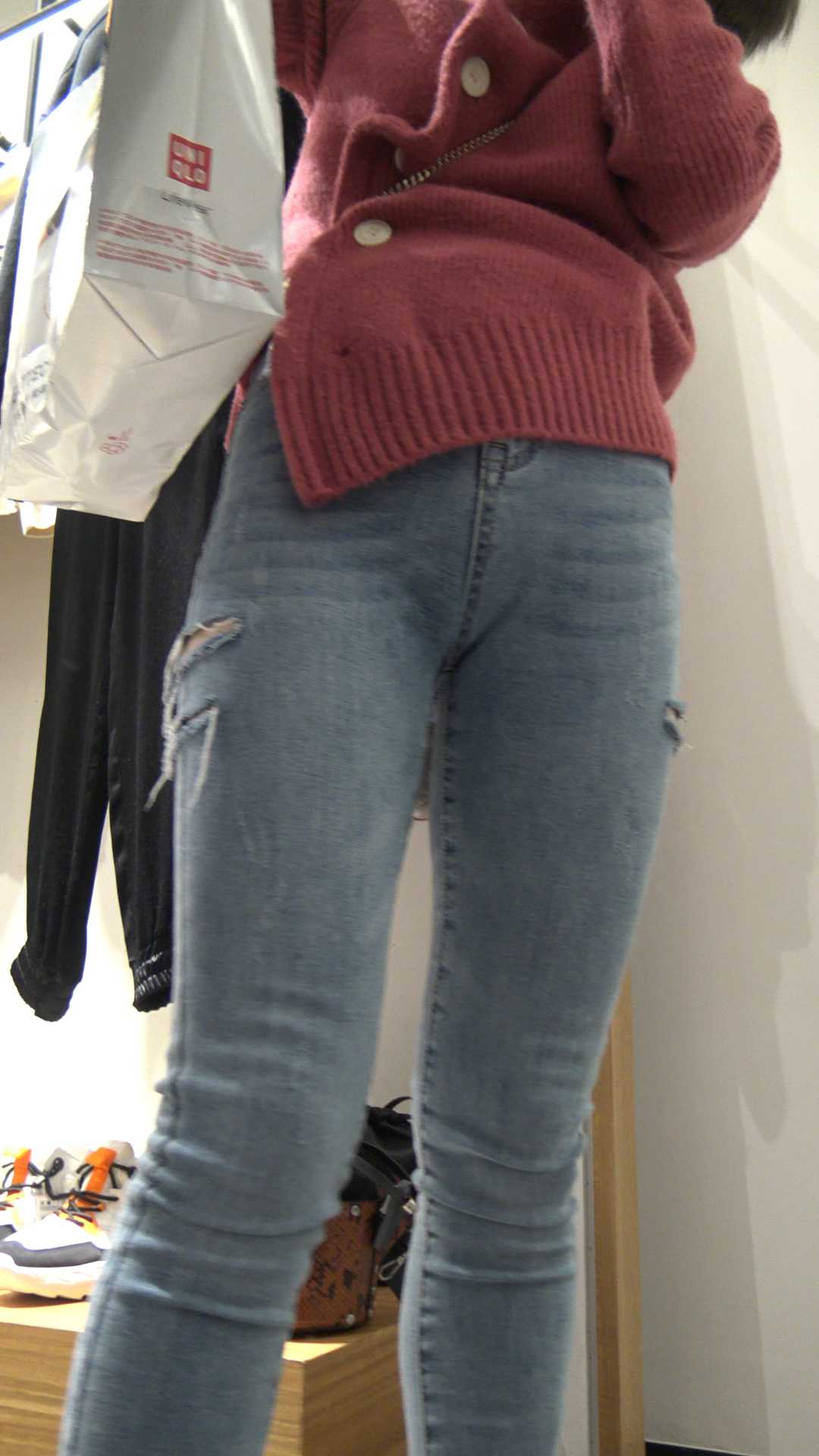 C525商场蓝牛肥三角少妇买衣服