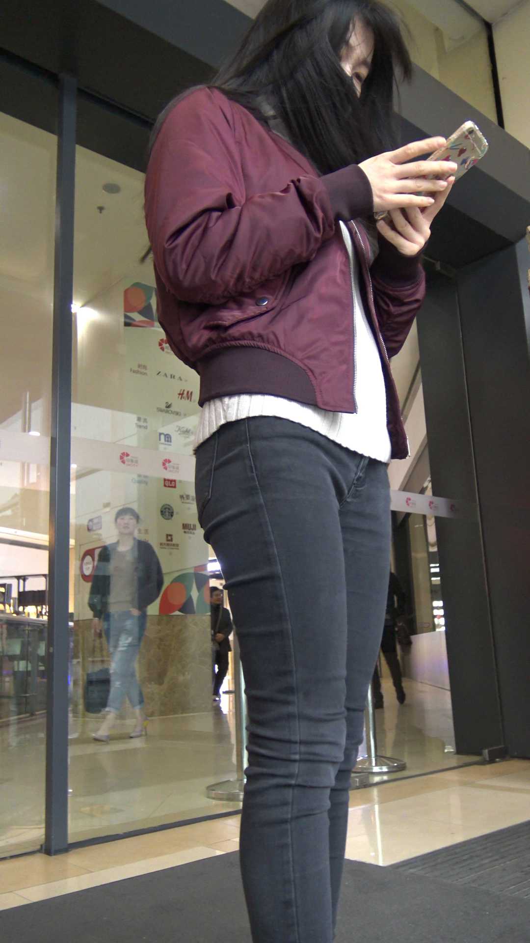 C535商场超紧黑牛仔美女前后摄