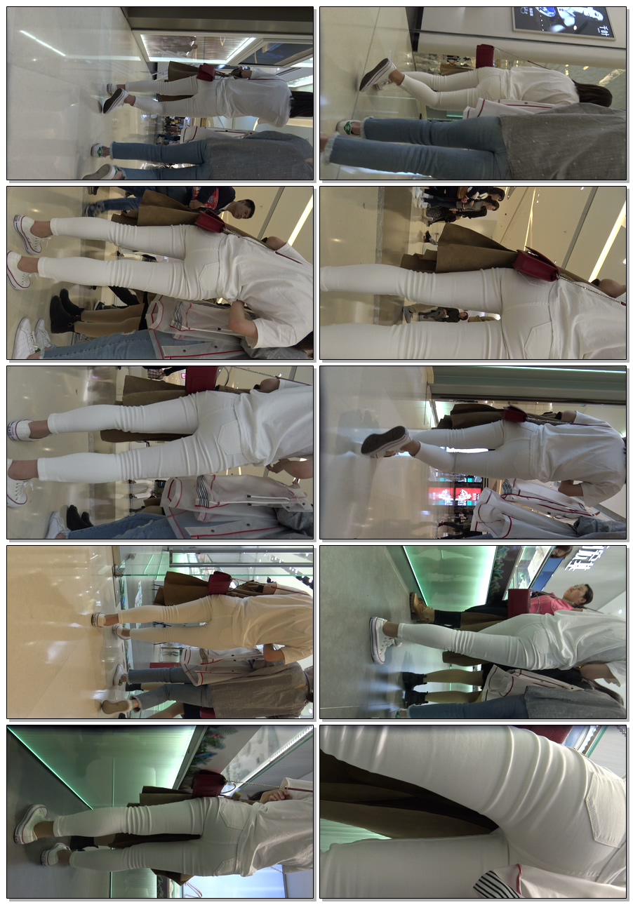C543商场高挑白裤翘臀少女