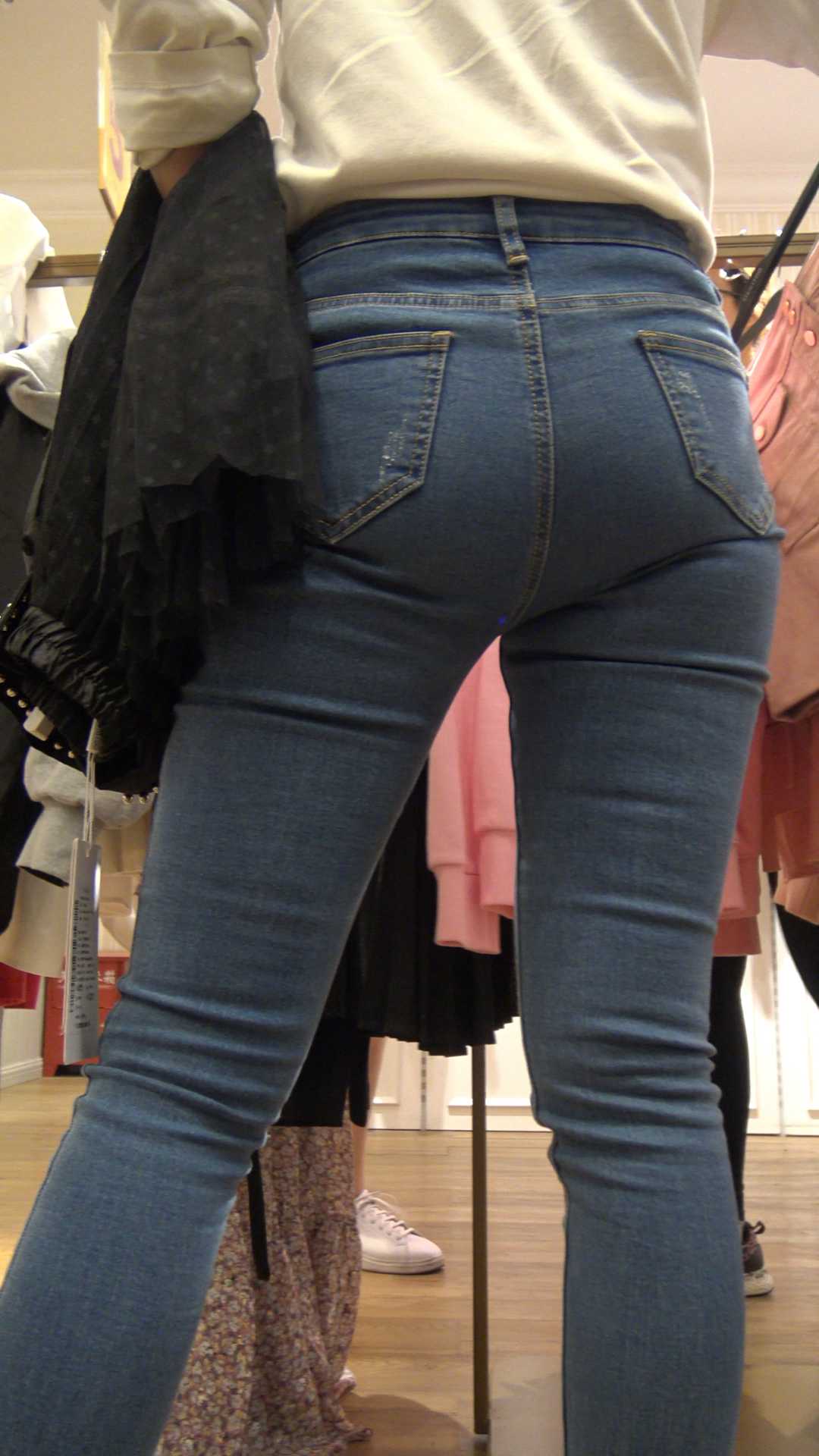C675服装店紧身紧臀牛仔少妇