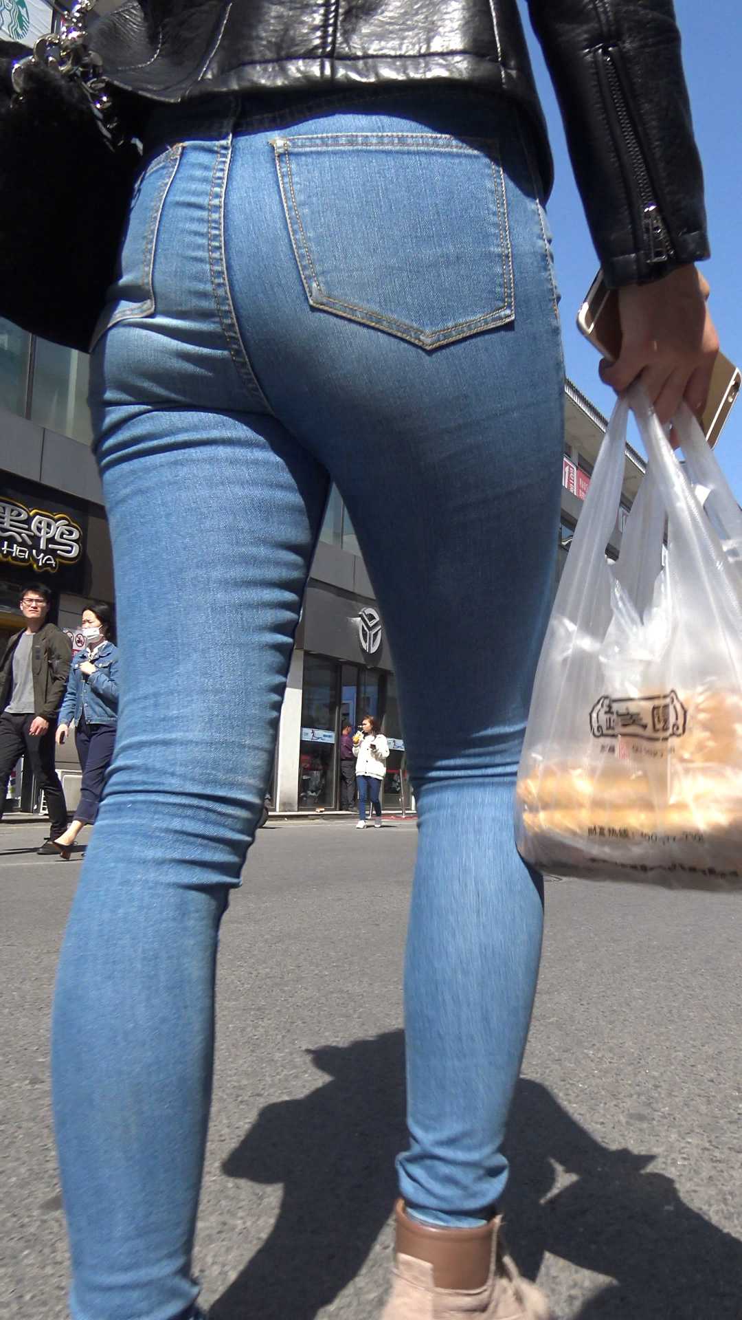 C900紧身牛仔饱满翘臀紧内痕美女