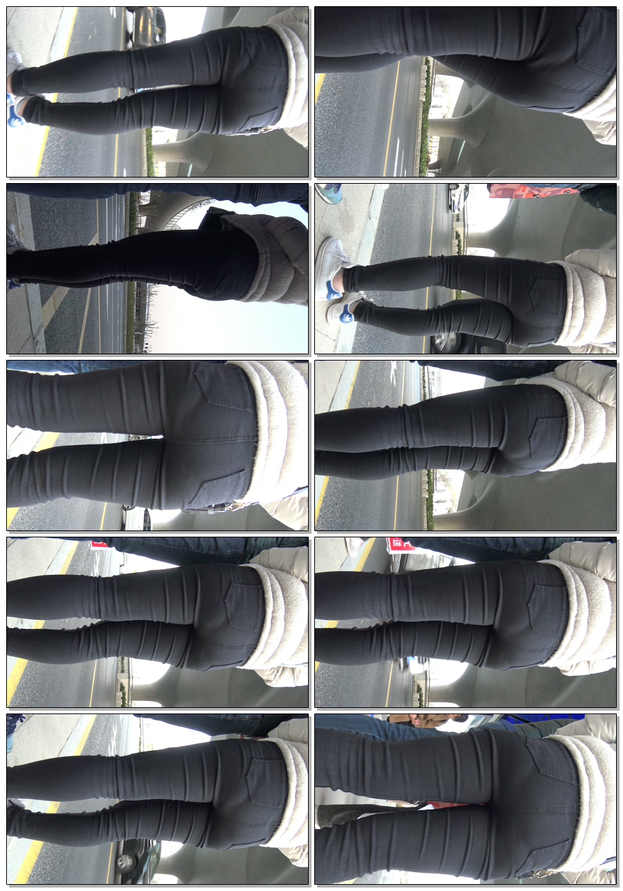 C945紧身黑牛仔紧内痕少女等公交