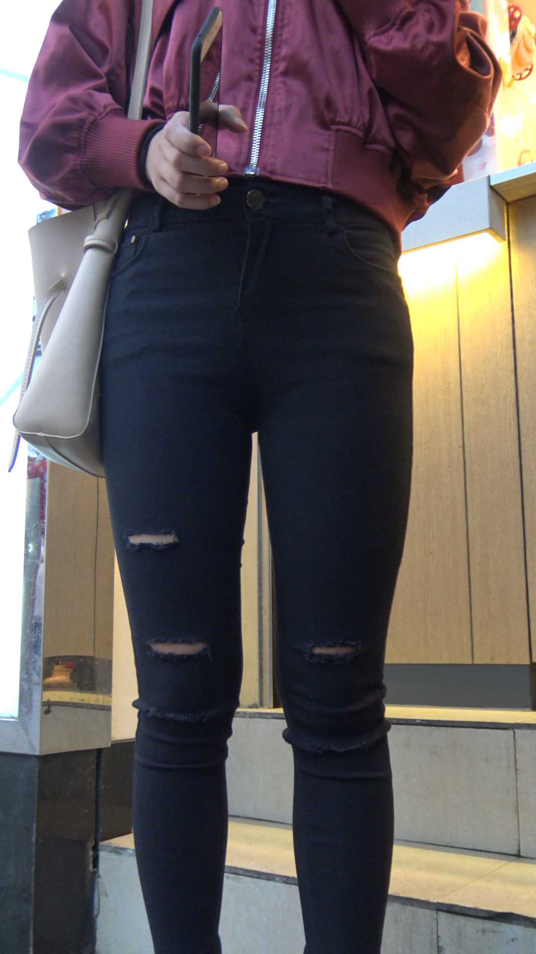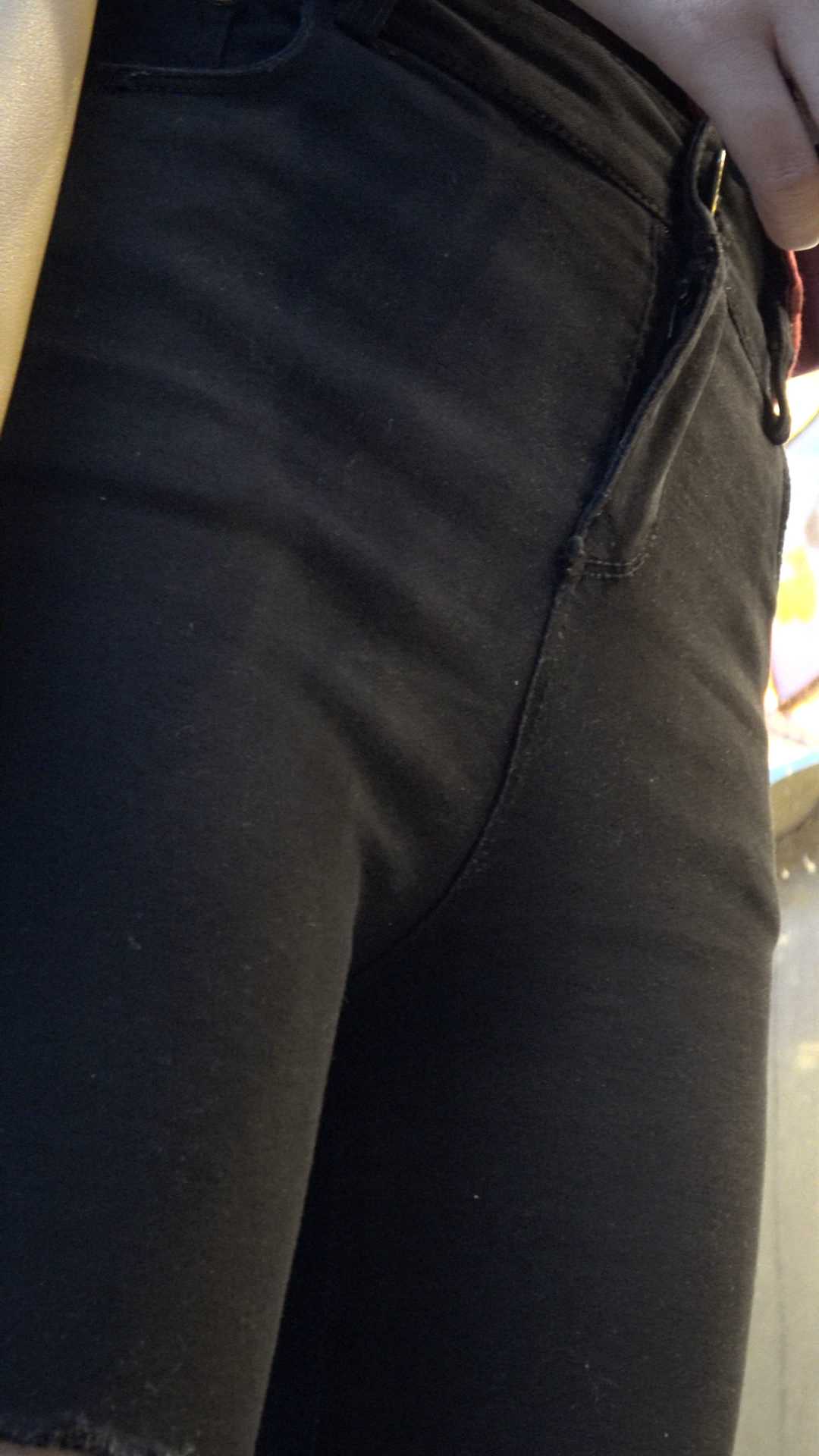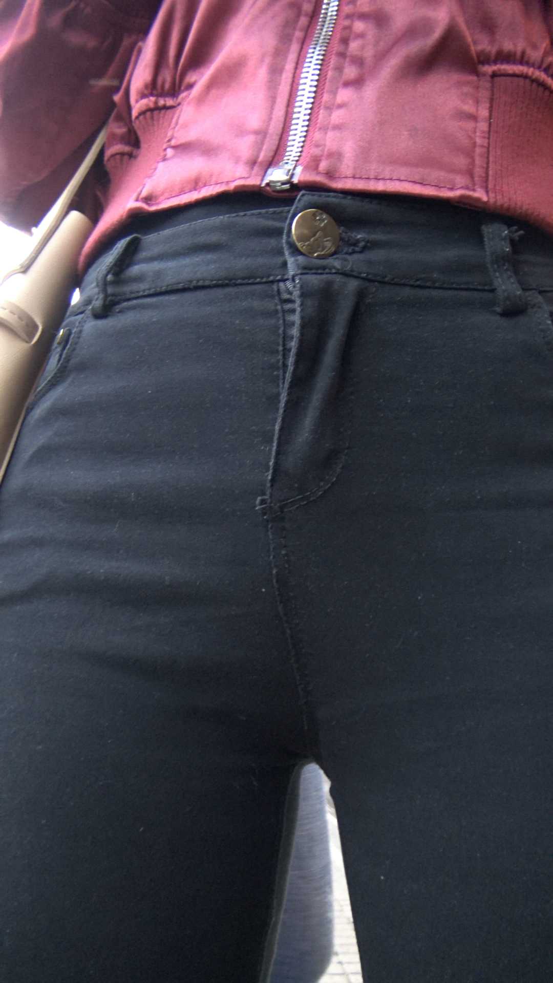 C964紧身黑裤金三角肥臀特写