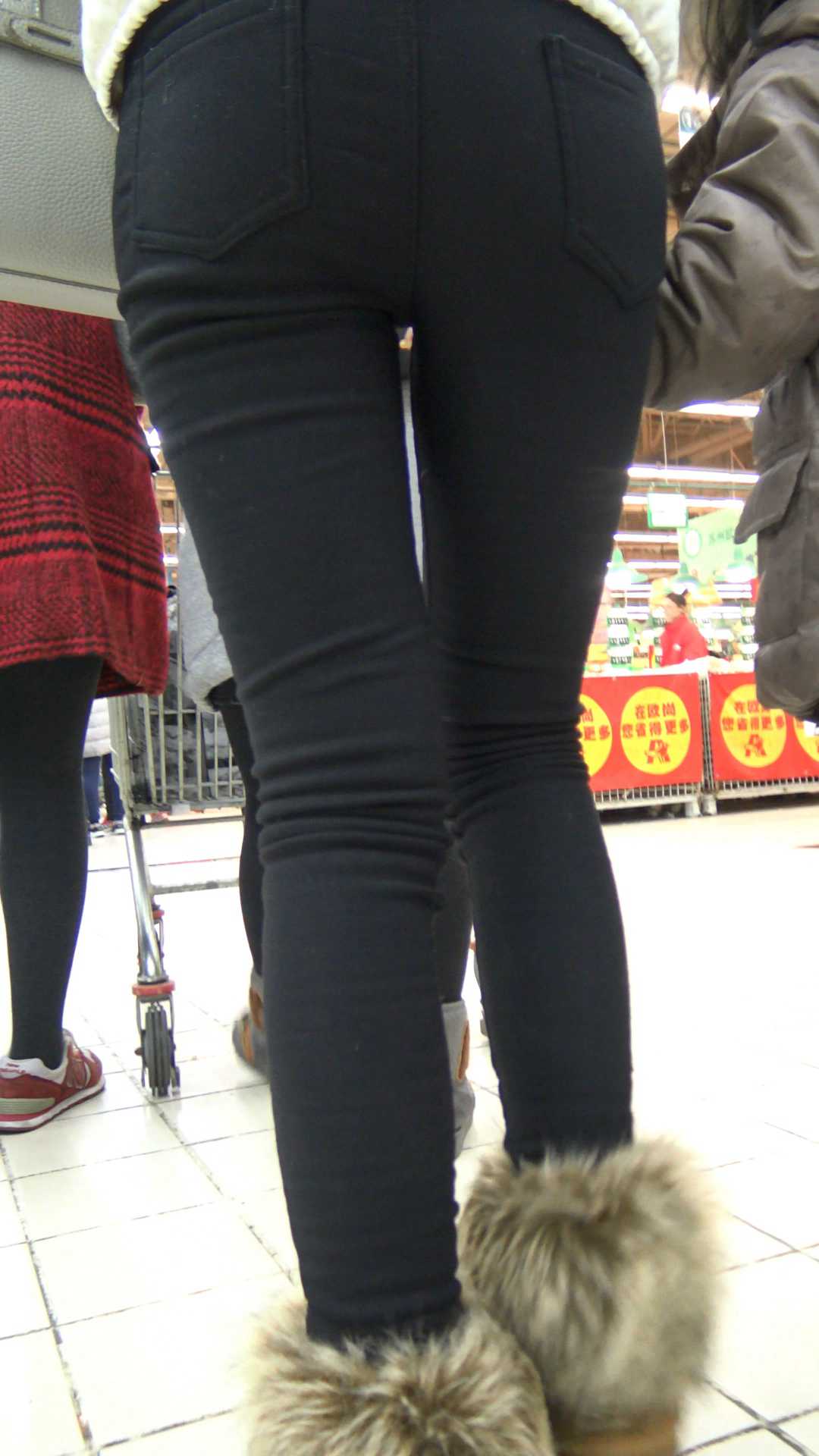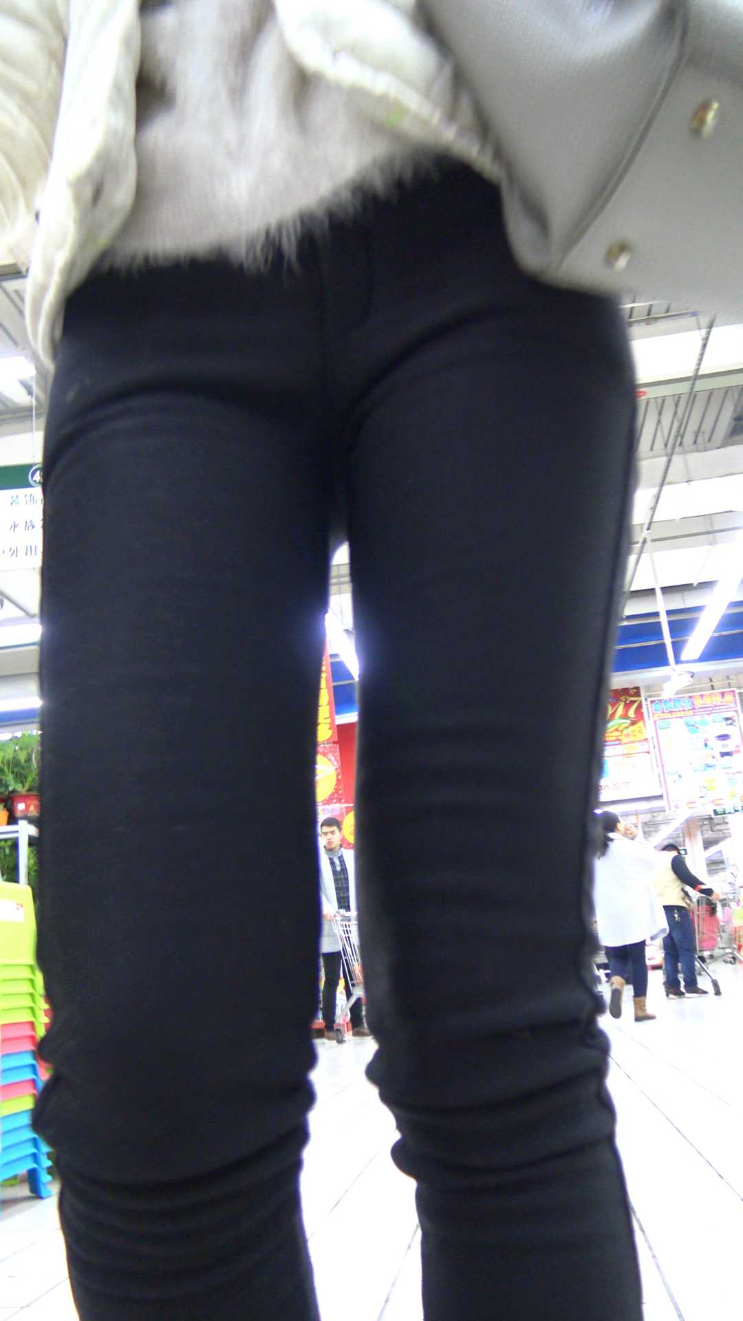 C1136超市打底黑裤紧臀小妹