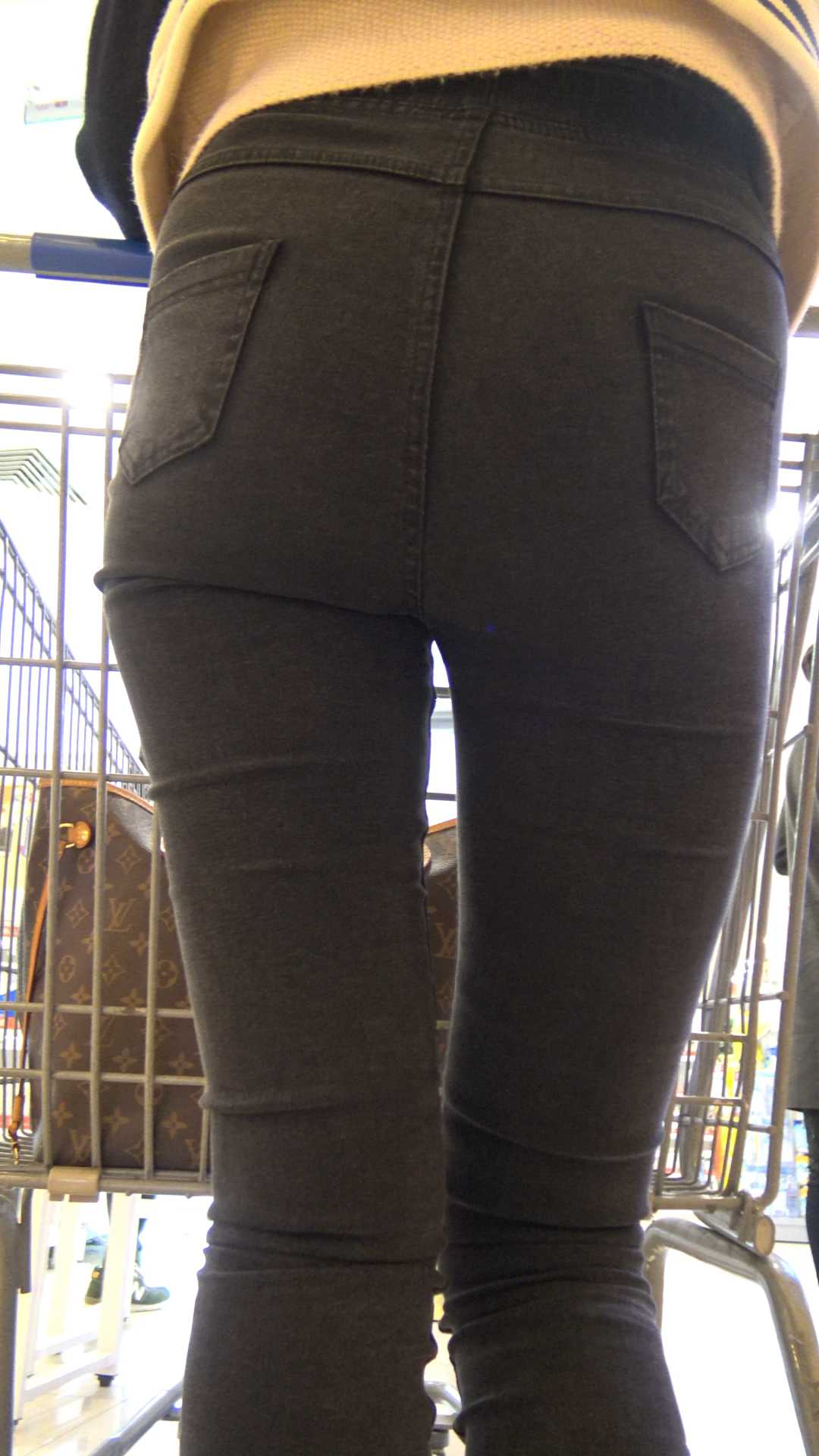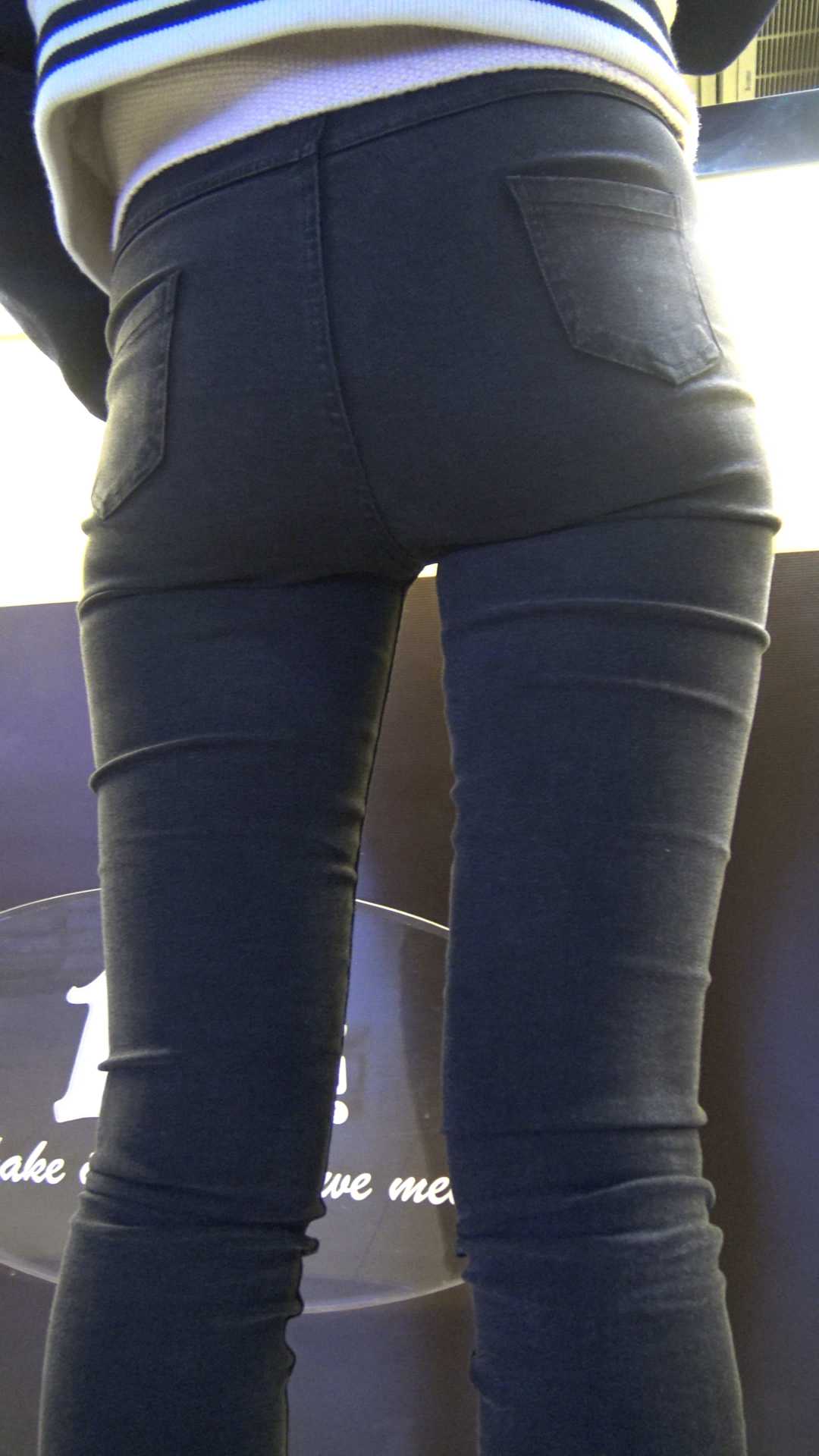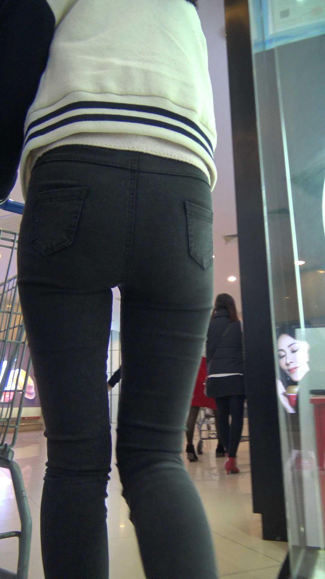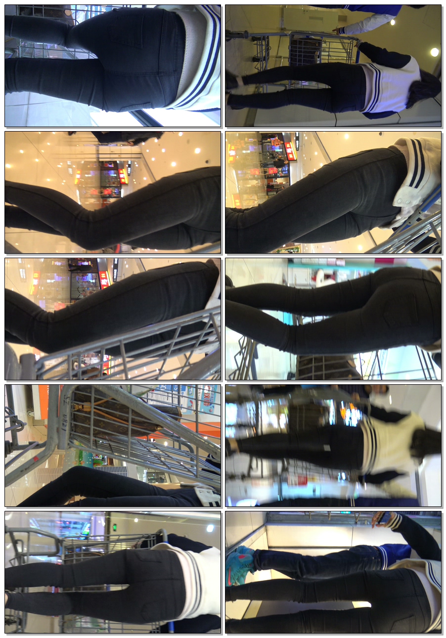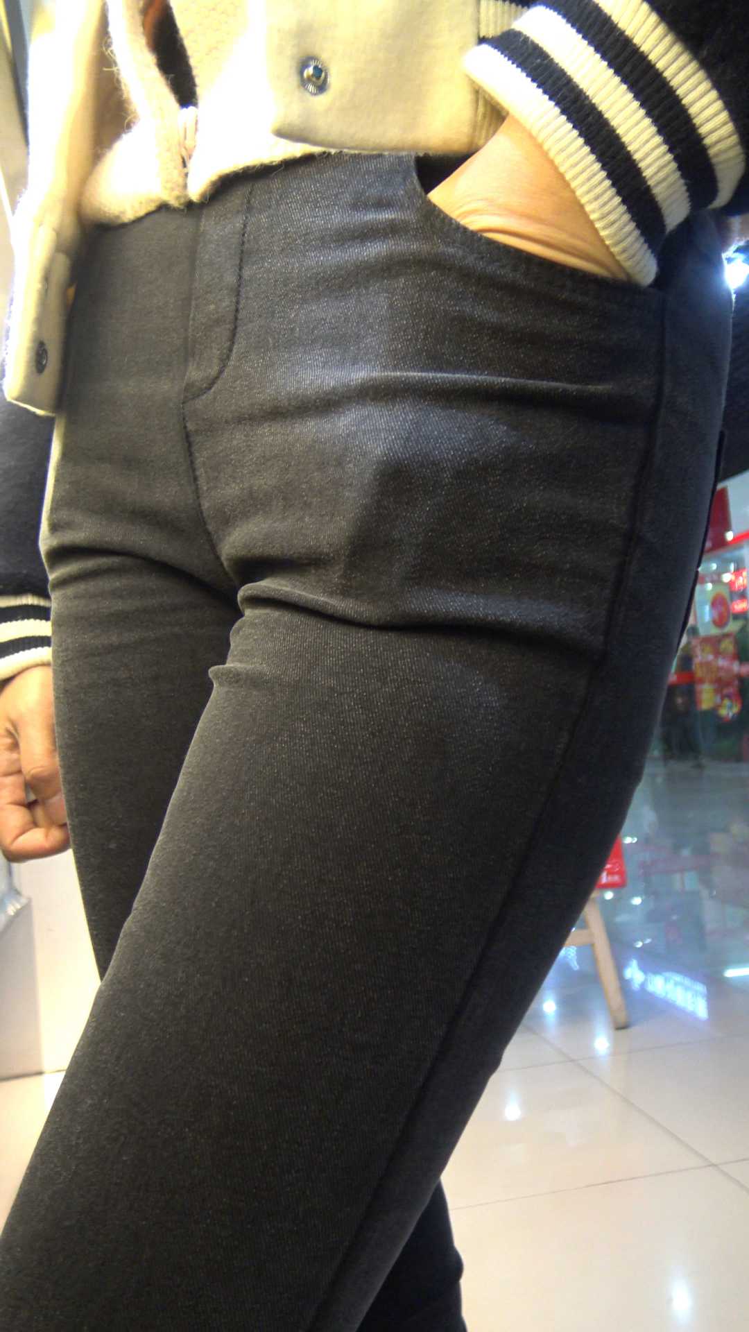 C1185超市紧身黑裤宽大臀美女