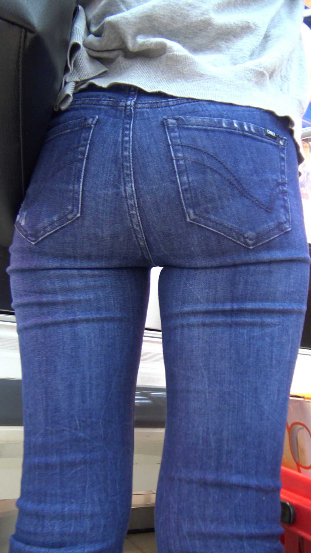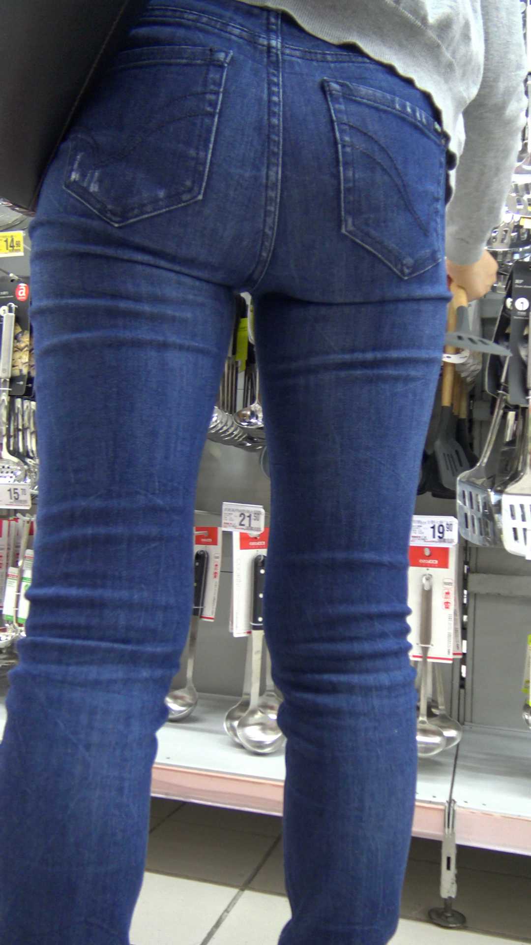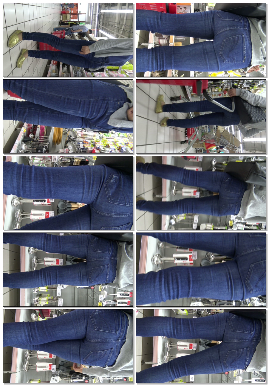 C1209超市里的深蓝色包臀紧身裤,人美,臀更美