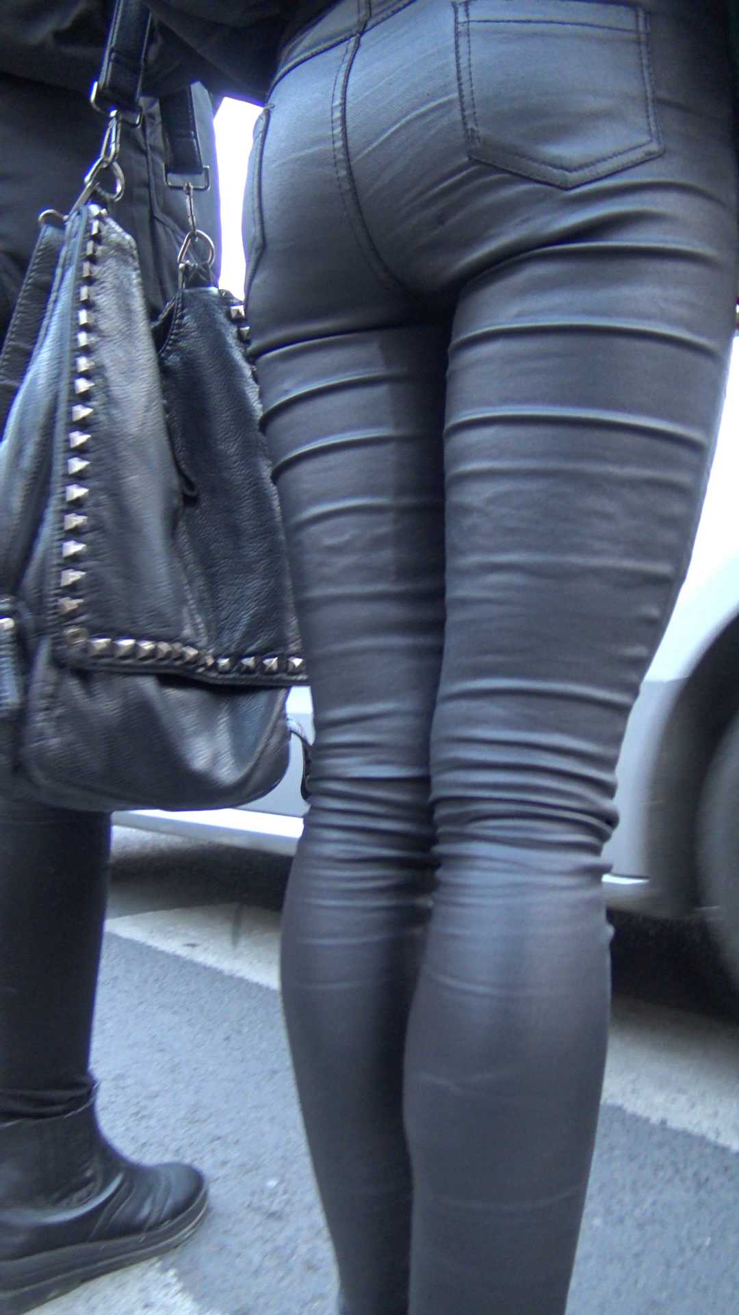 C1353饱满紧翘臀皮裤少女