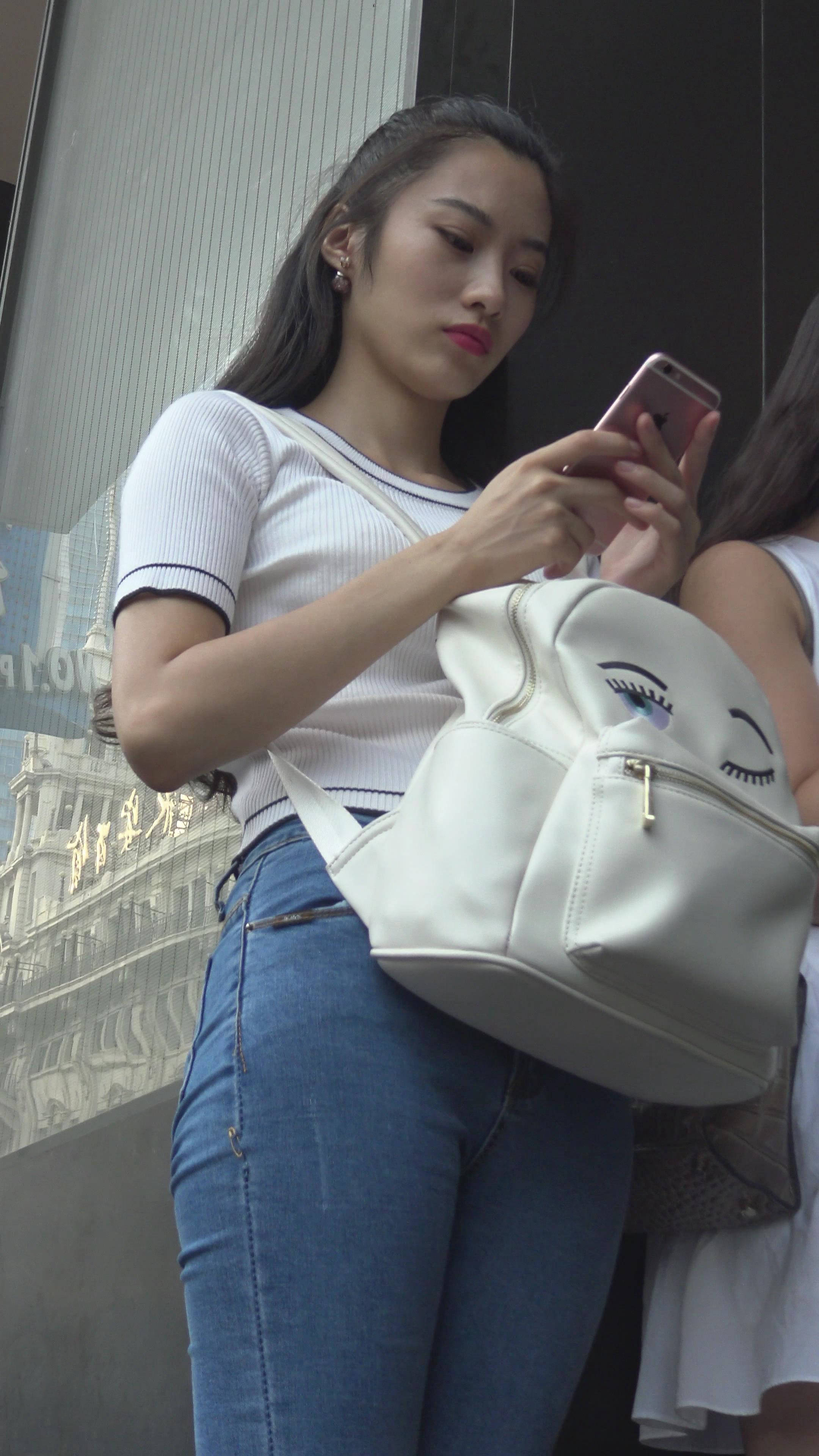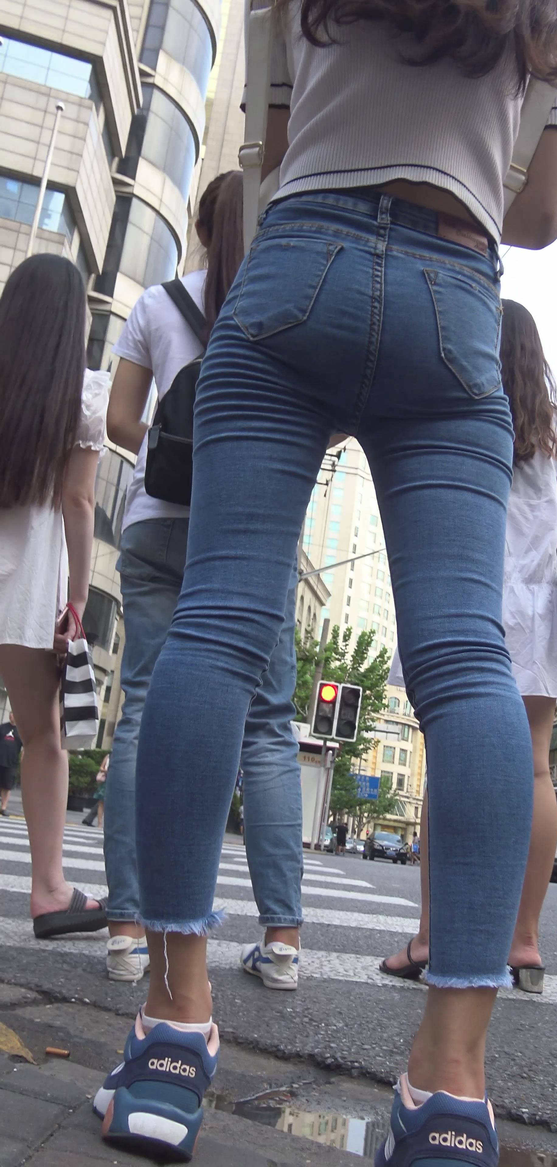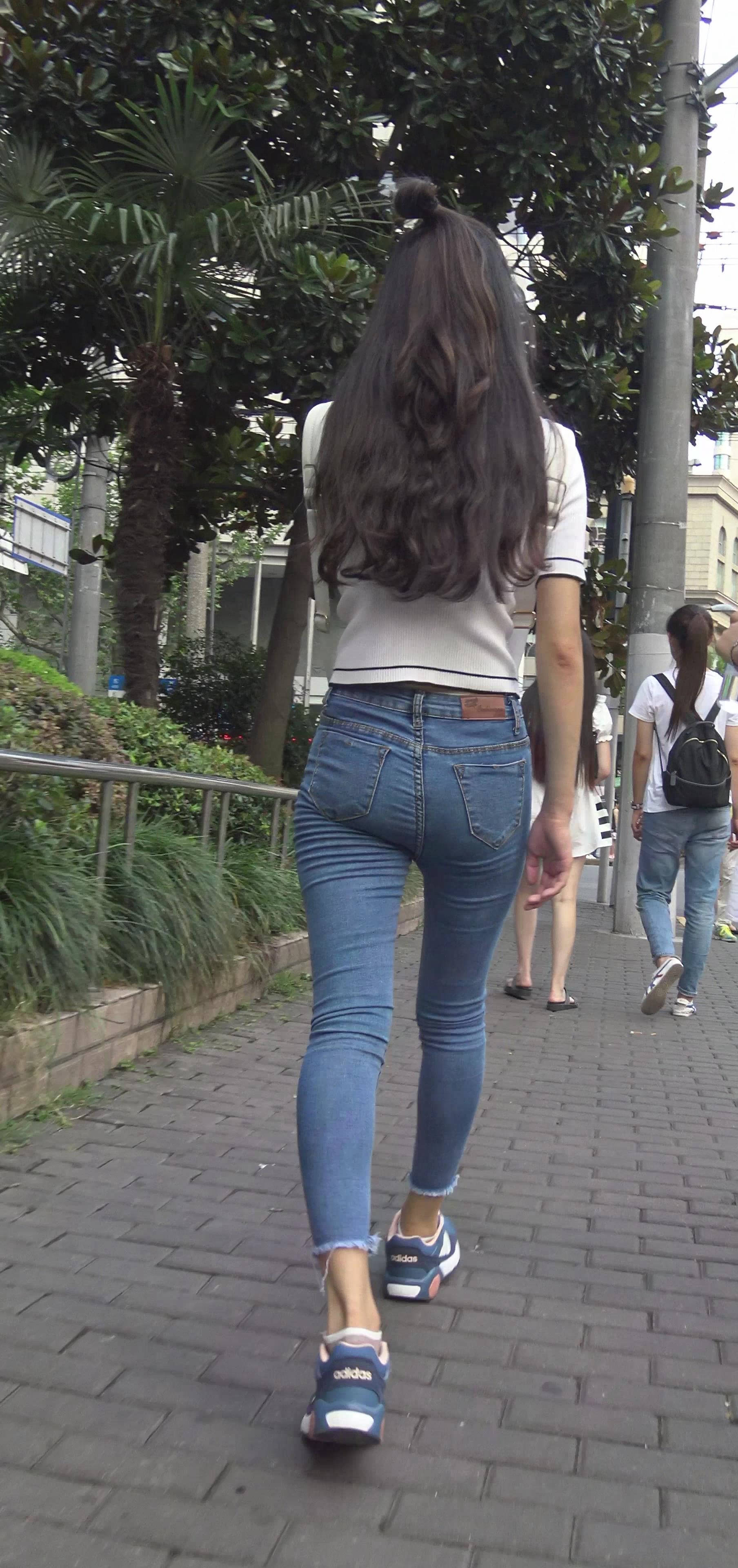 4k-街拍紧身蓝牛美腿清秀美女 编号7928
