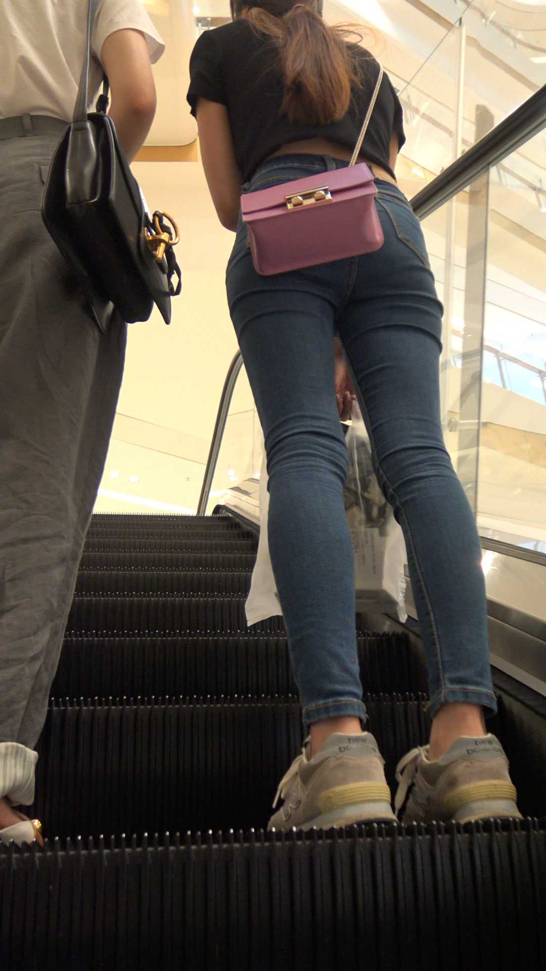C46商场紧身蓝牛小姐姐包太可恶
