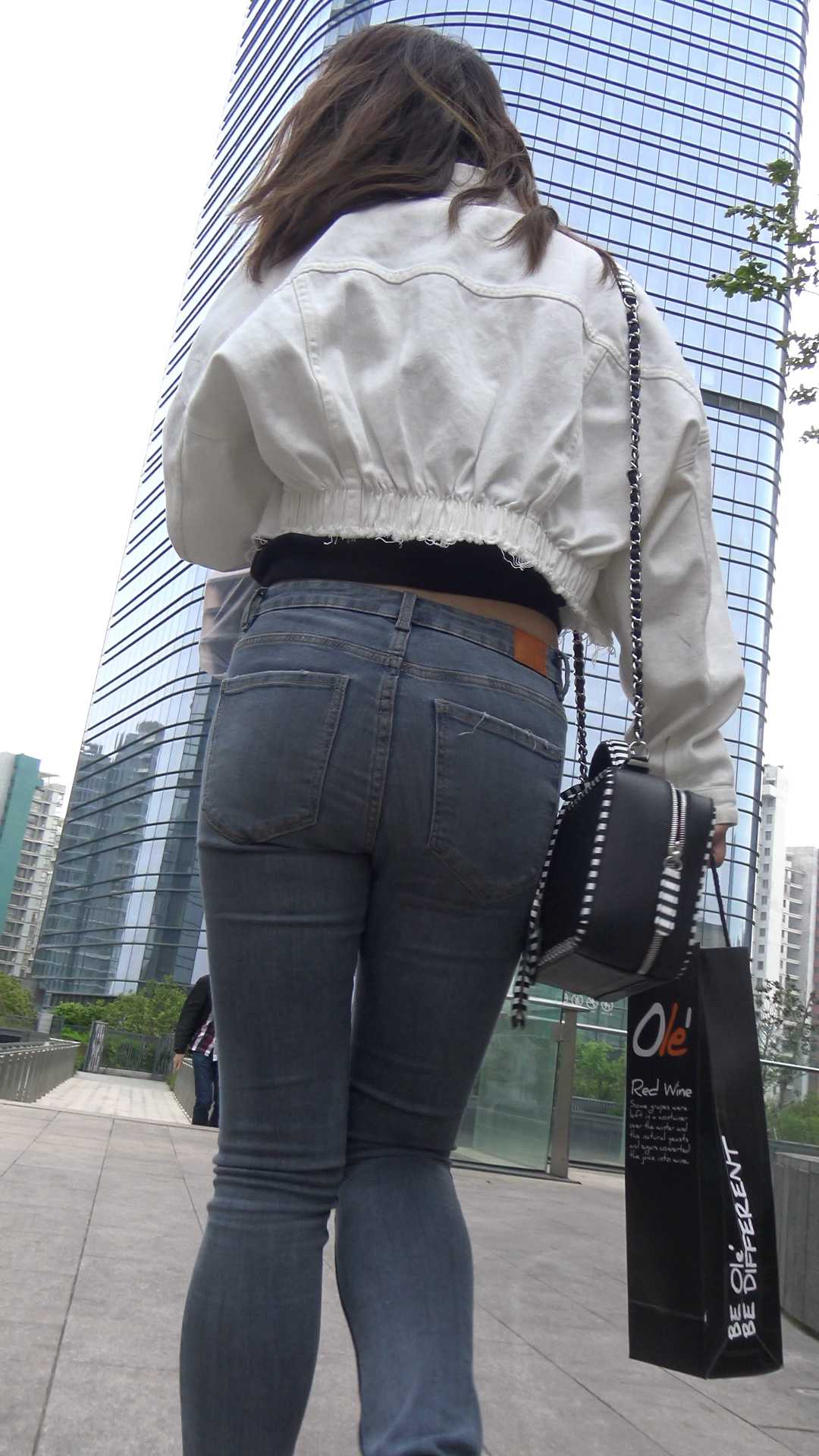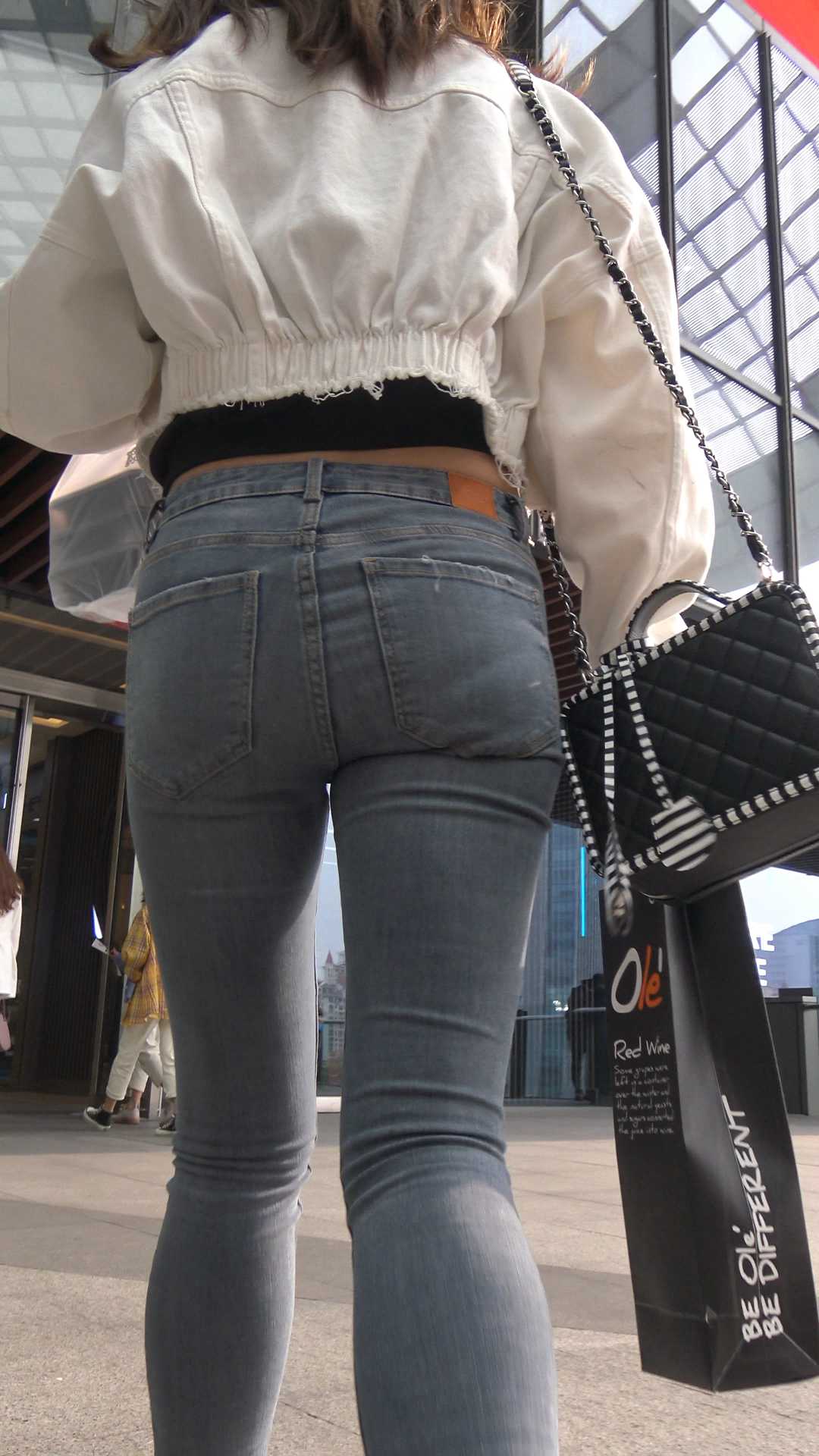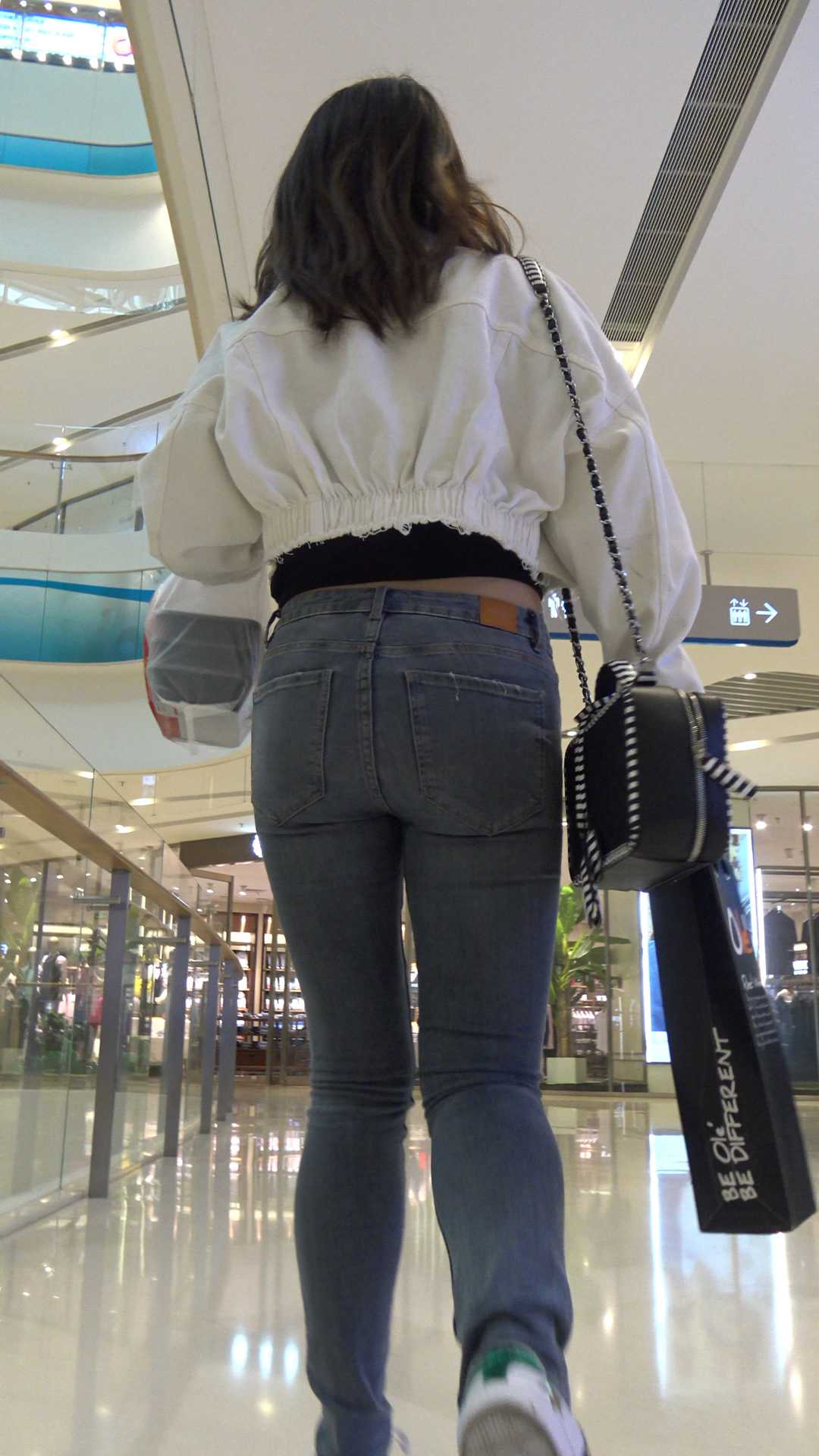 C60商场超紧灰牛仔少女