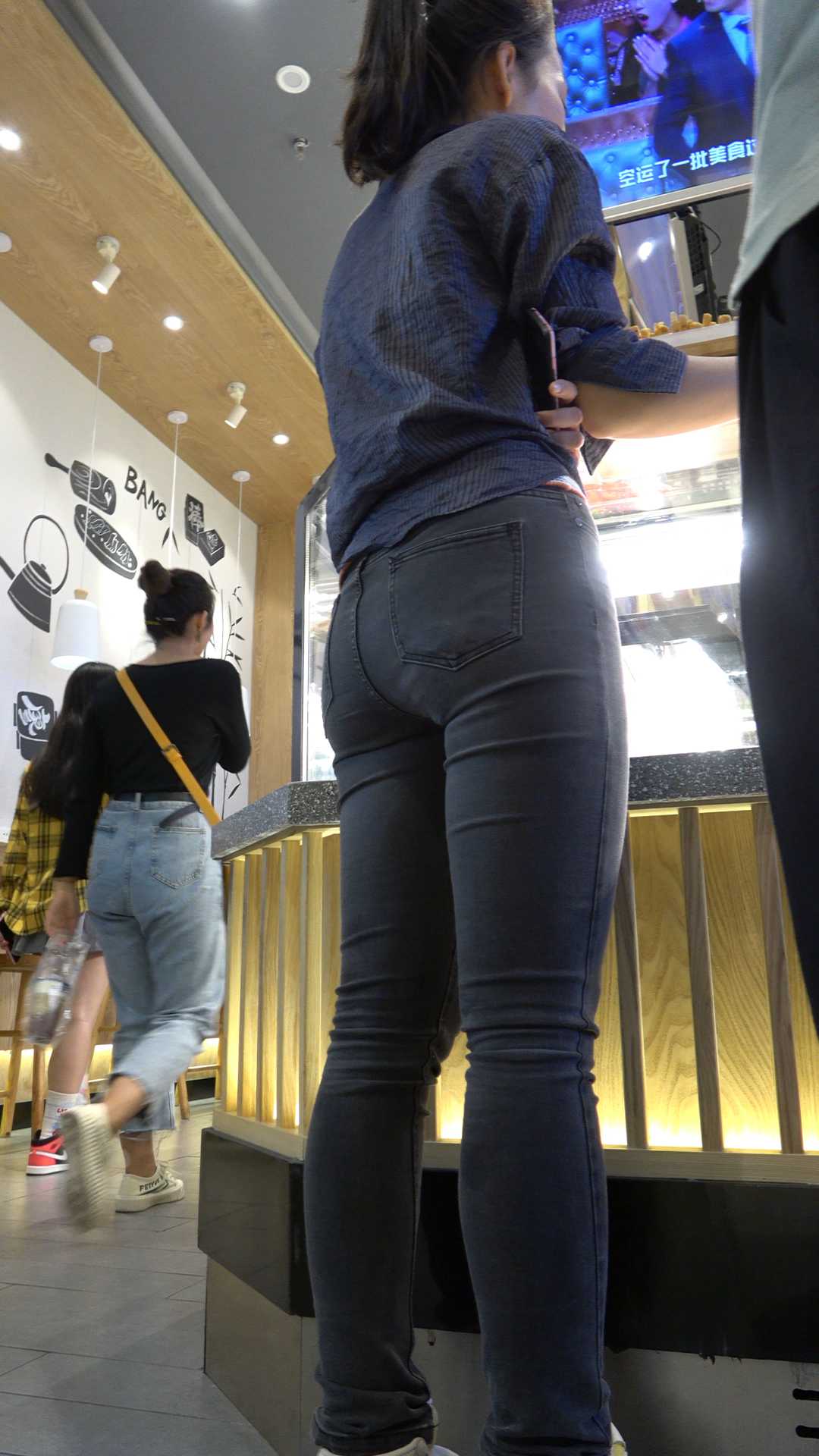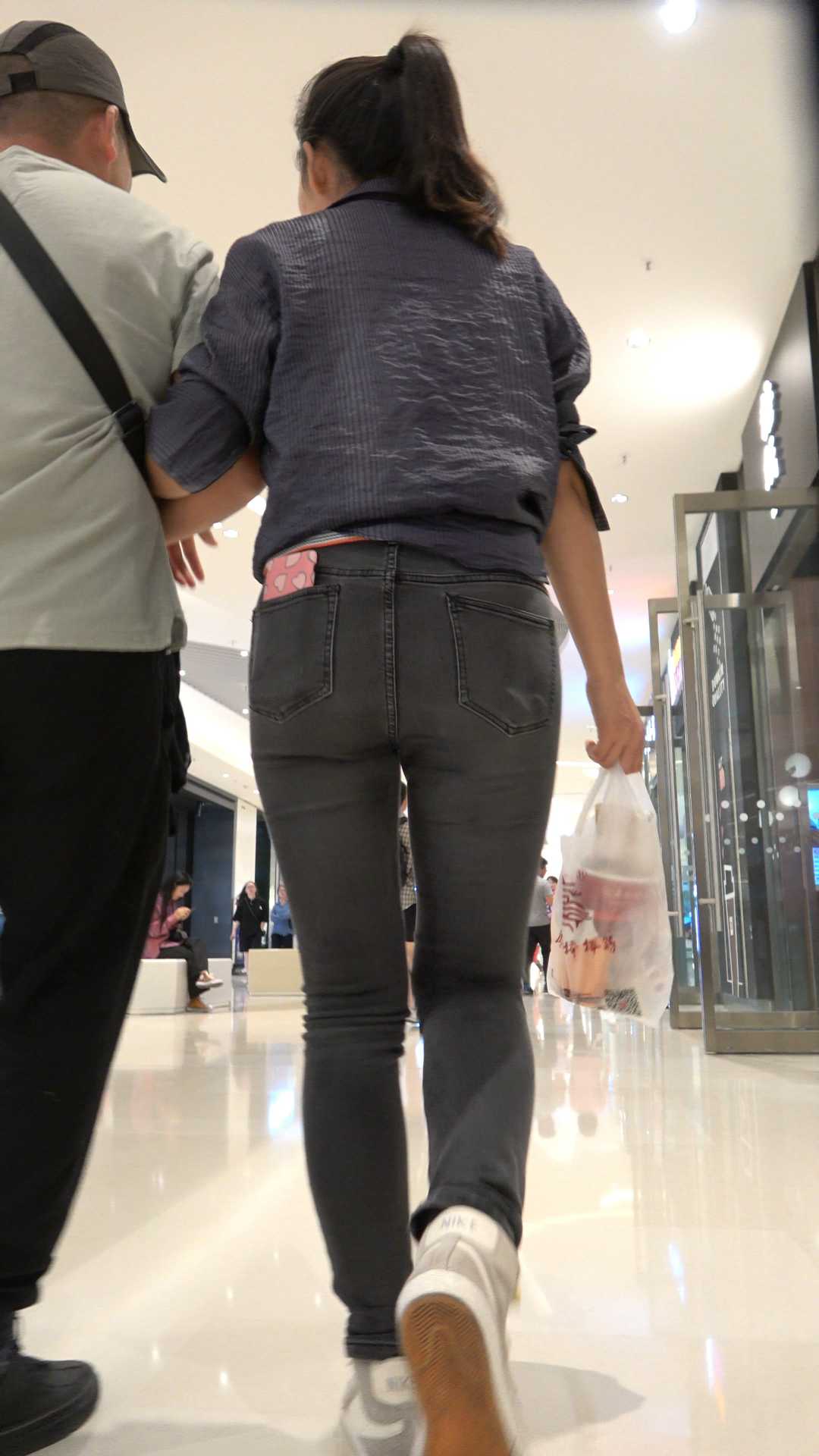 C62商场超紧灰牛仔美臀少妇