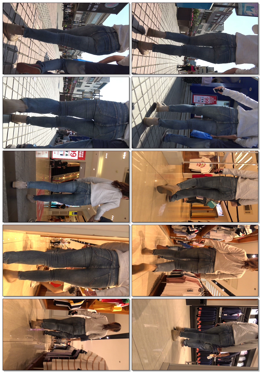 C223紧身灰牛仔宽臀少妇