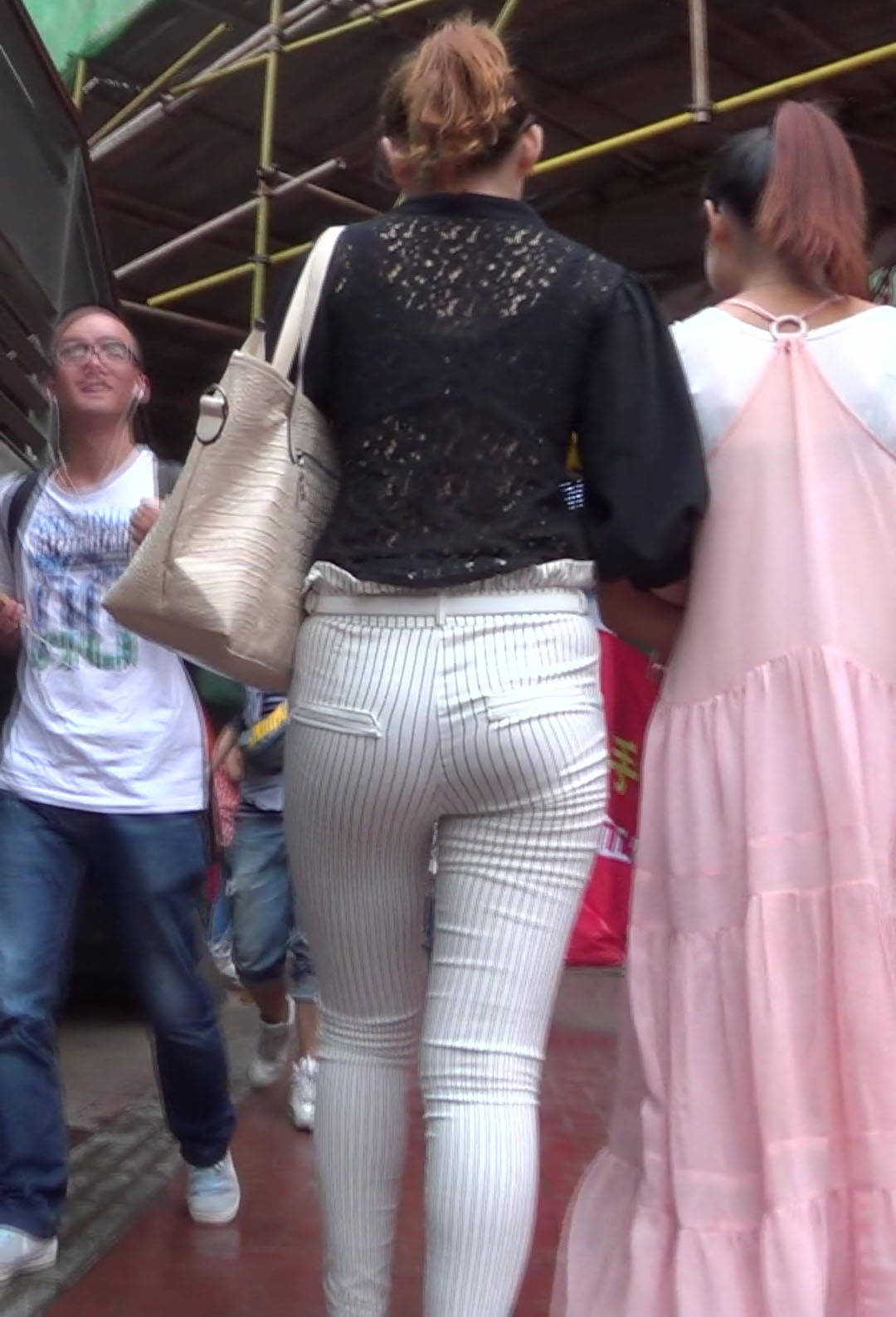 街拍精品:眉目如画的裹臀裙牛仔热裤高跟鞋美女 编号1273