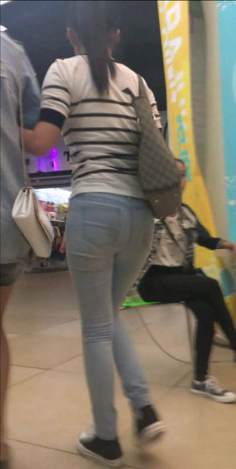 街拍精品:剪水双瞳的包臀裙紧身牛仔裤美腿女孩 编号1016