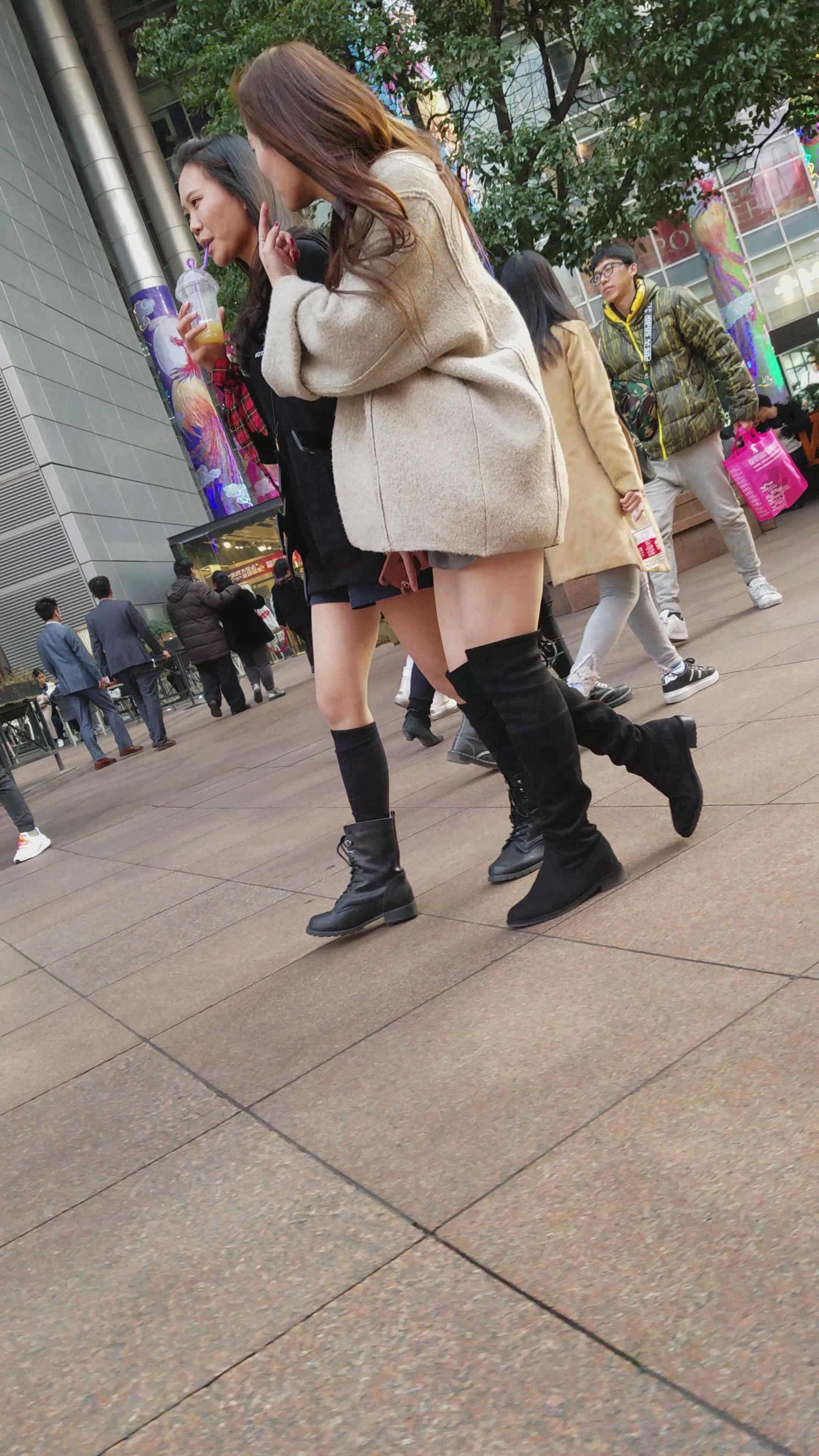 4k-街拍长筒靴肉色丝袜美颜俩姐妹花 编号3299