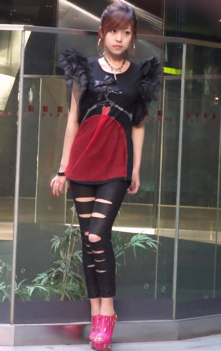 街头新潮流:巧笑倩兮的裹臀裙紧身裤高跟鞋mm 编号1088