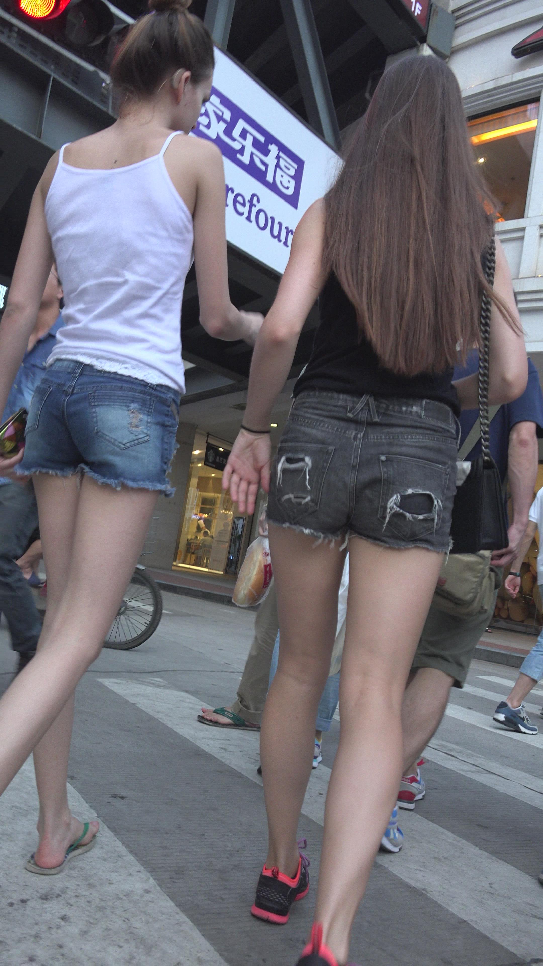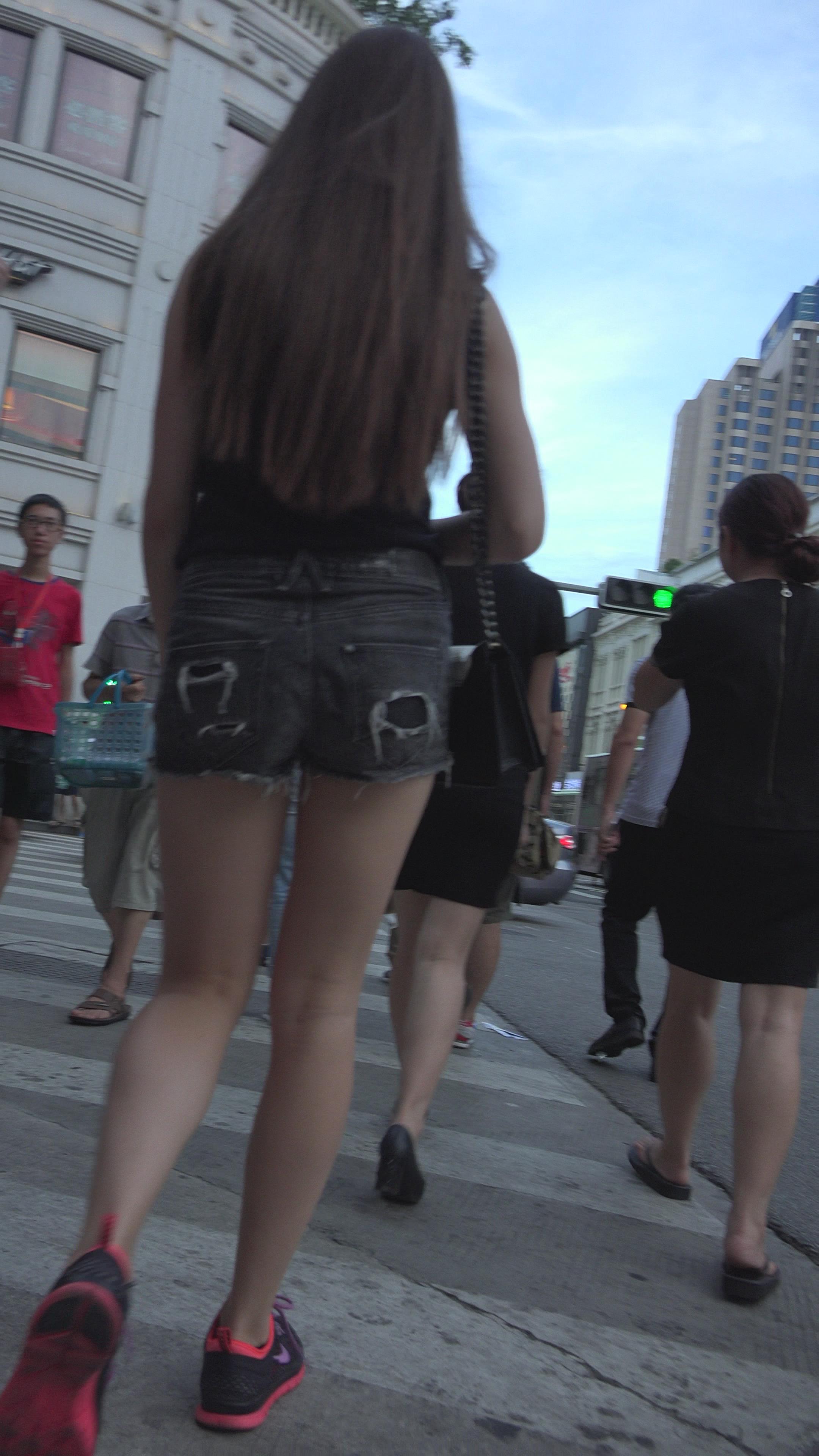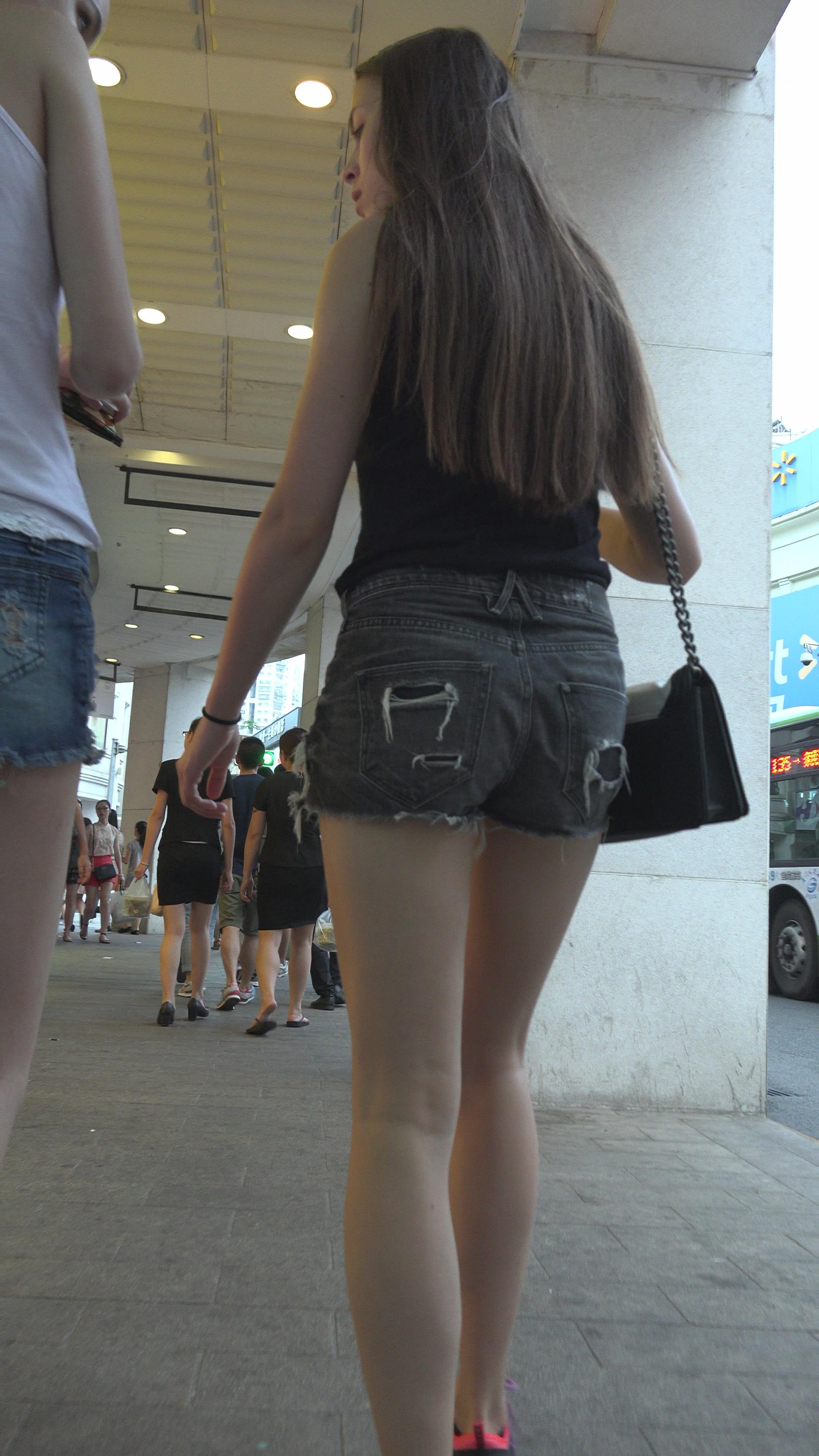 4k-街拍高腰牛仔热裤美腿高挑美女 编号3305