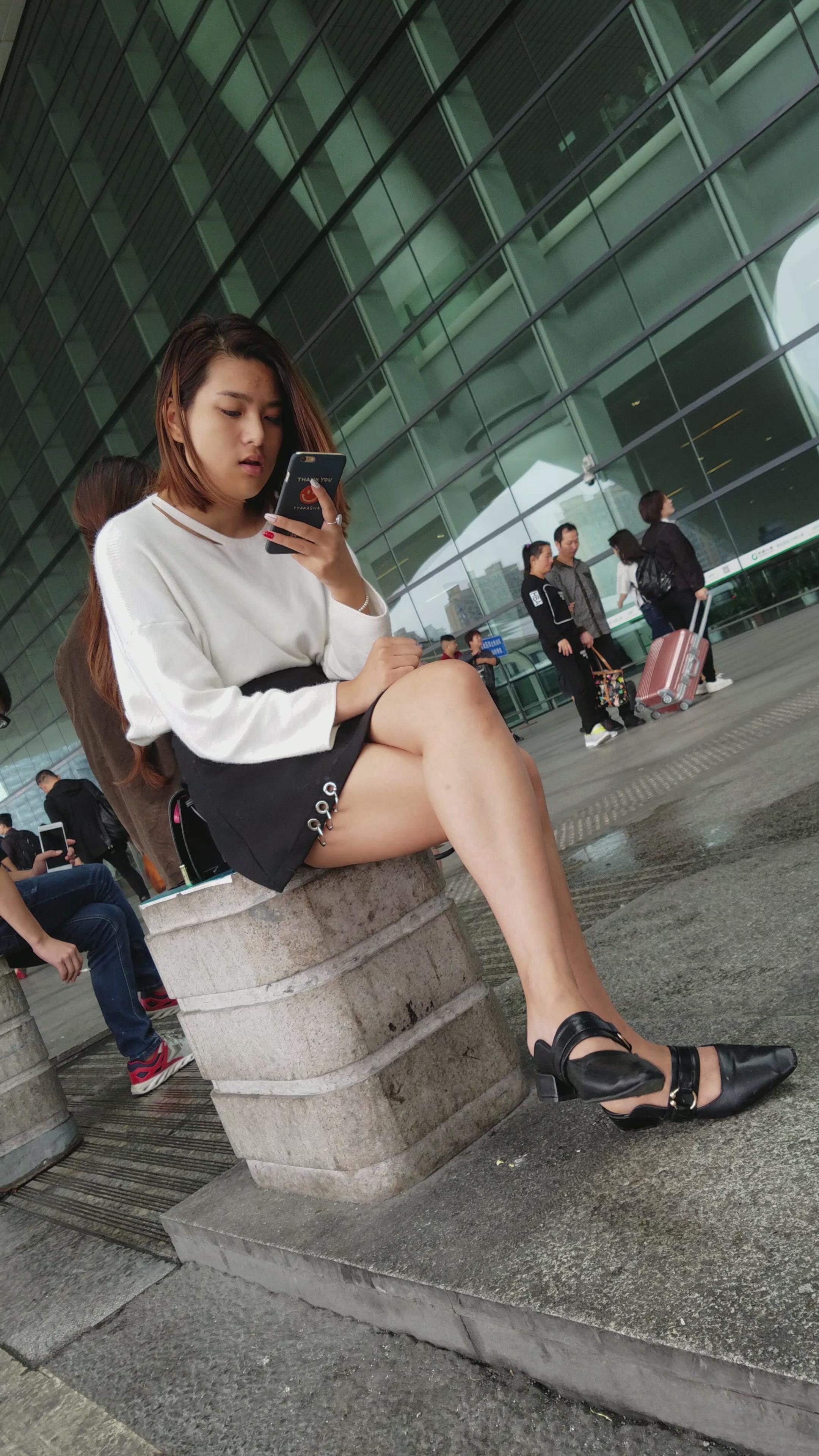 4k-坐在石墩上玩手机的美腿短裙美女姐姐 编号3312
