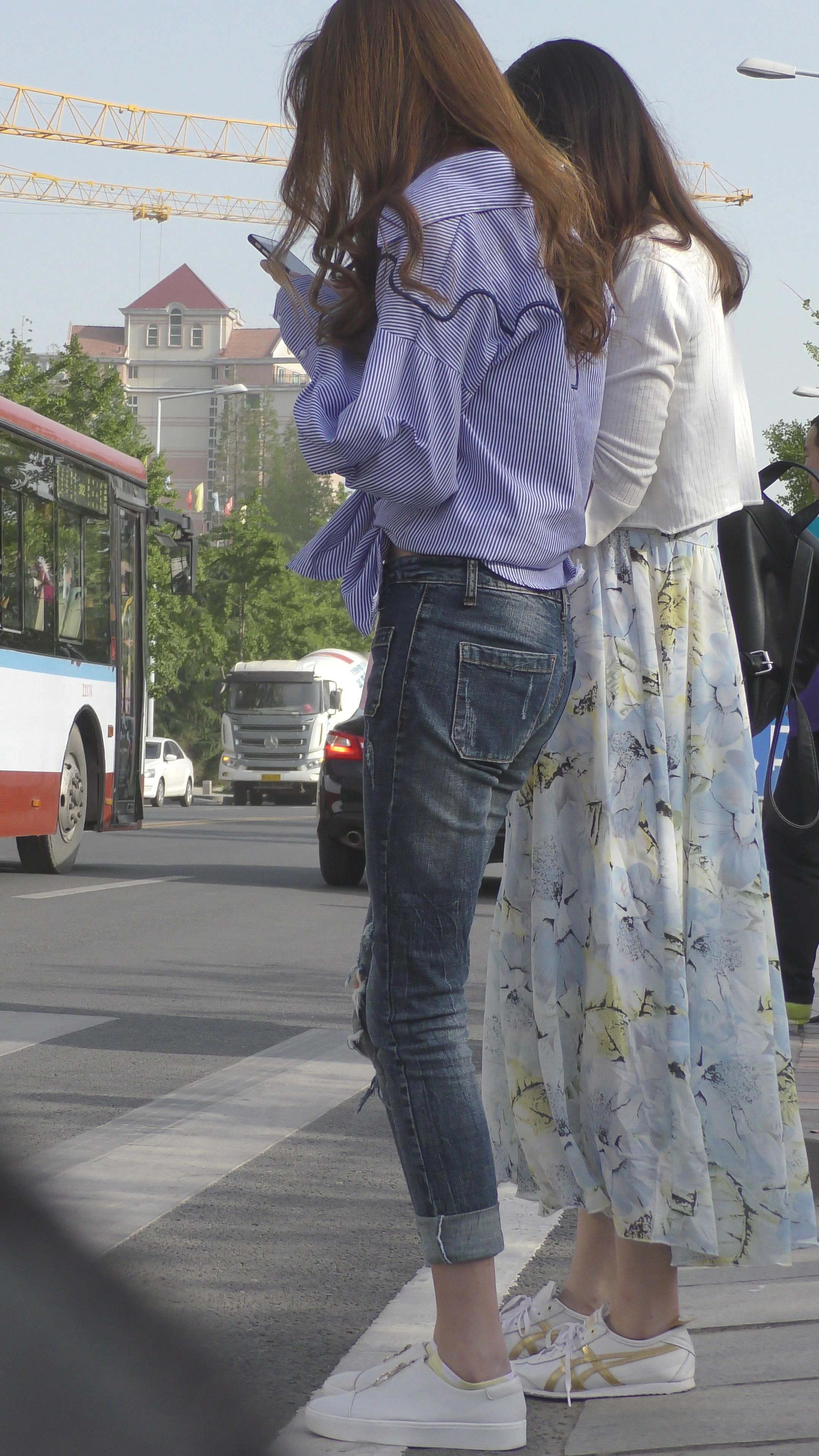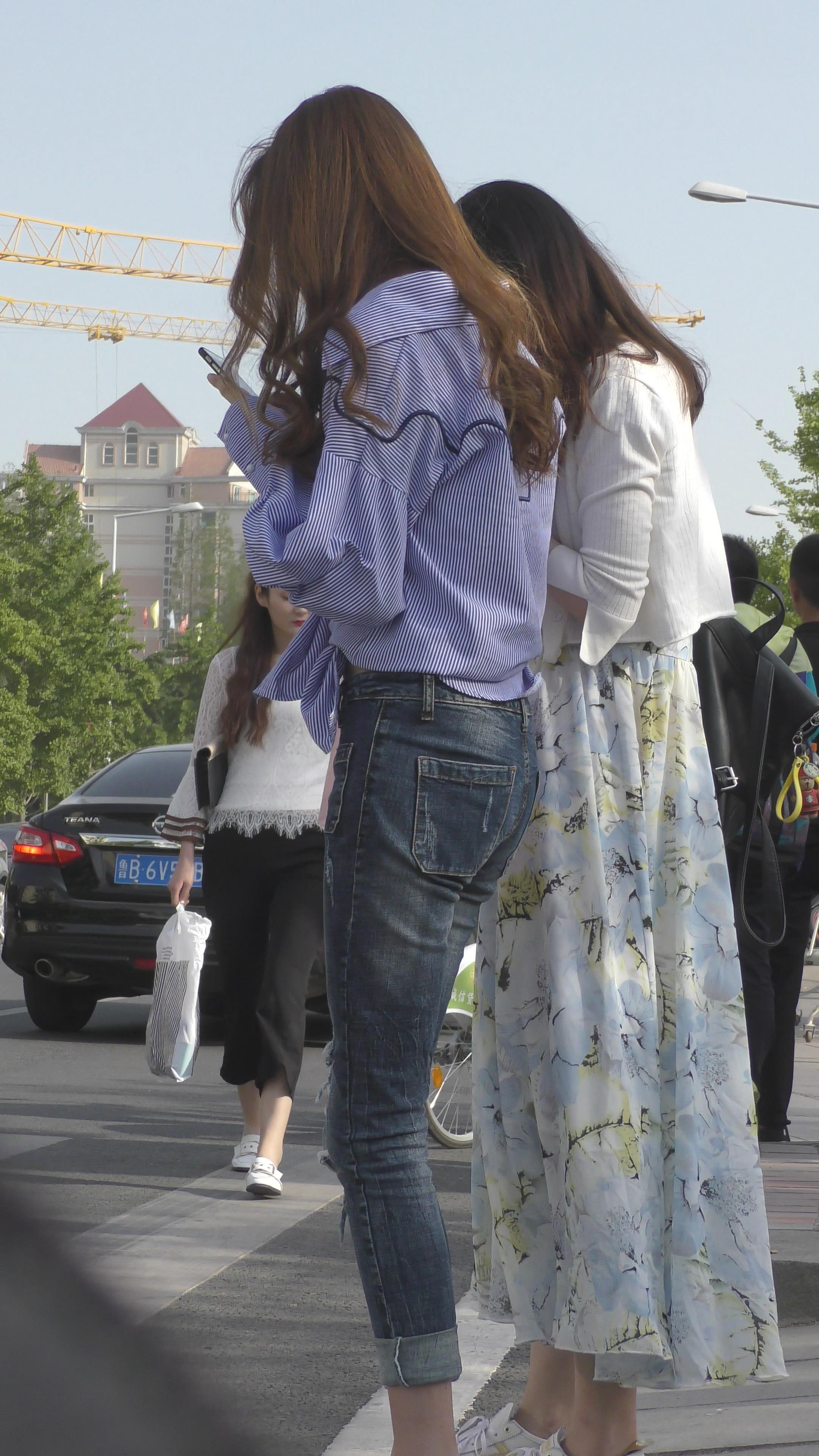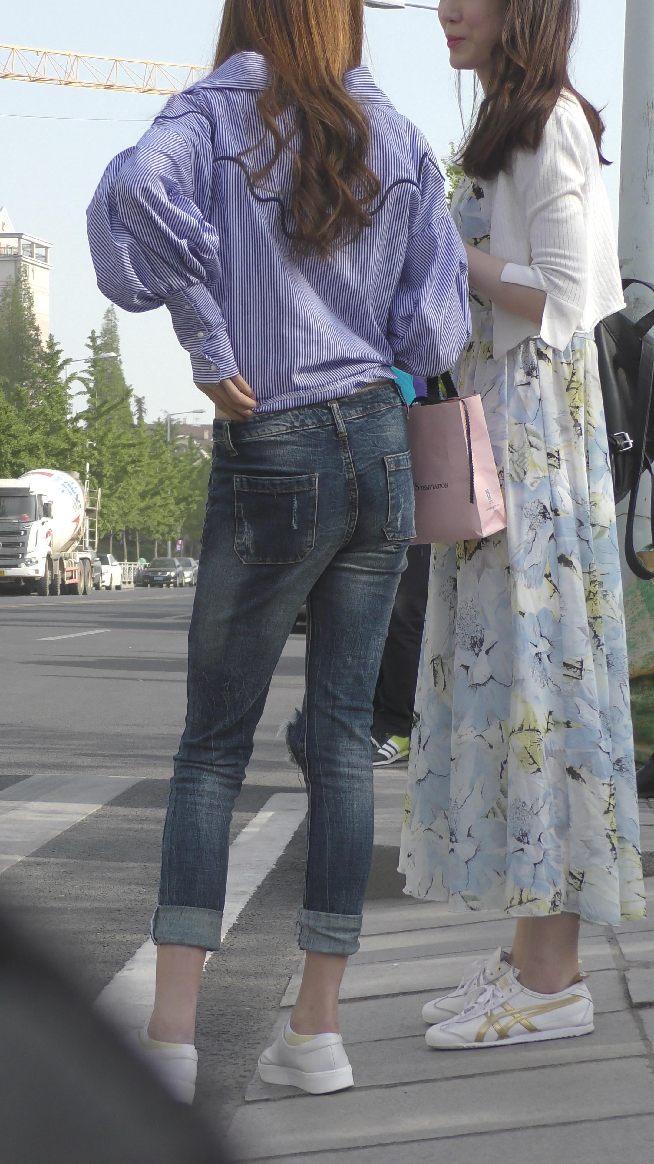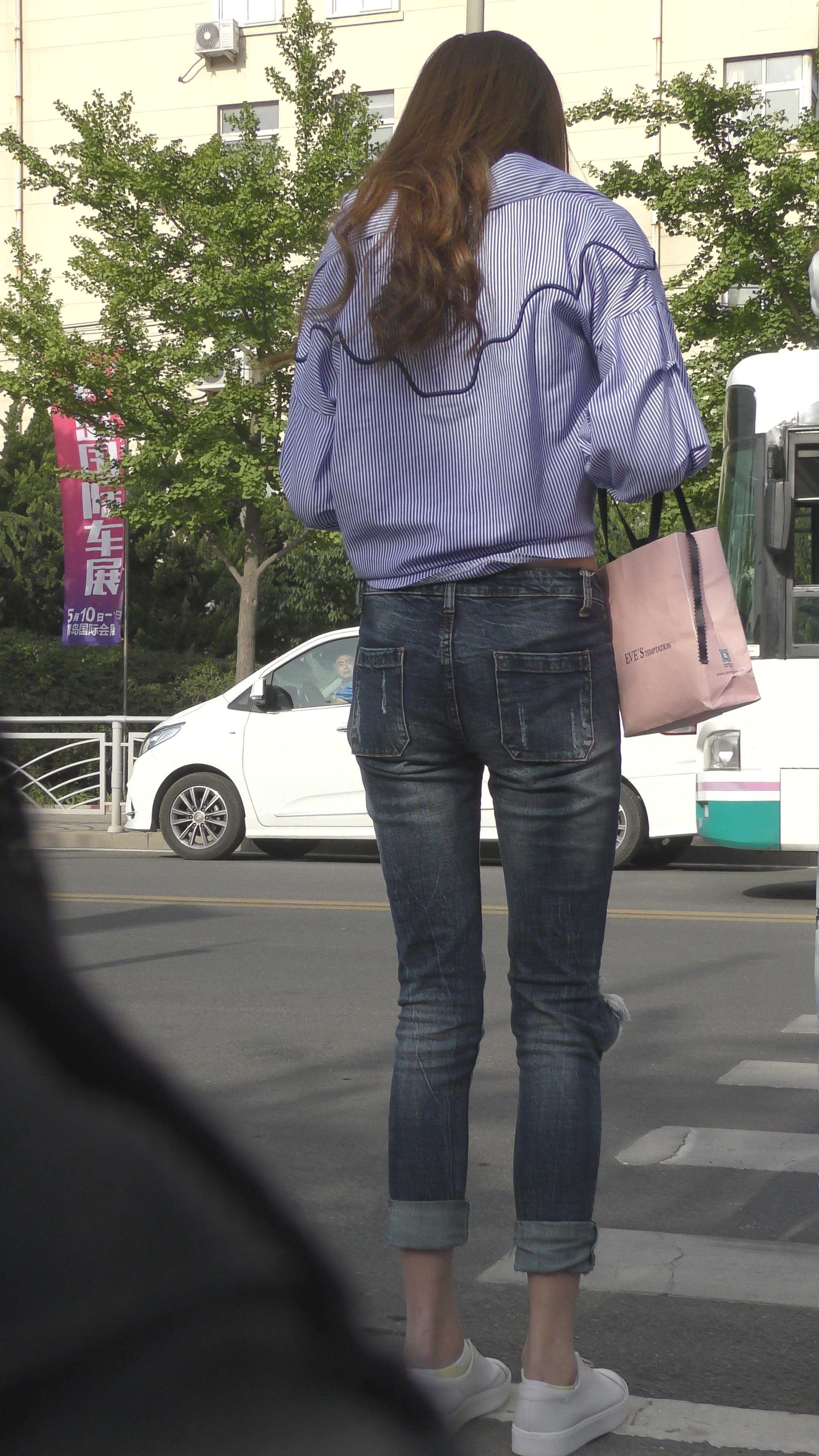 4K 非常不错的蓝色衬衫牛仔裤大美女 编号3324