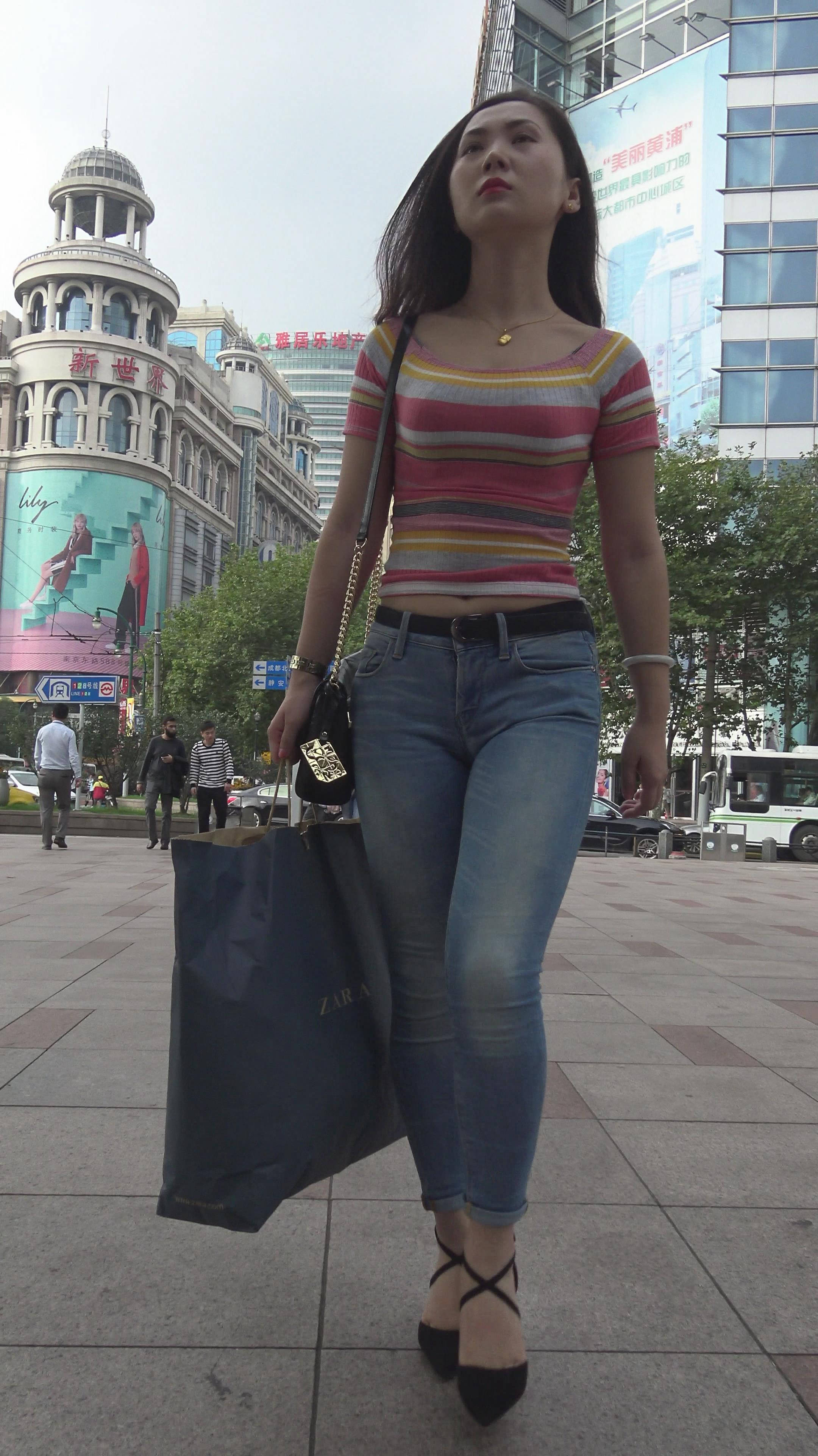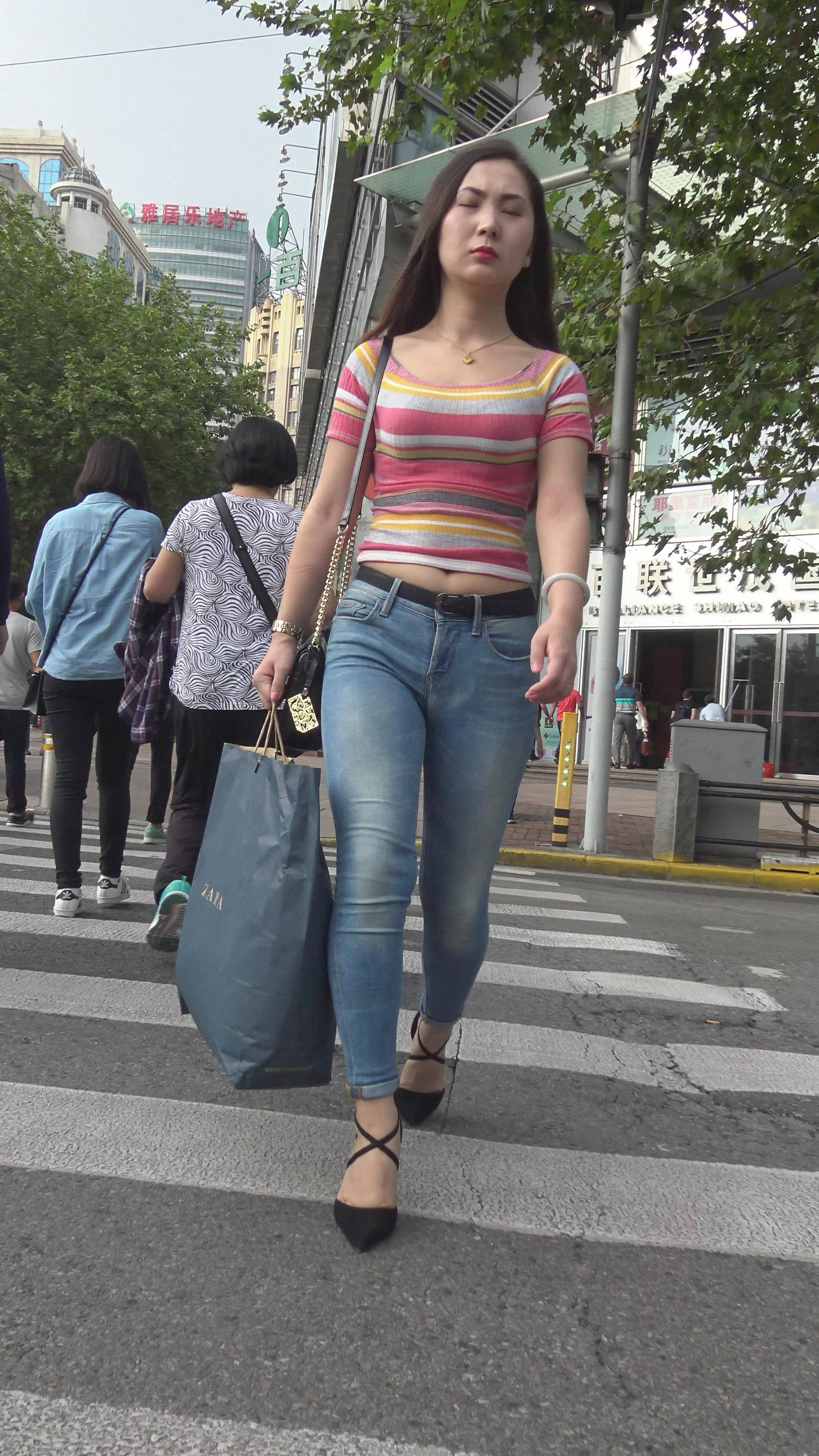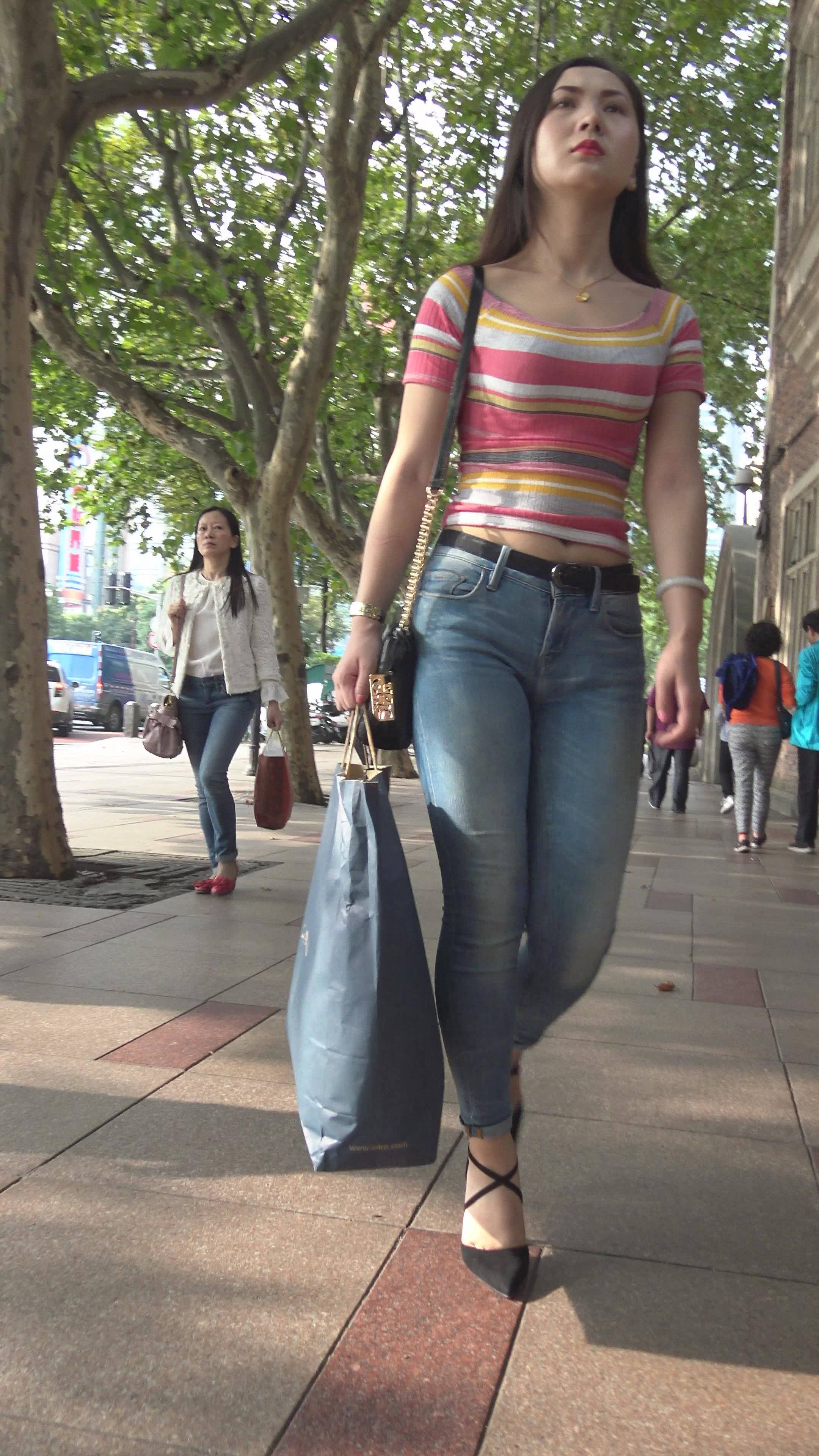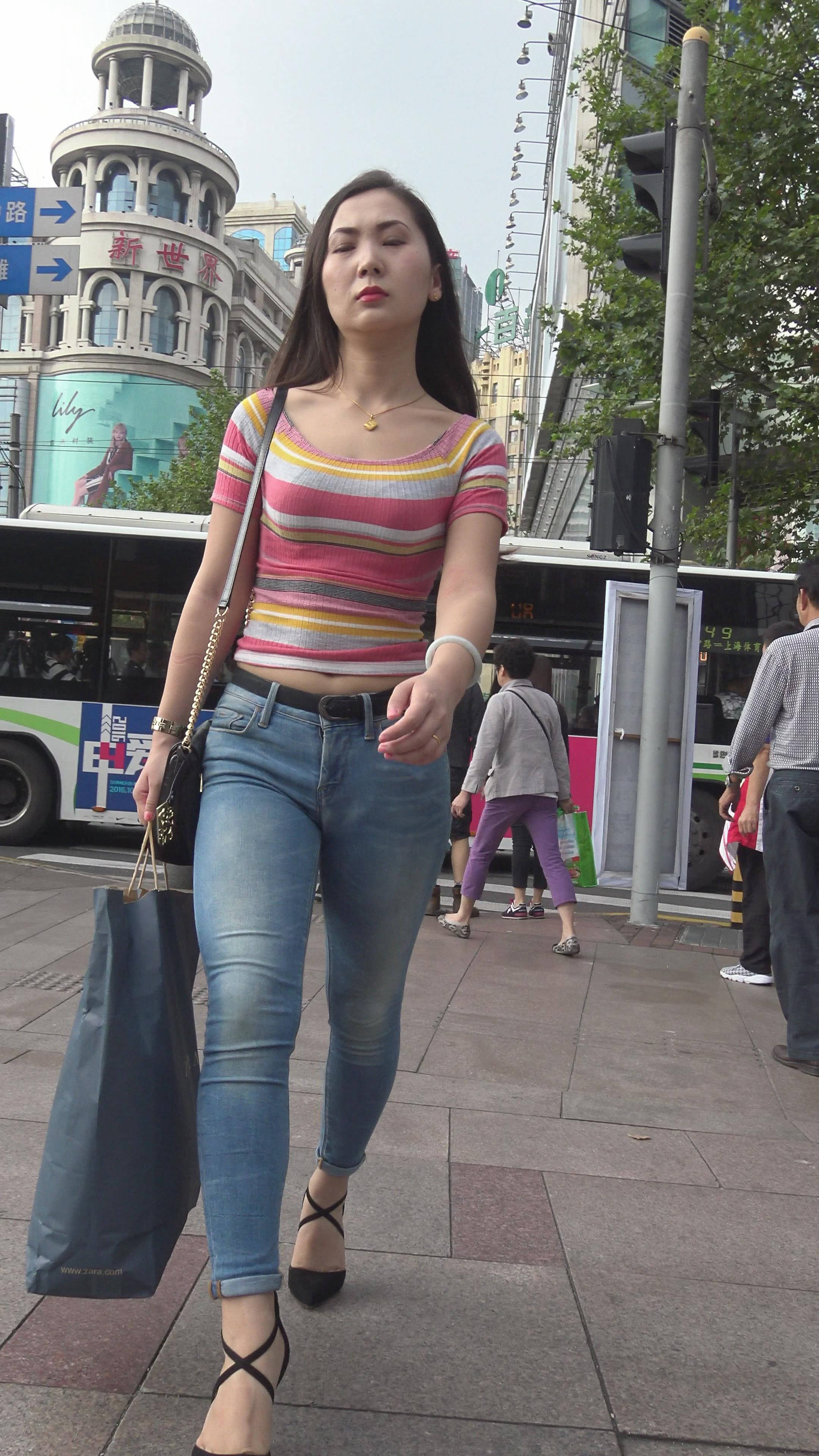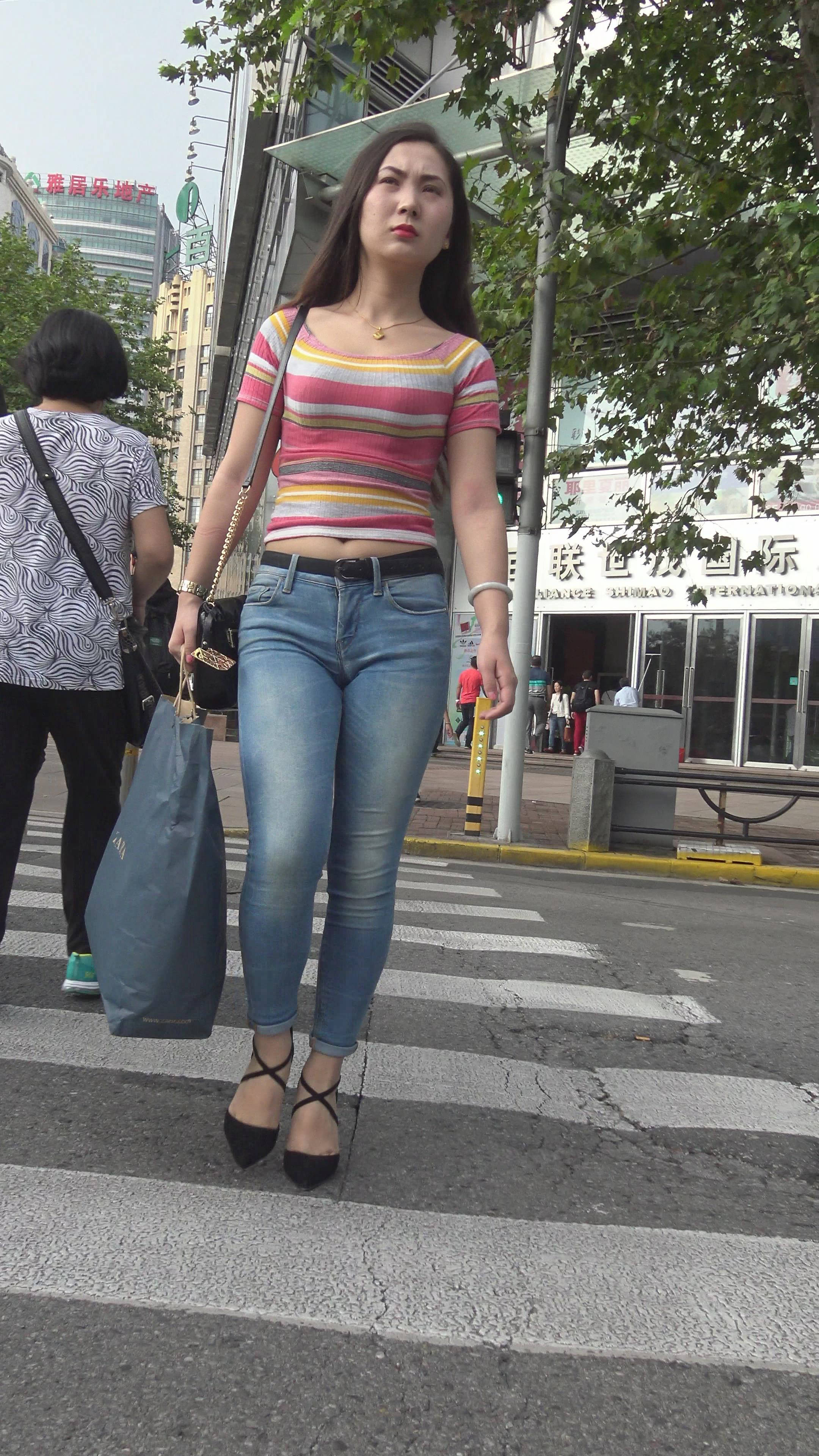 4K 漂亮街拍紧身牛仔美女 1 编号7329