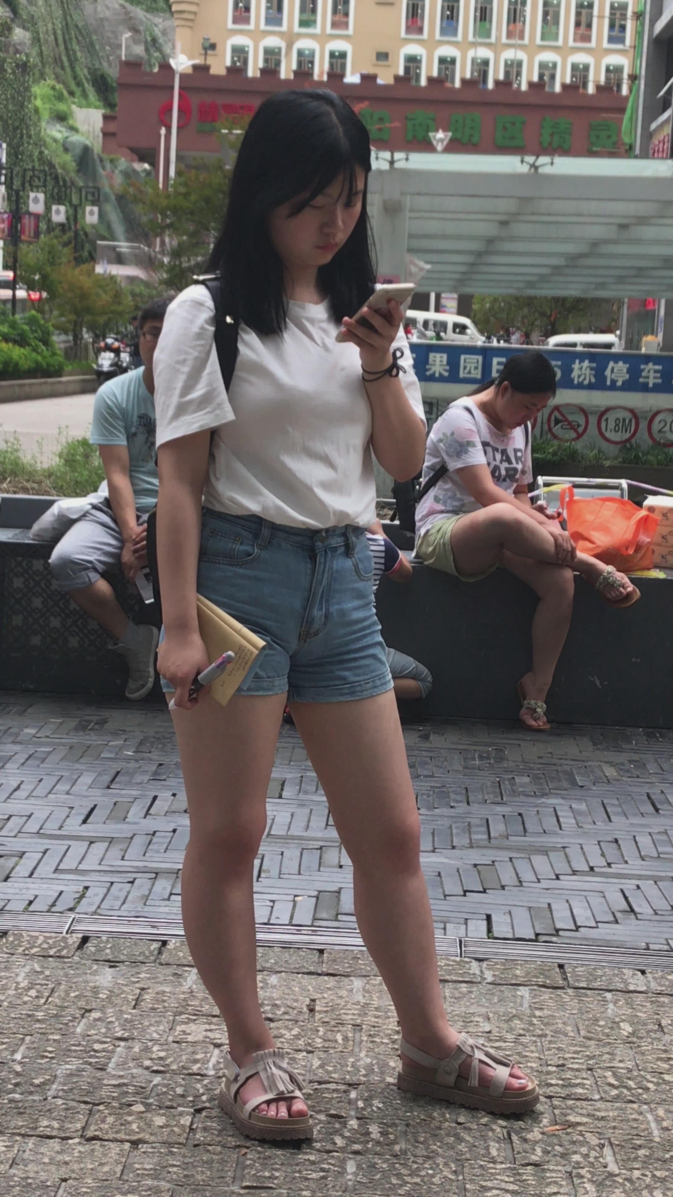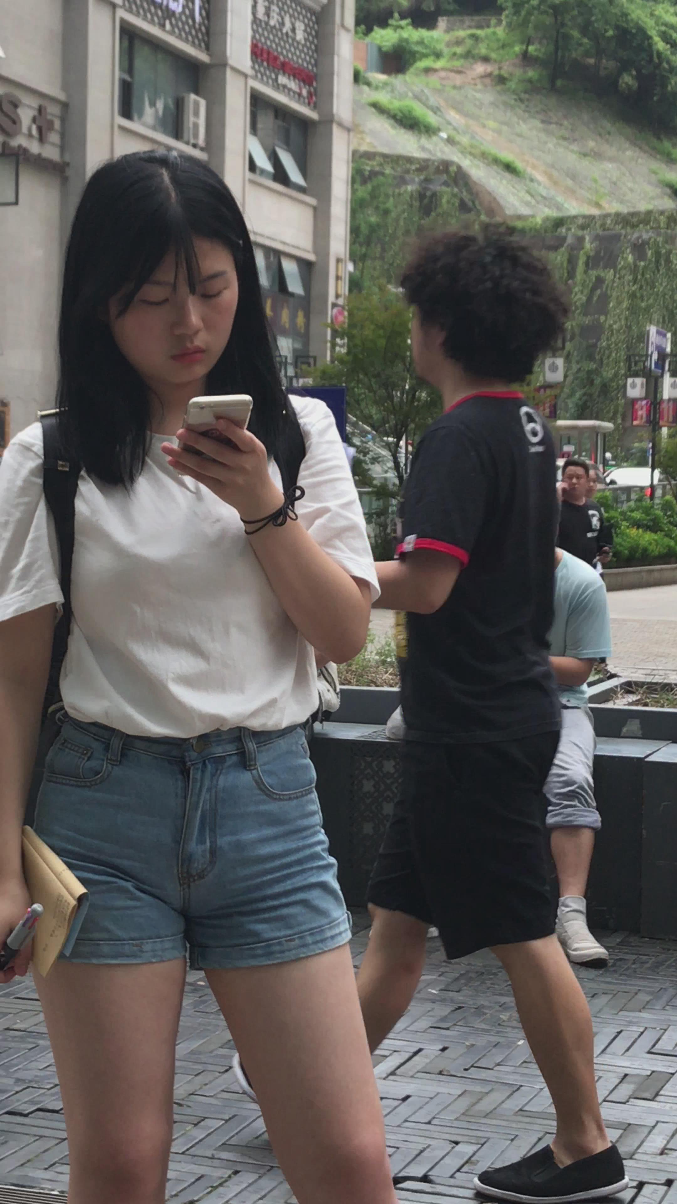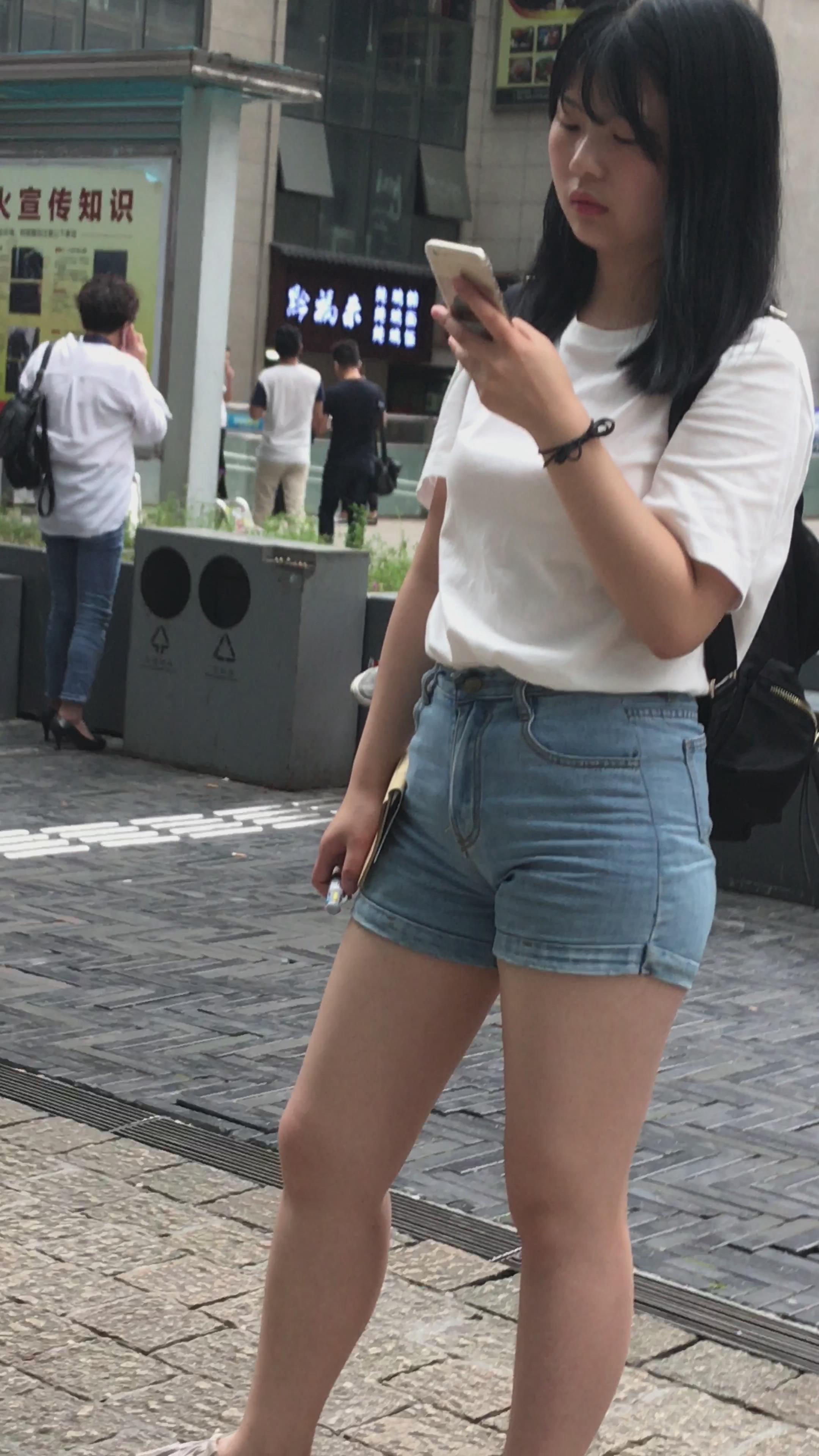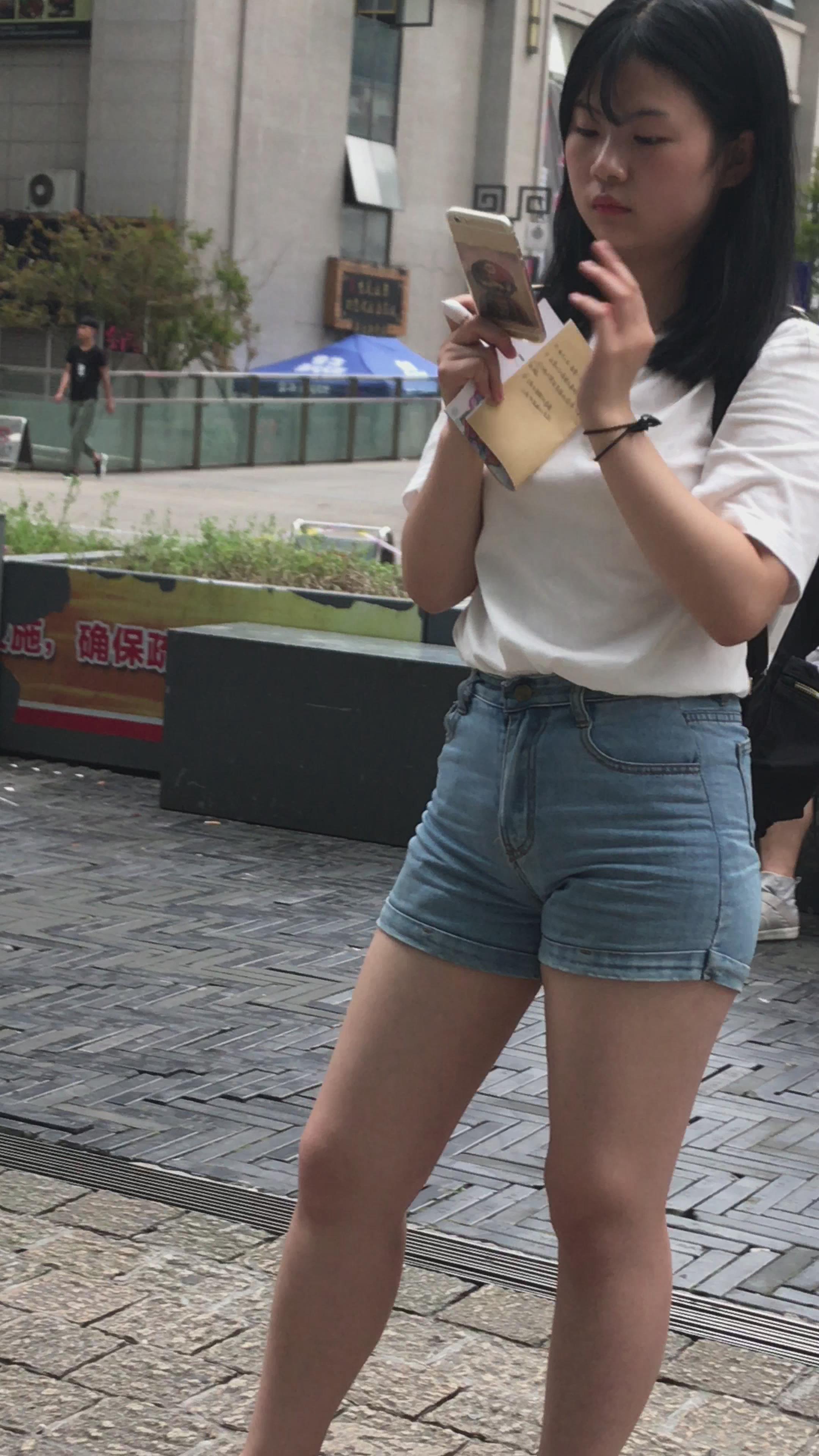4K 高腰牛仔热裤饱满三角区街拍美女 编号3334