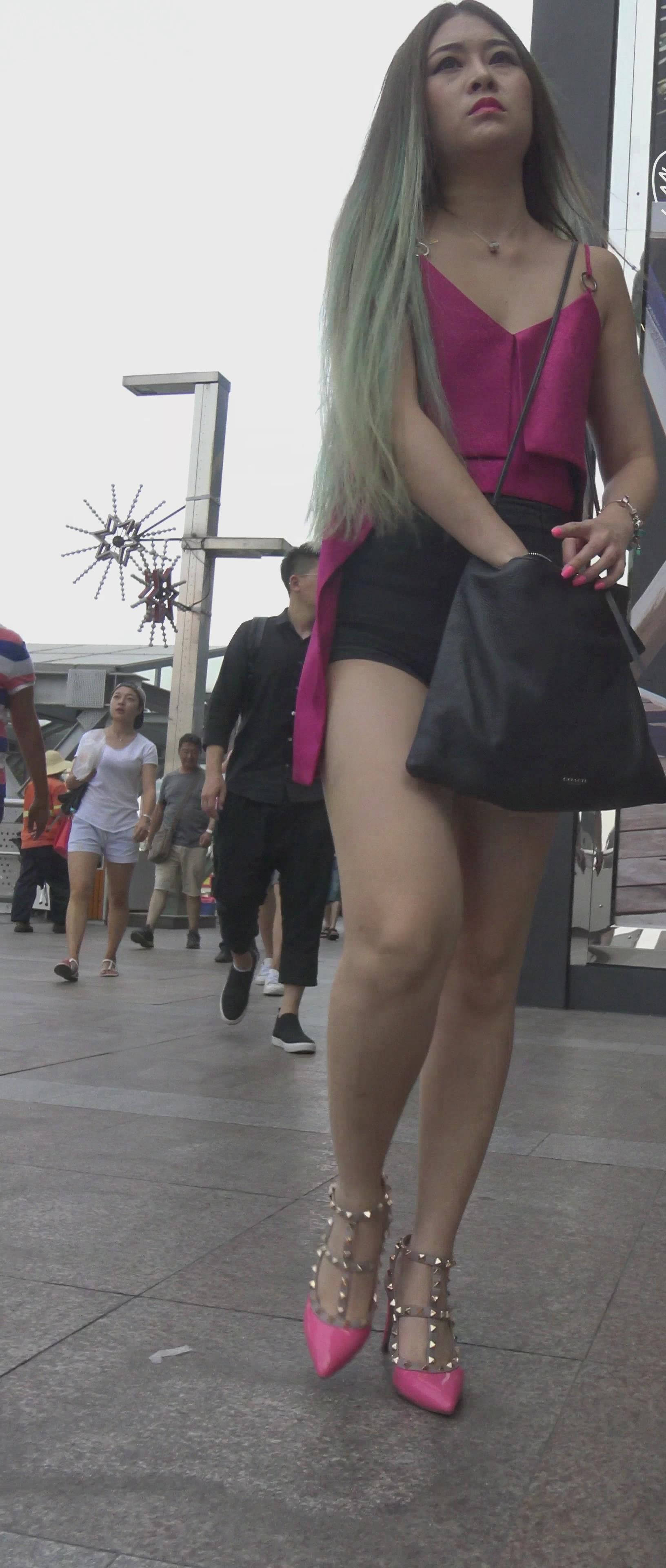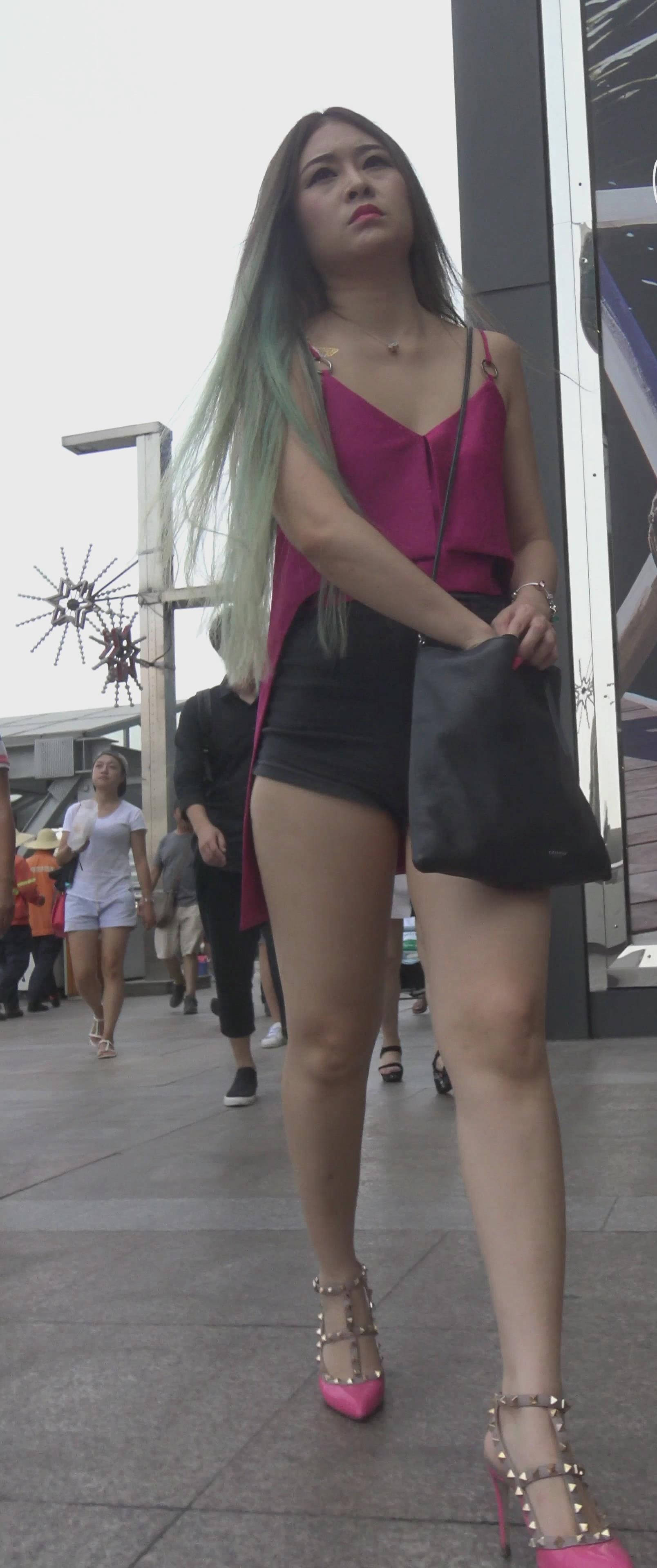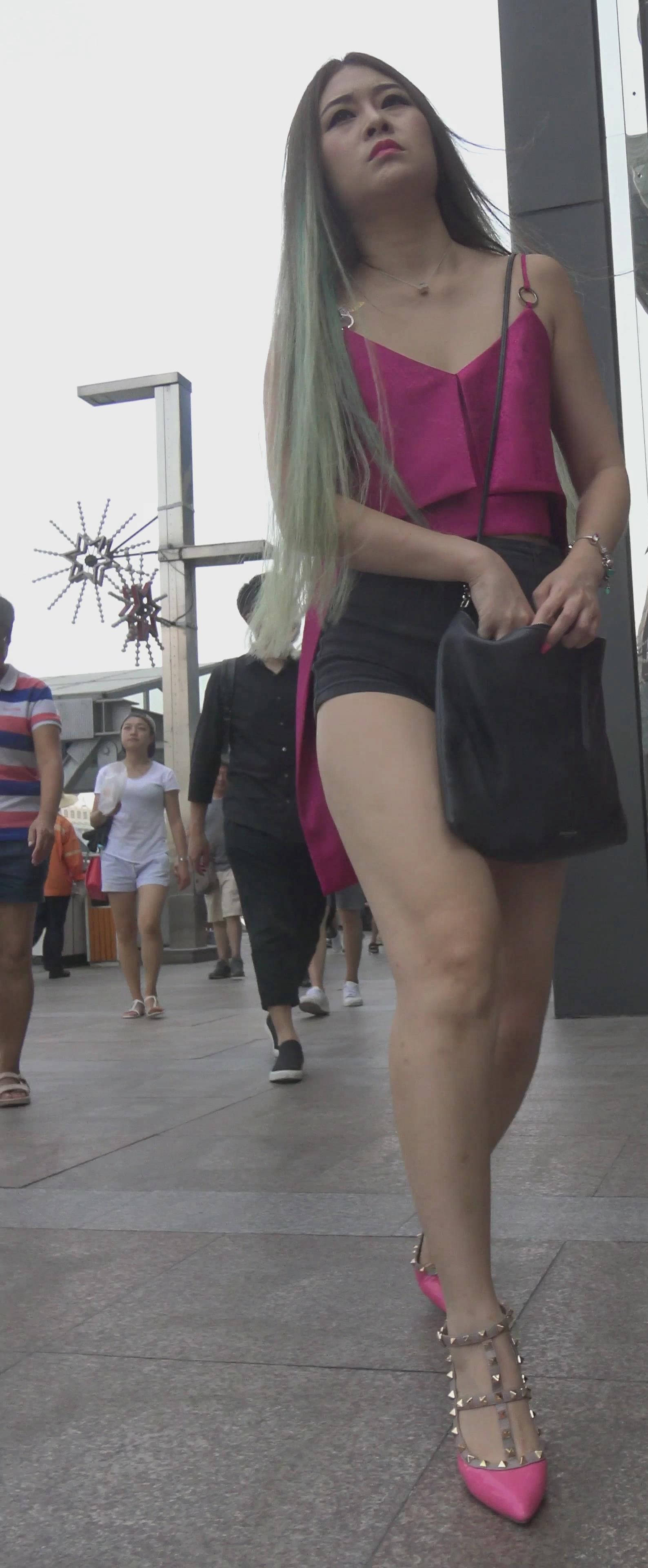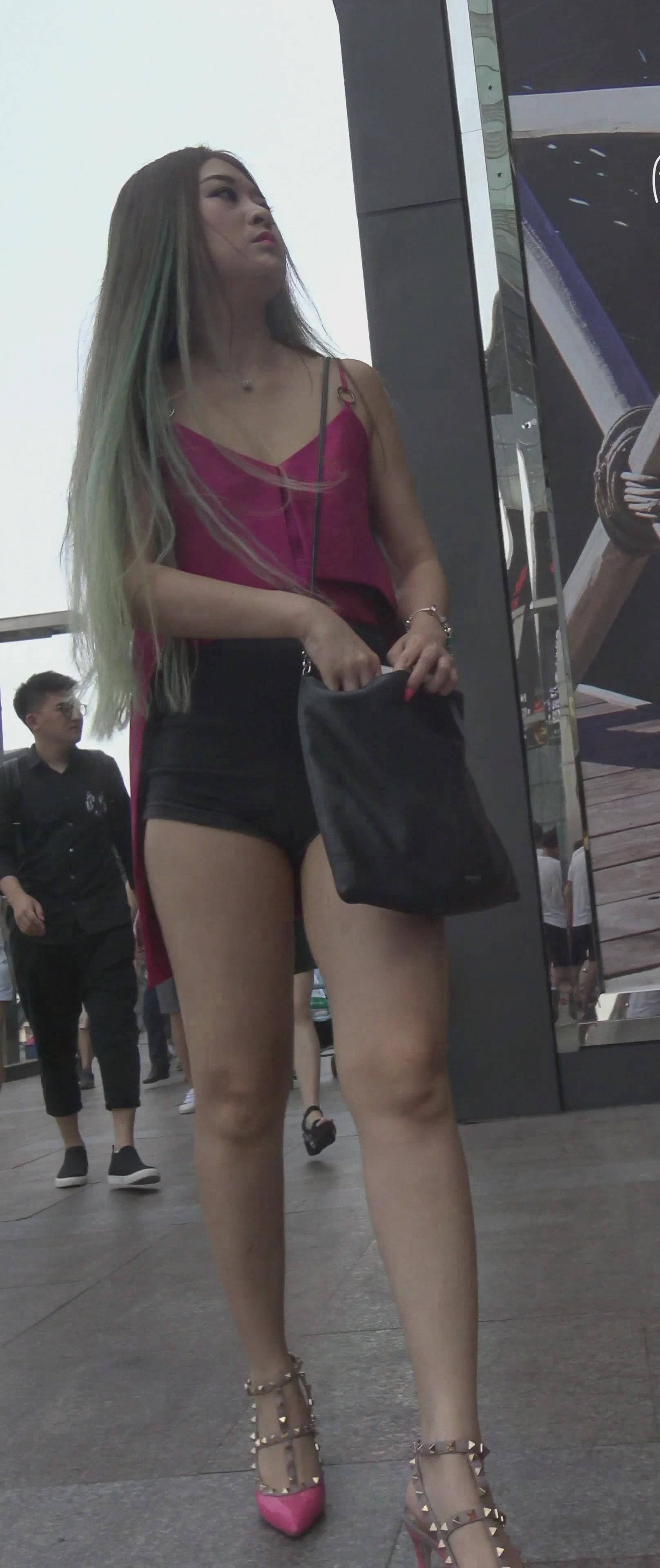 4k-街拍粉色高跟大长腿长发美女姐姐 编号7379