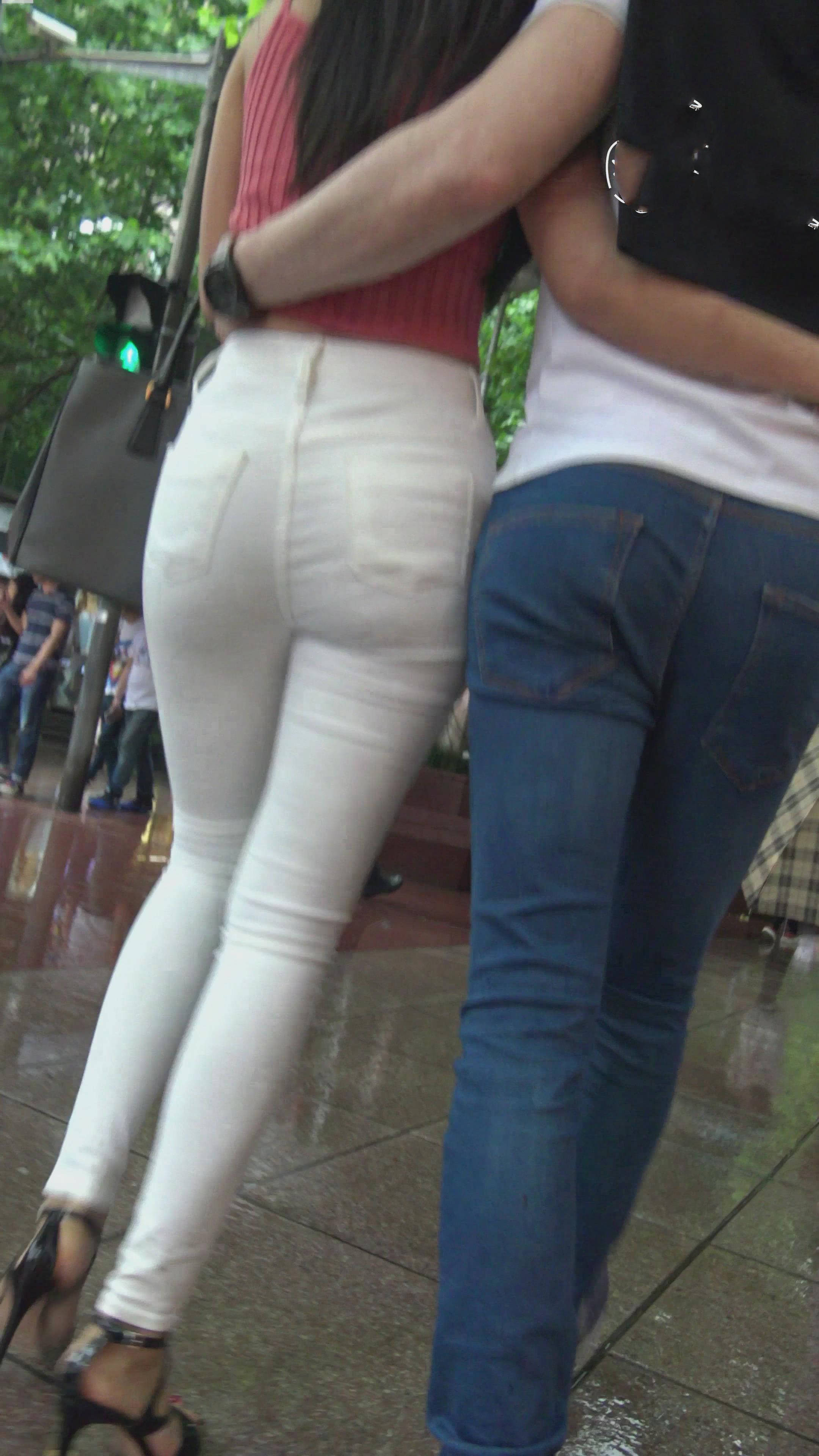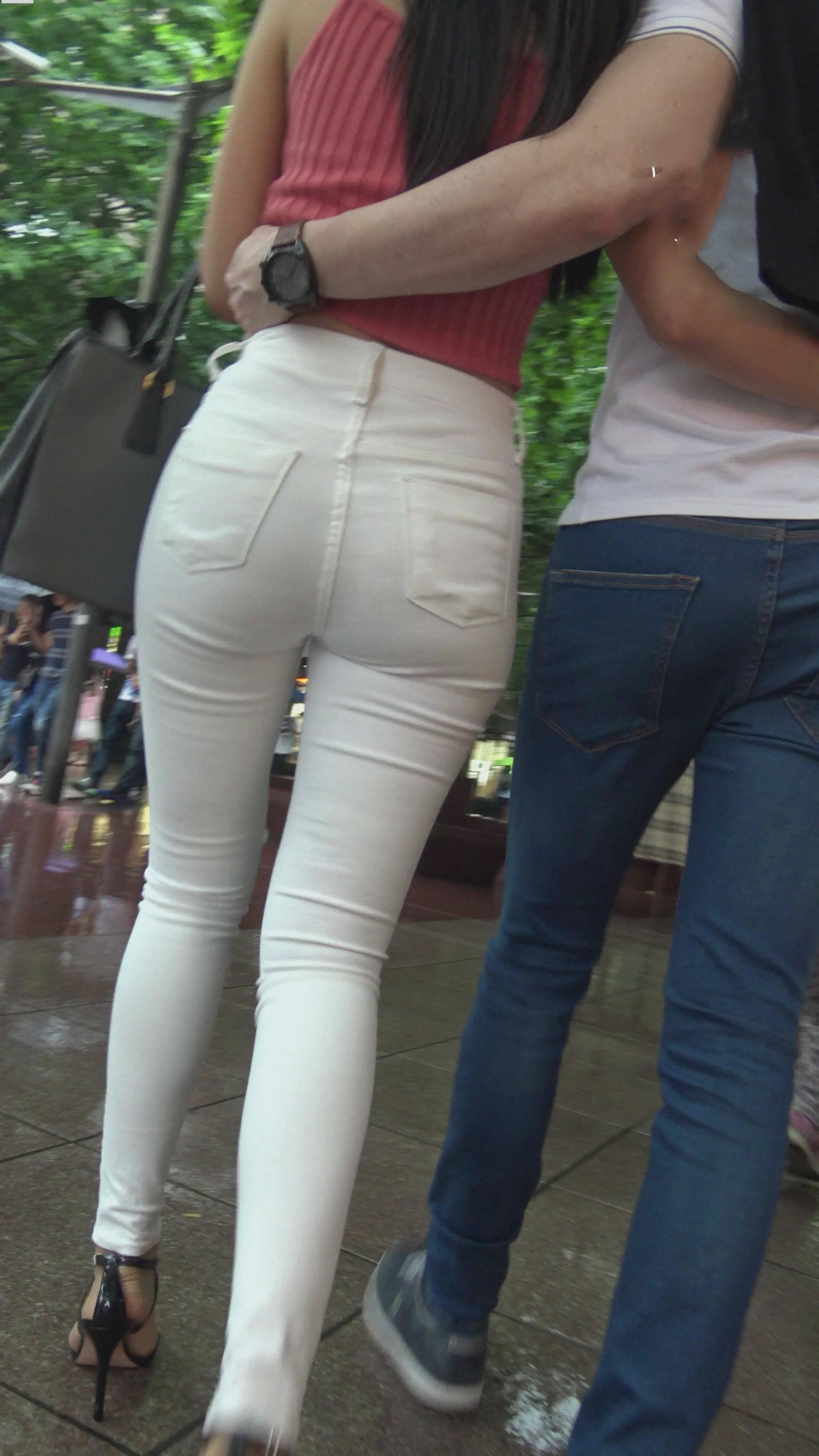 4k-雨天拍摄逛街的紧身白裤美腿老外情侣 编号7415