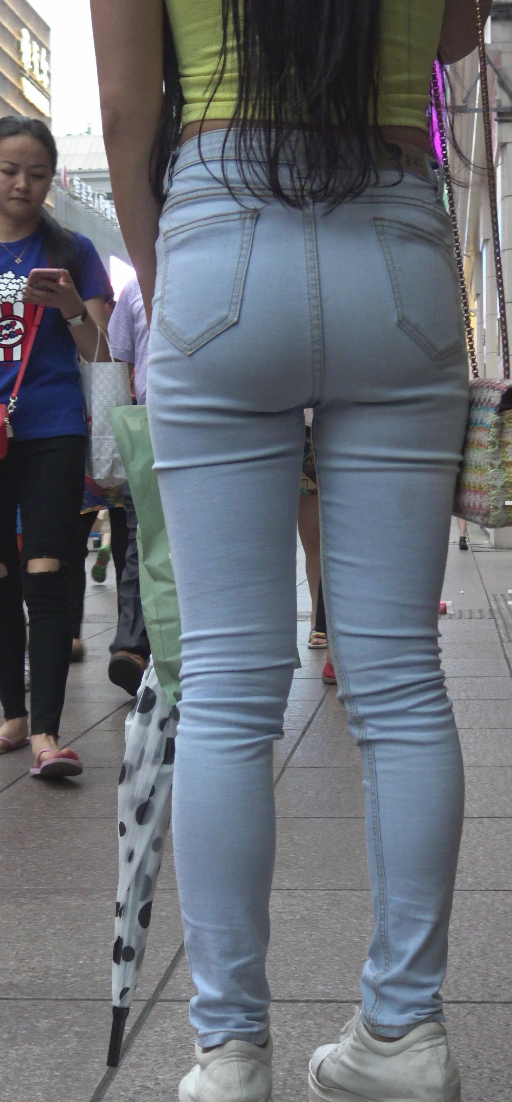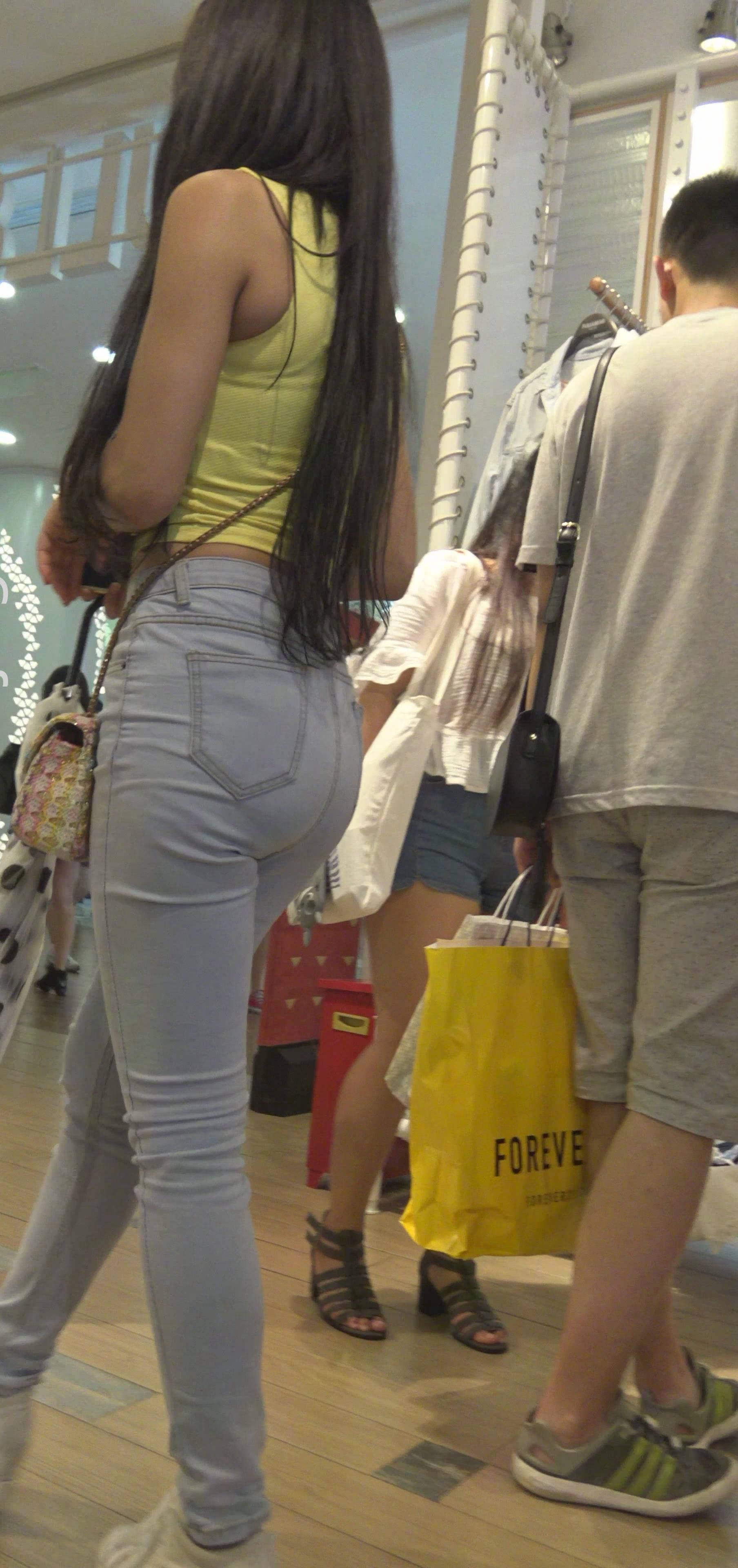 4k-无袖黄衣露脐紧身牛仔裤美女 编号7420