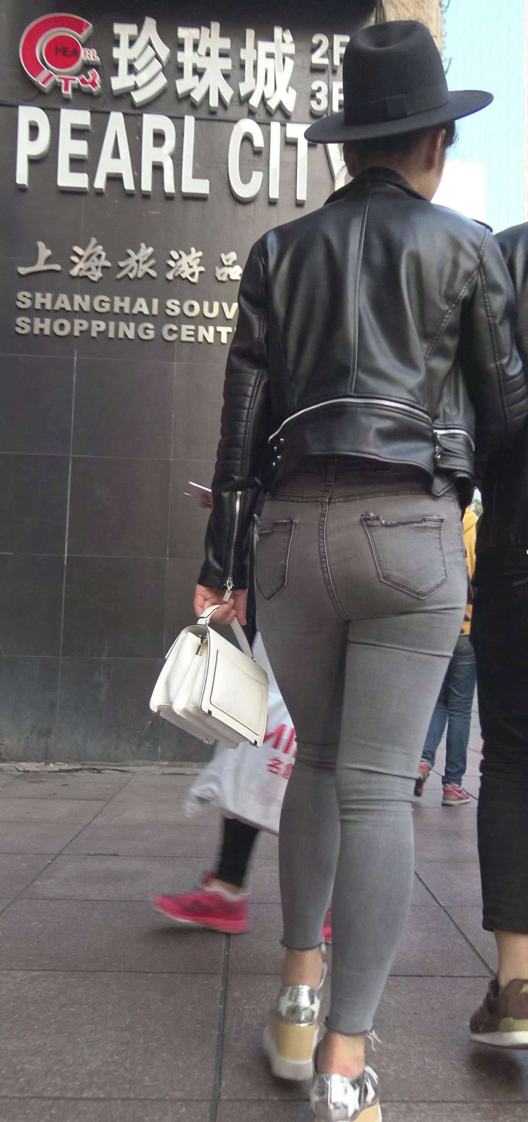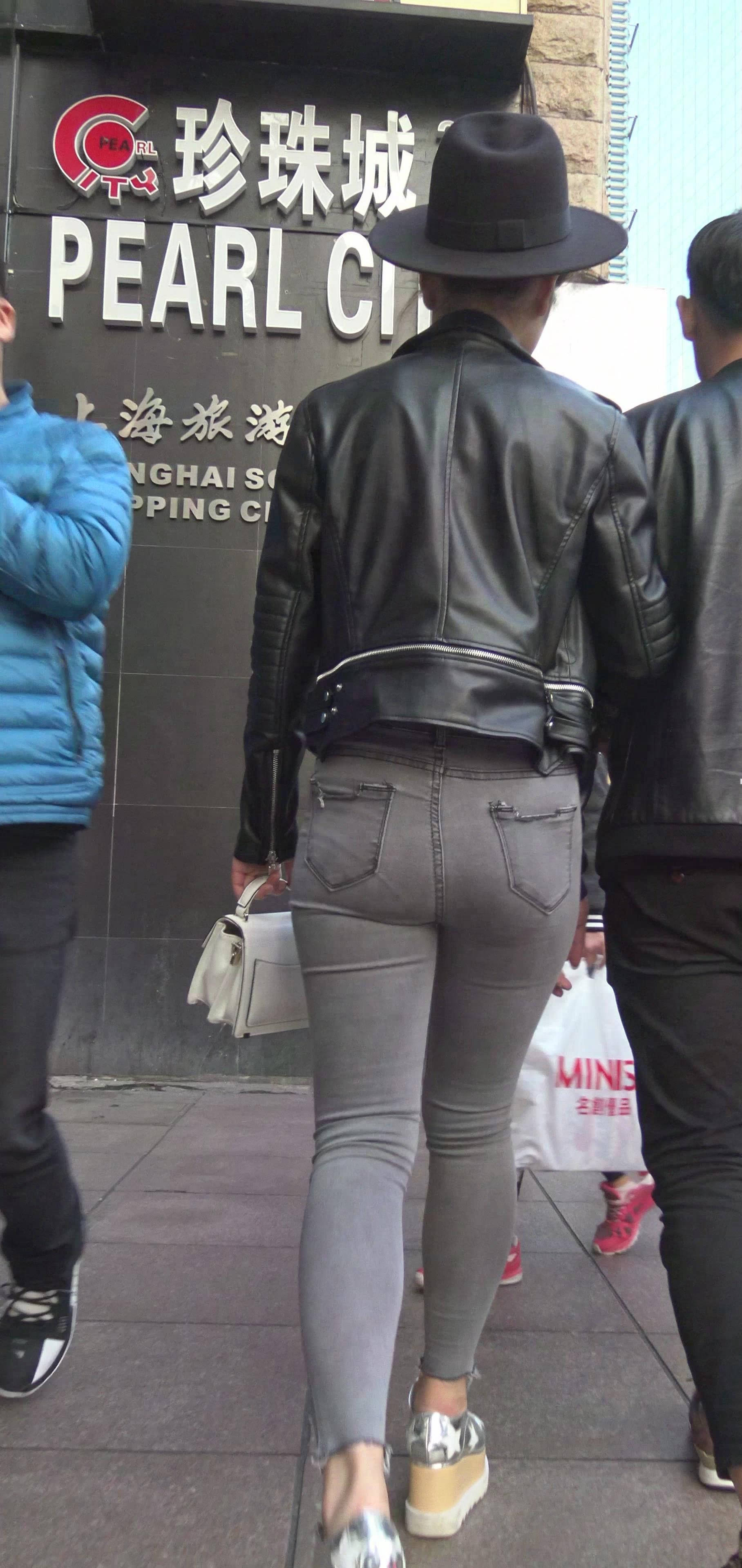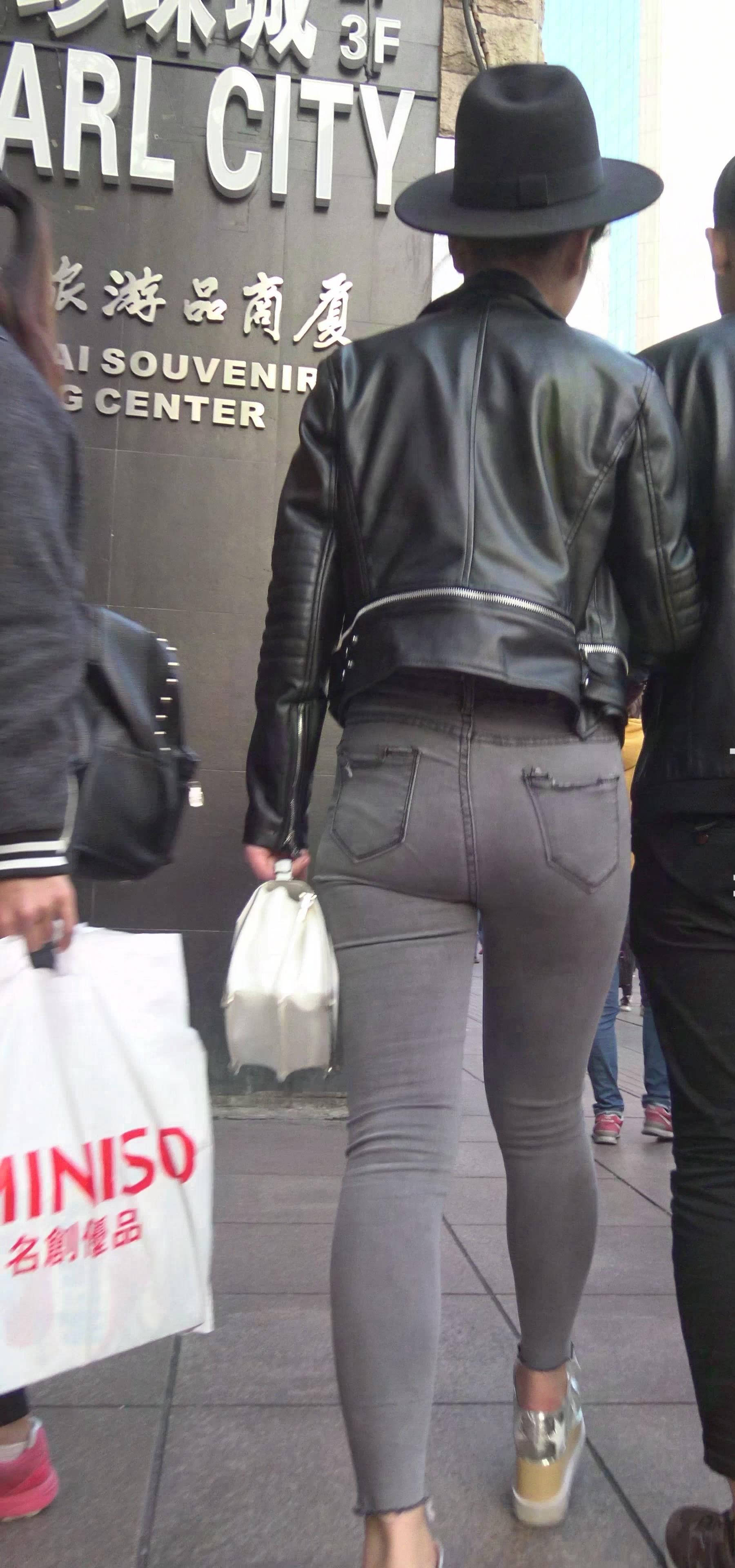 4k-街拍紧身灰牛清新小妹陪男友逛街 编号7426